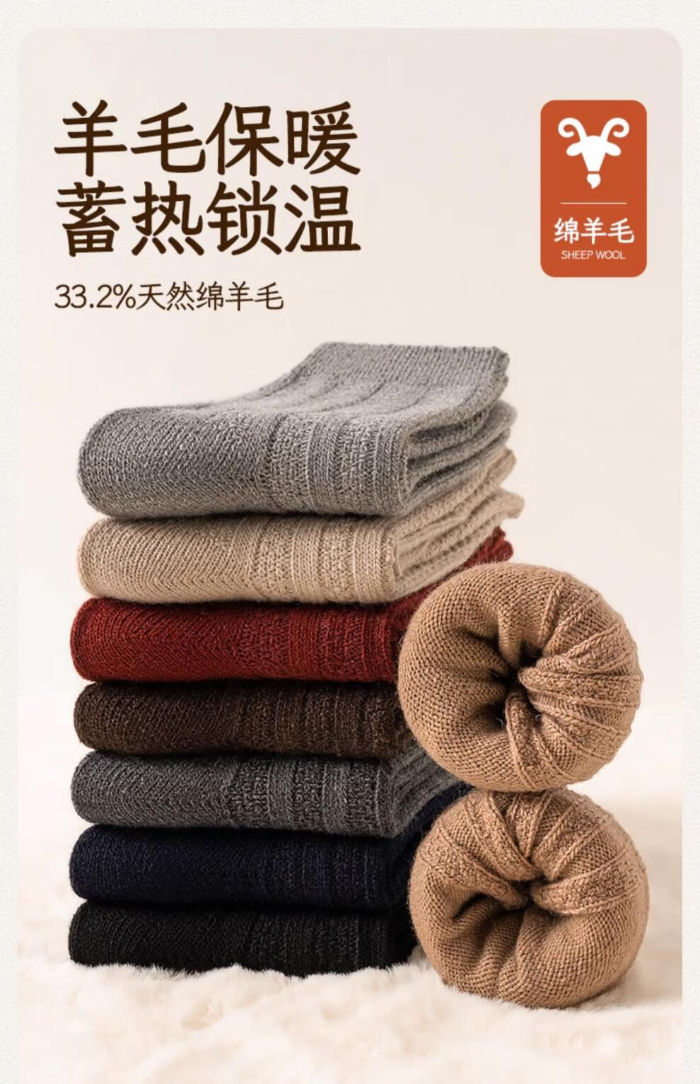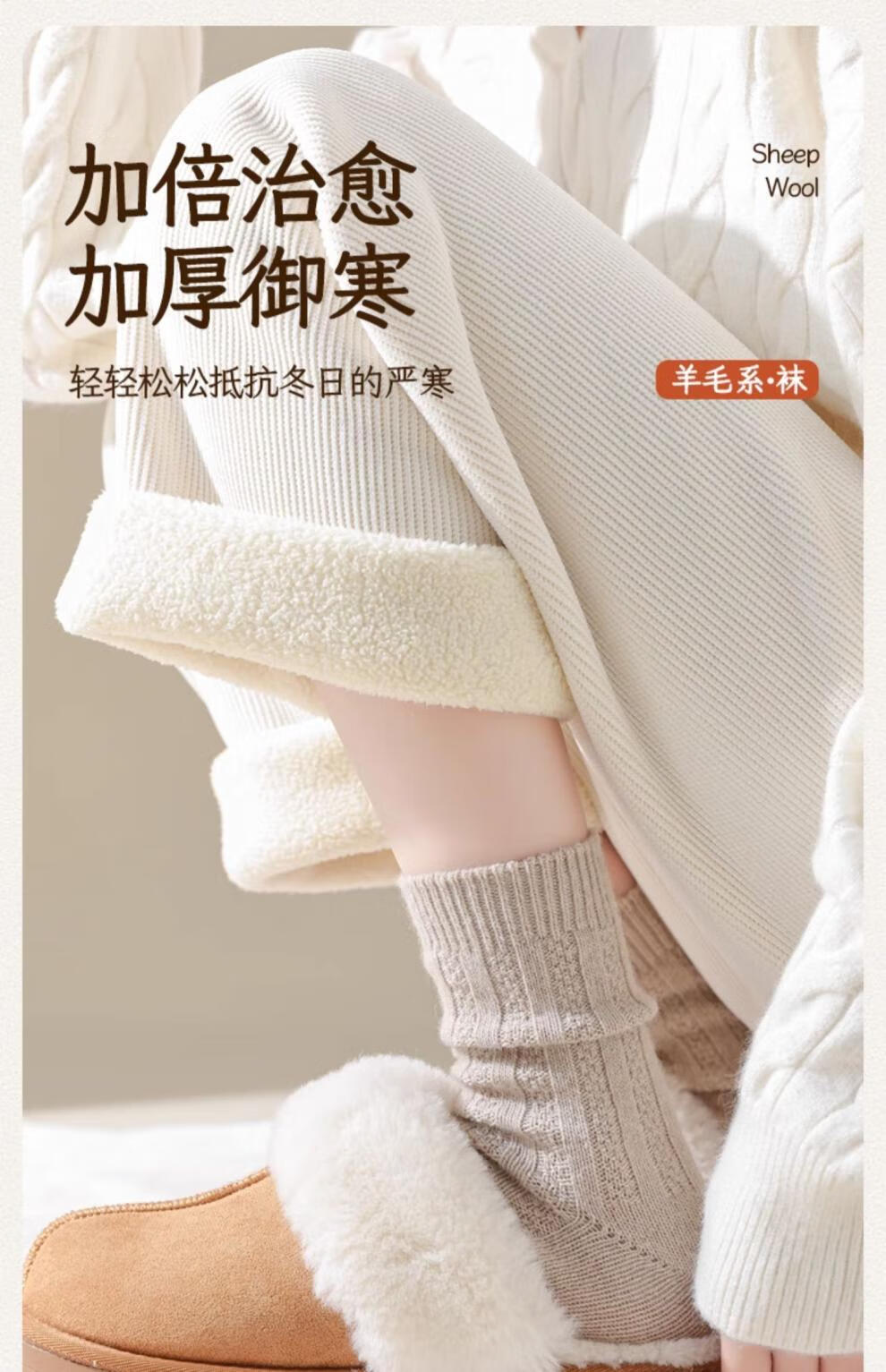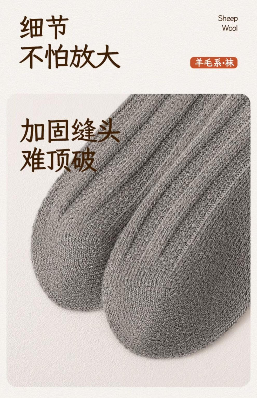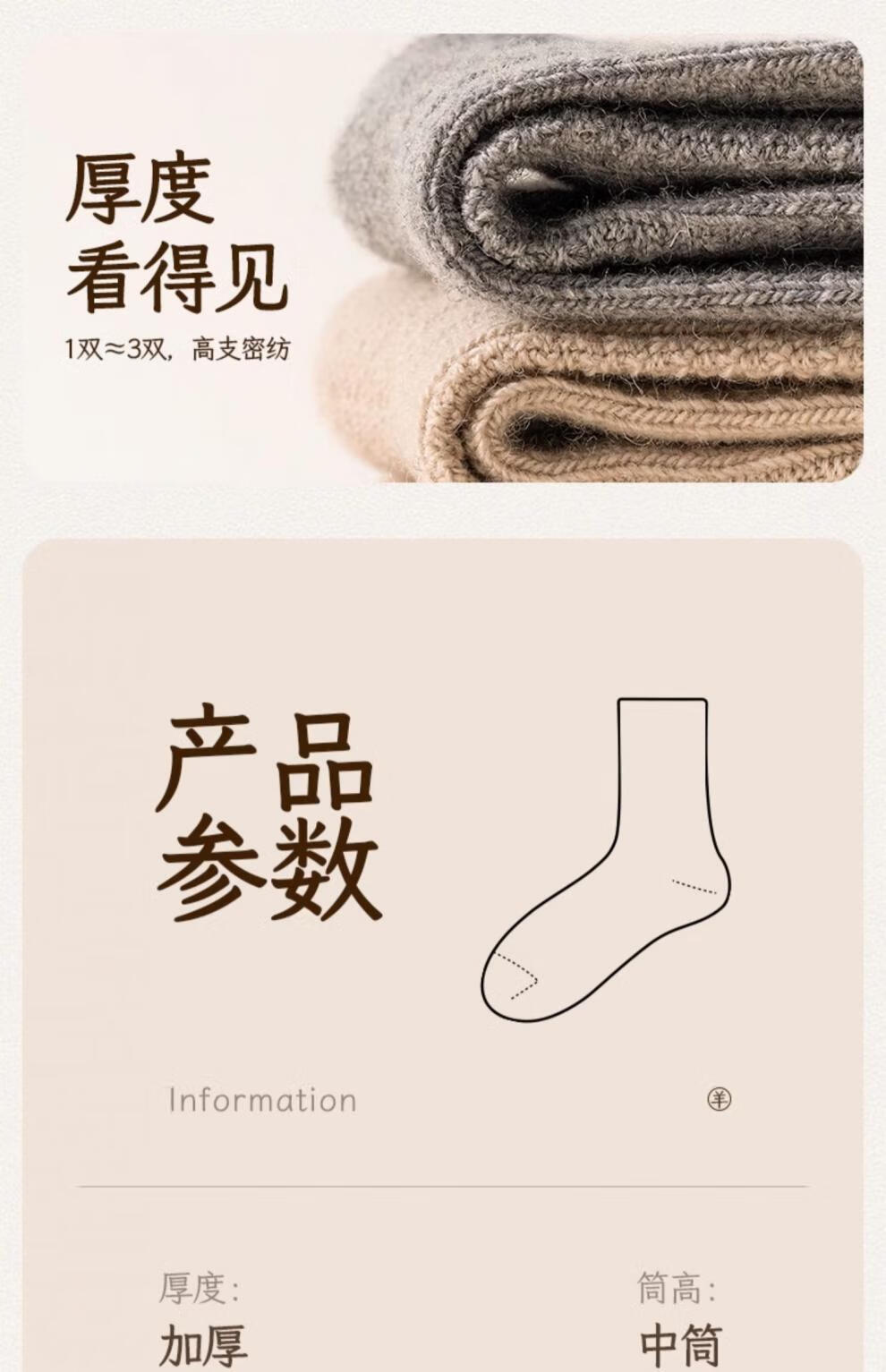 Nanjiren (Nanjiren) sheep wool socks for men and women in autumn and winter, plus velvet, thickening, warmth and heating 7A autumn and winter mid-calf snow socks, light beige gray*2_ 2 pairs, one size fits all