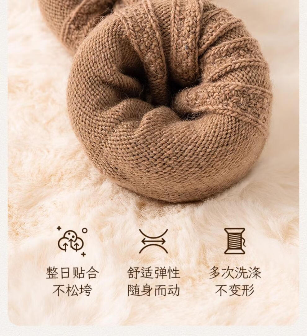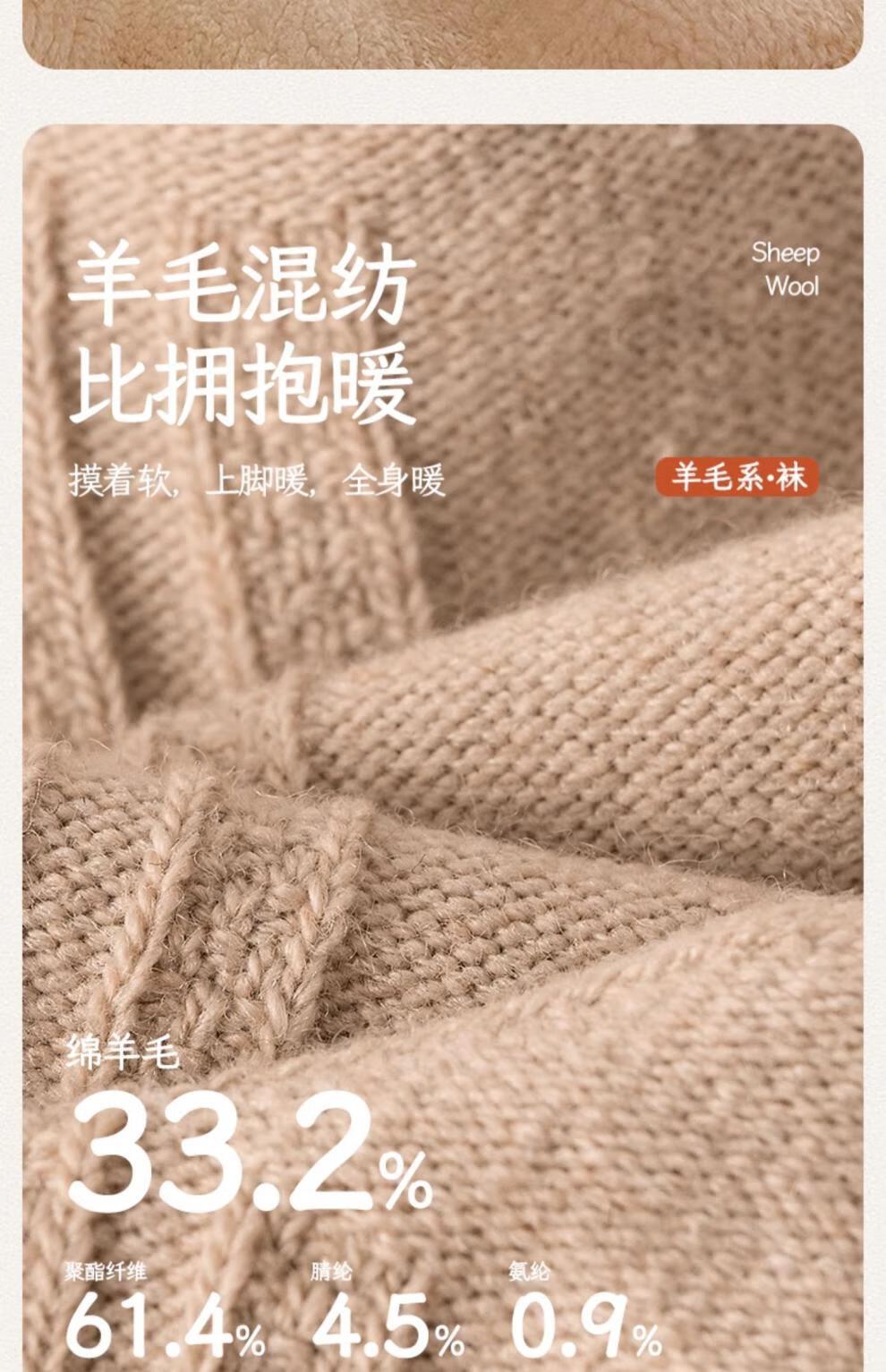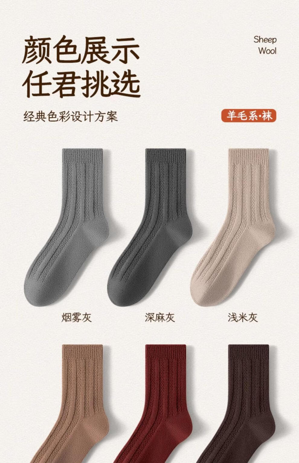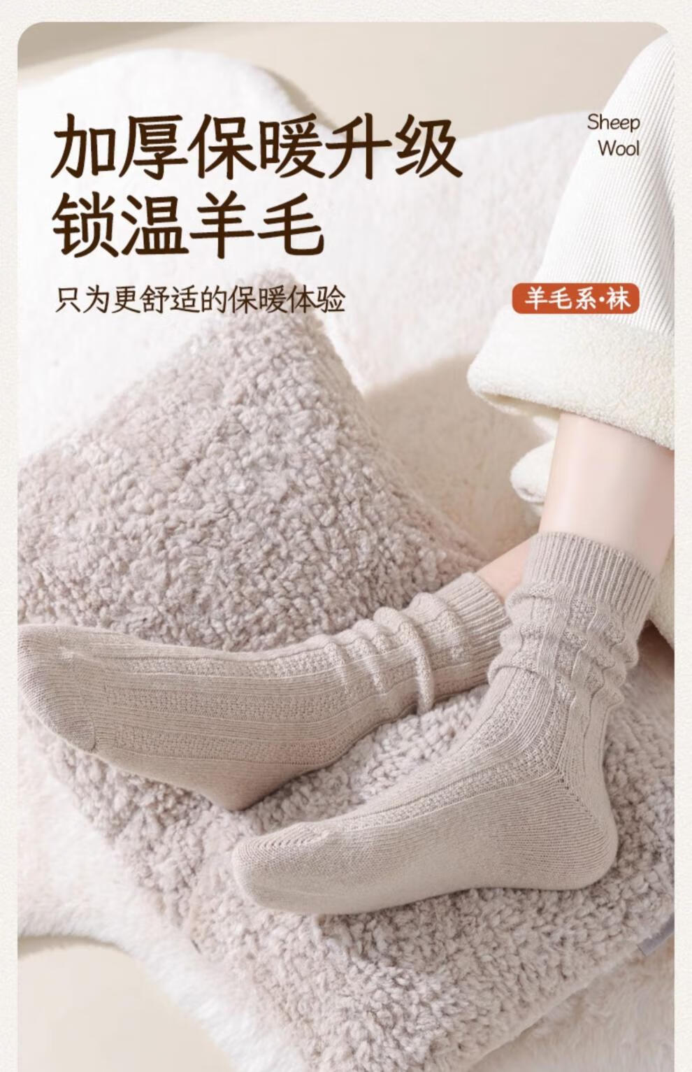 Nanjiren (Nanjiren) sheep wool socks for men and women in autumn and winter, plus velvet, thickening, warmth and heating 7A autumn and winter mid-calf snow socks, light beige gray*2_ 2 pairs, one size fits all