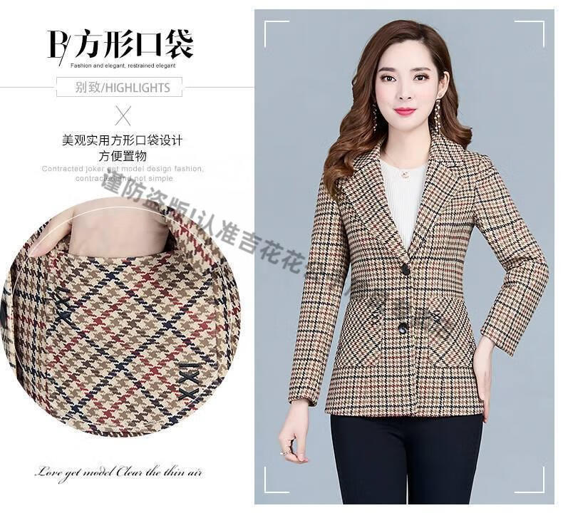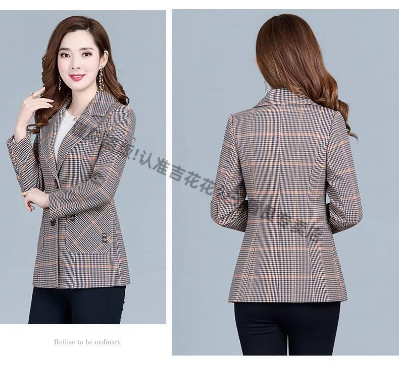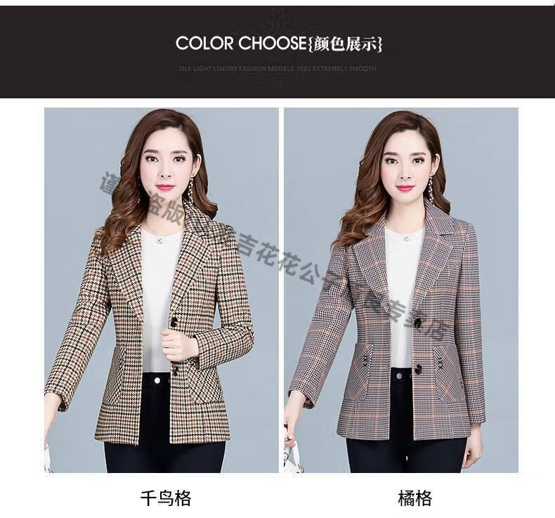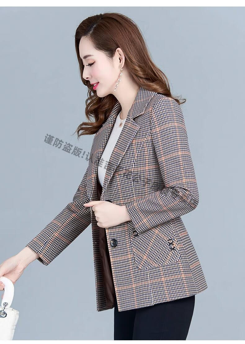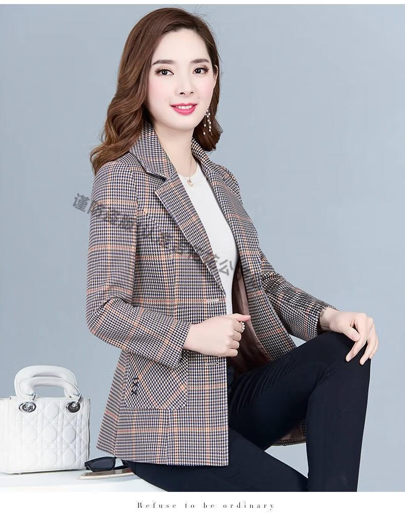 Playboy (PLAYBOY) short blazer for women 2025 new autumn style middle-aged spring autumn middle-aged mother autumn small suit western style plaid orange plaid 5XL recommended 138-150Jin Jin equals 0.5 kg