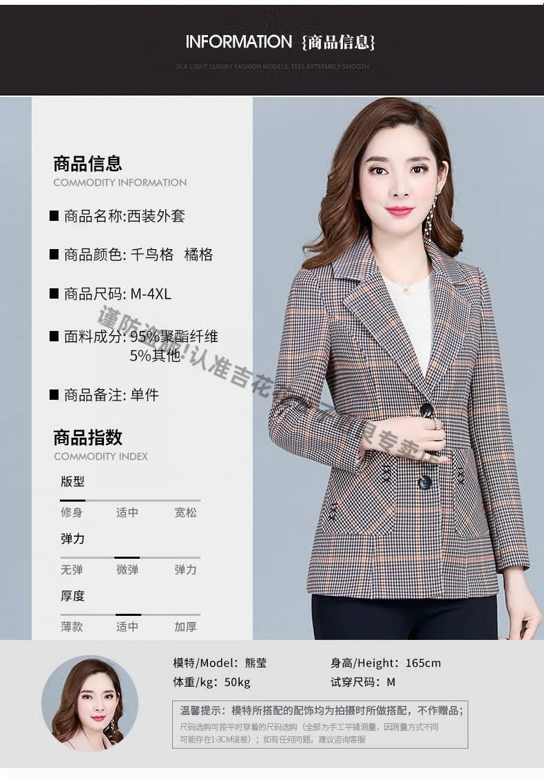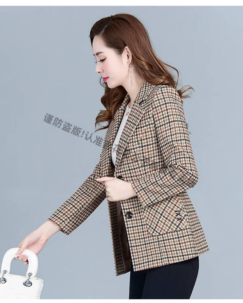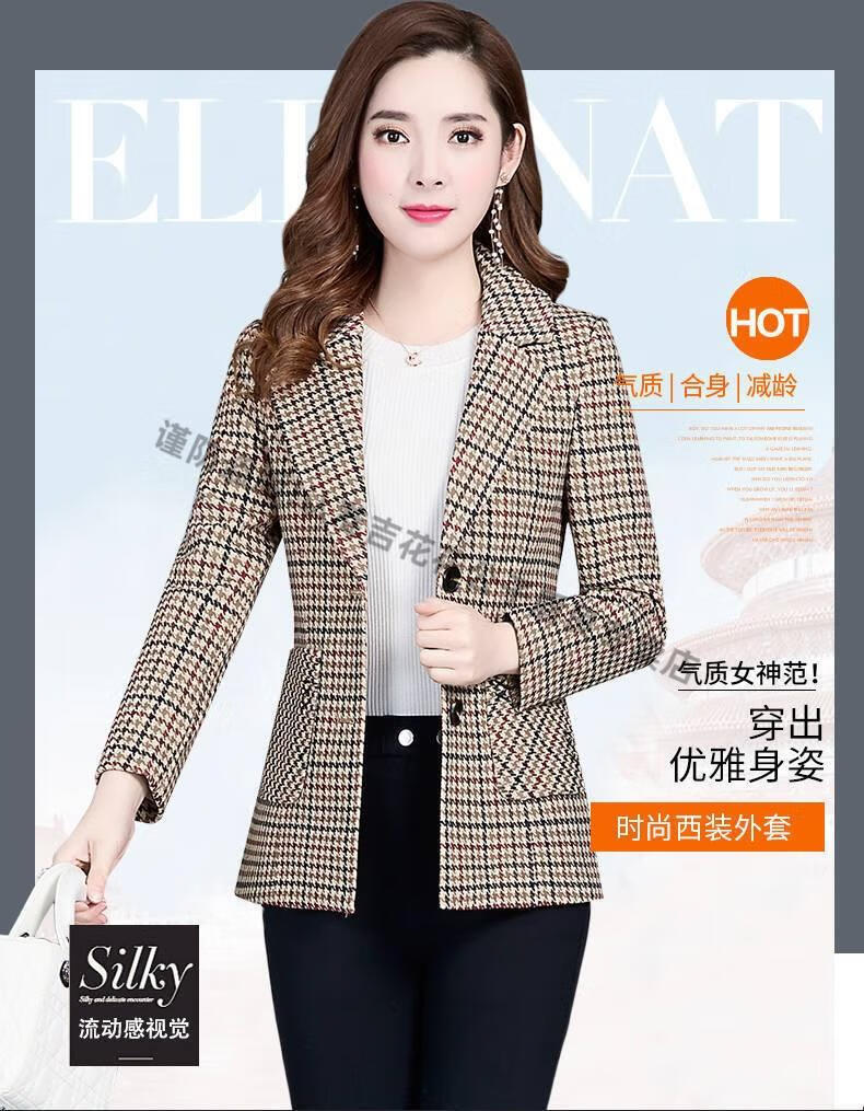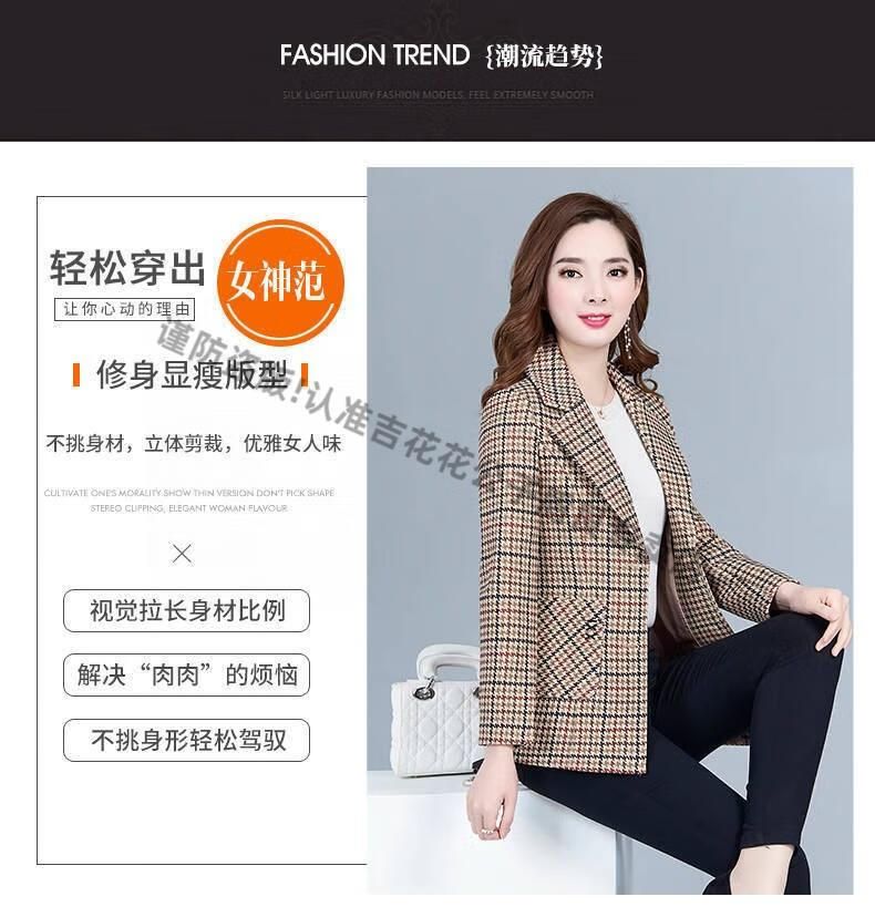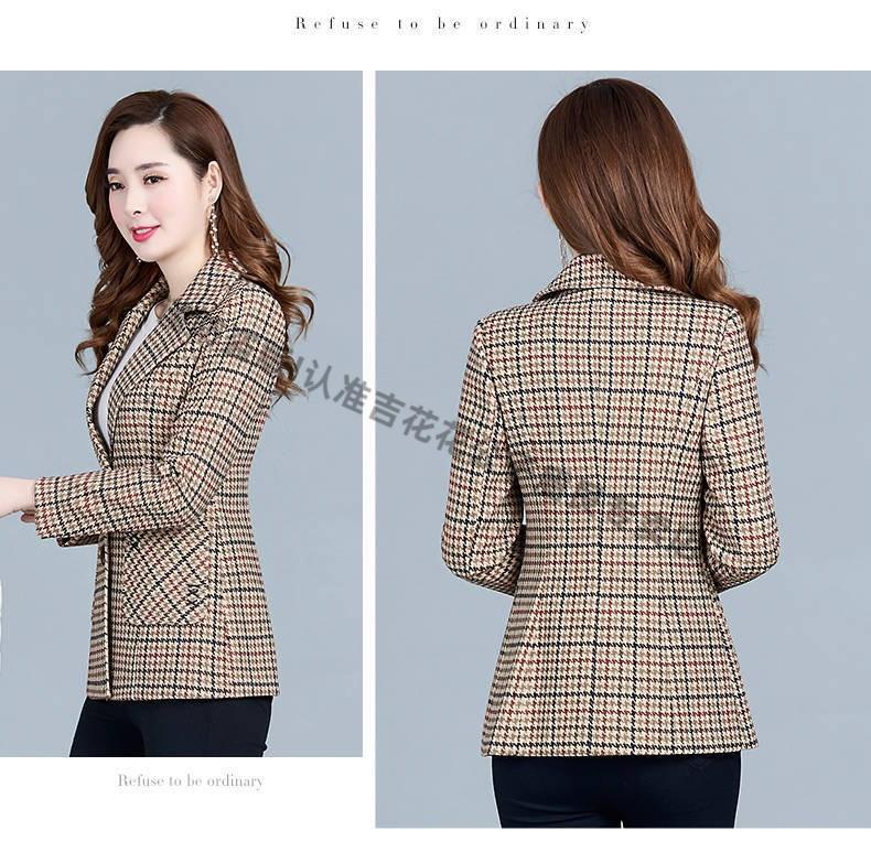 Playboy (PLAYBOY) short blazer for women 2025 new autumn style middle-aged spring autumn middle-aged mother autumn small suit western style plaid orange plaid 5XL recommended 138-150Jin Jin equals 0.5 kg