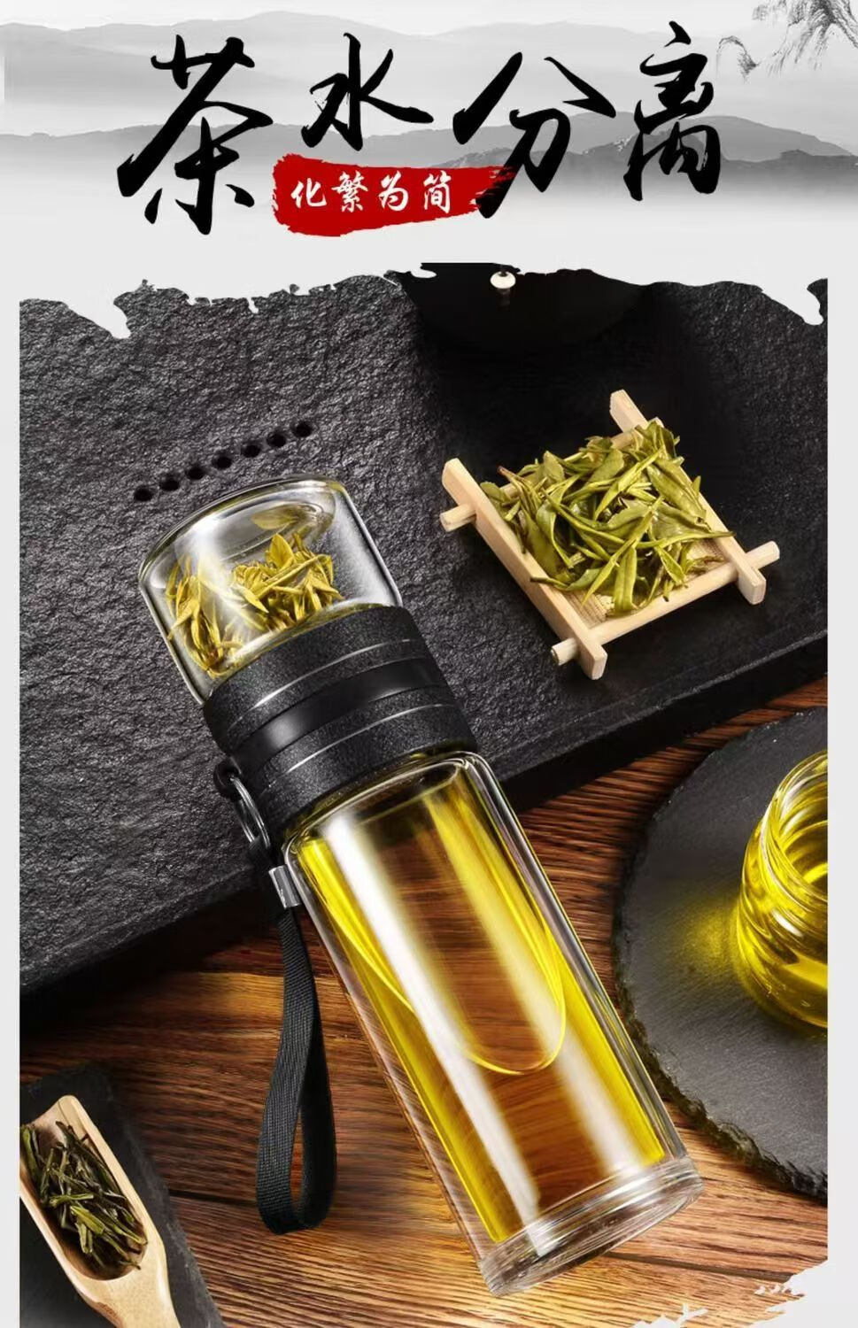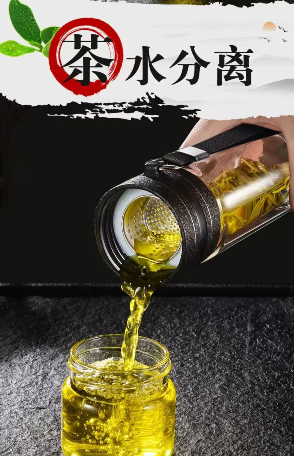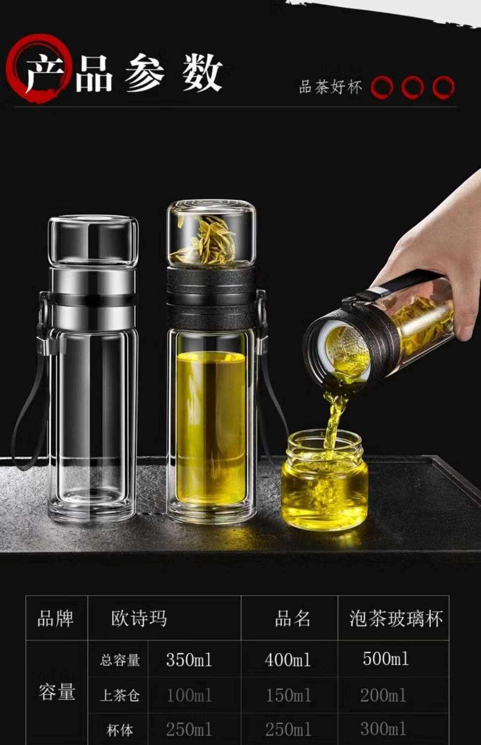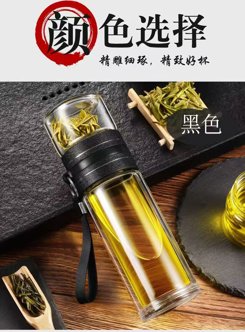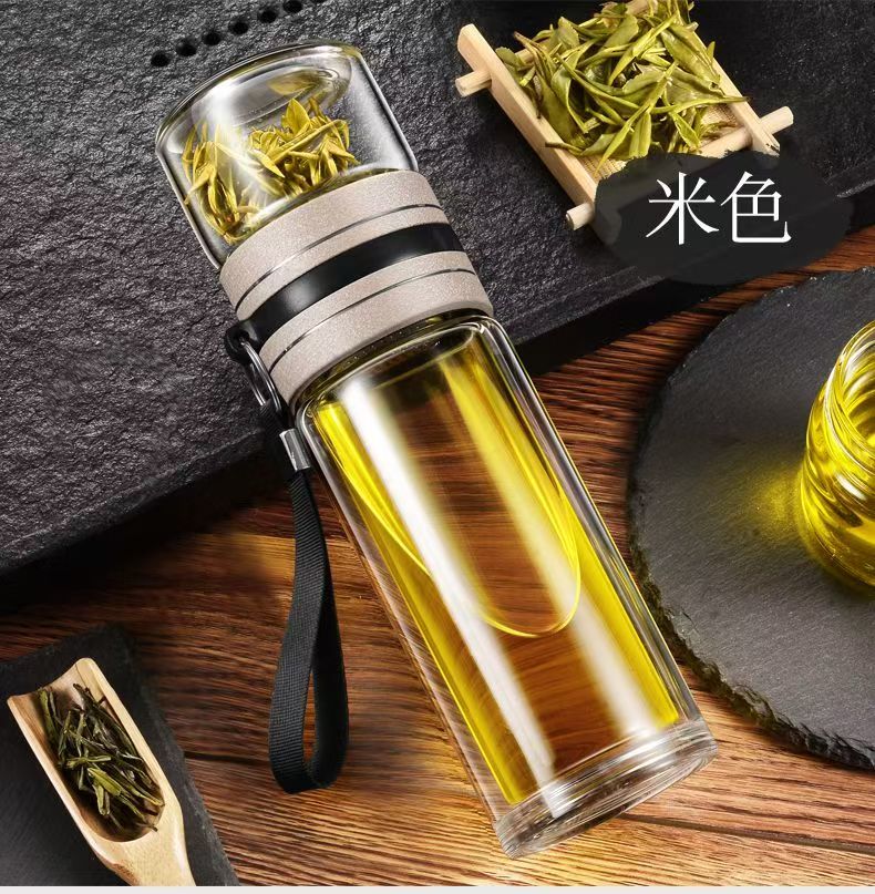 High borosilicate double-layer glass large capacity tea cup water cup tea water separation tea cup tea cup glass steel tea water separation cup 500ml 1 piece