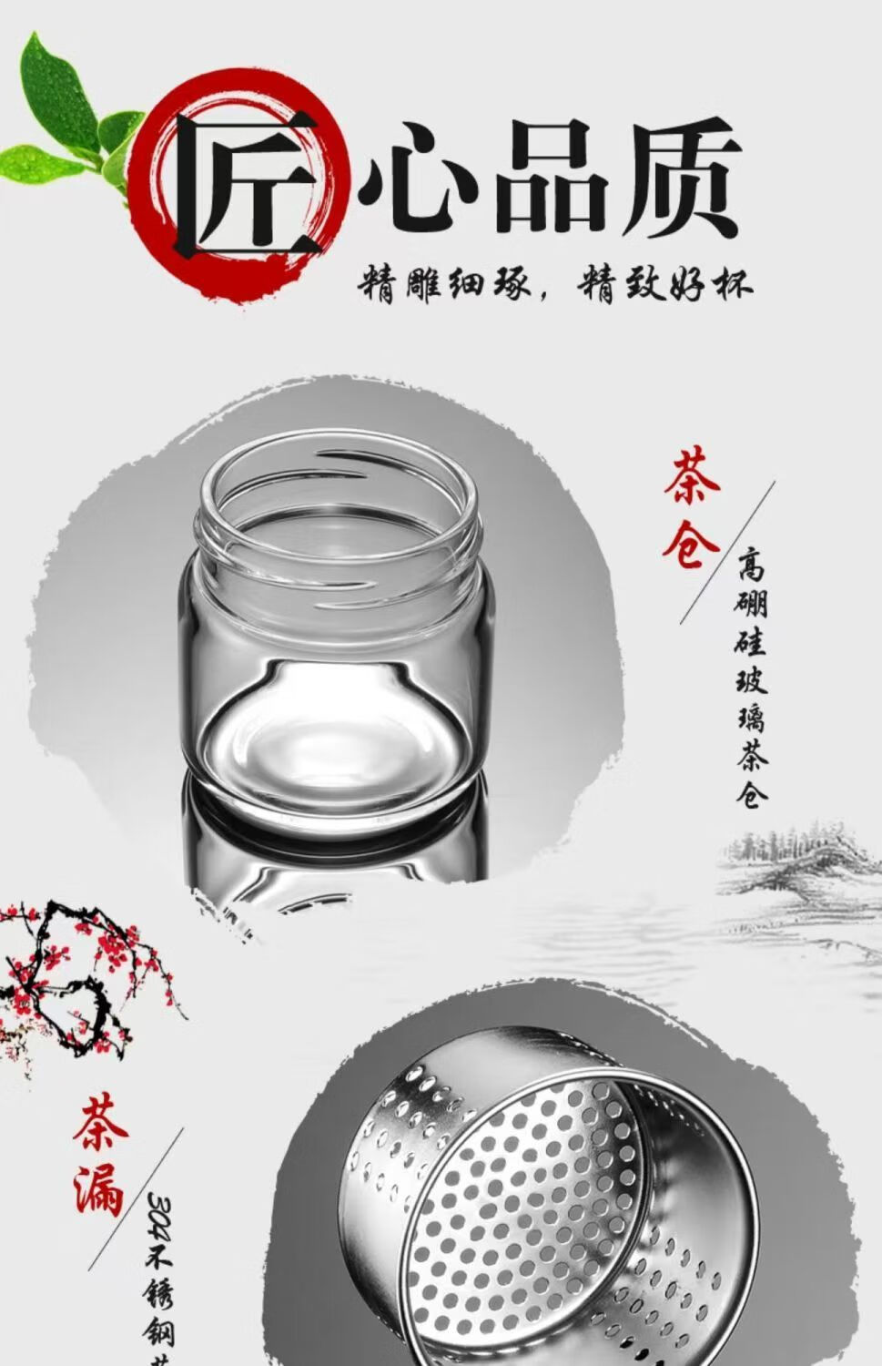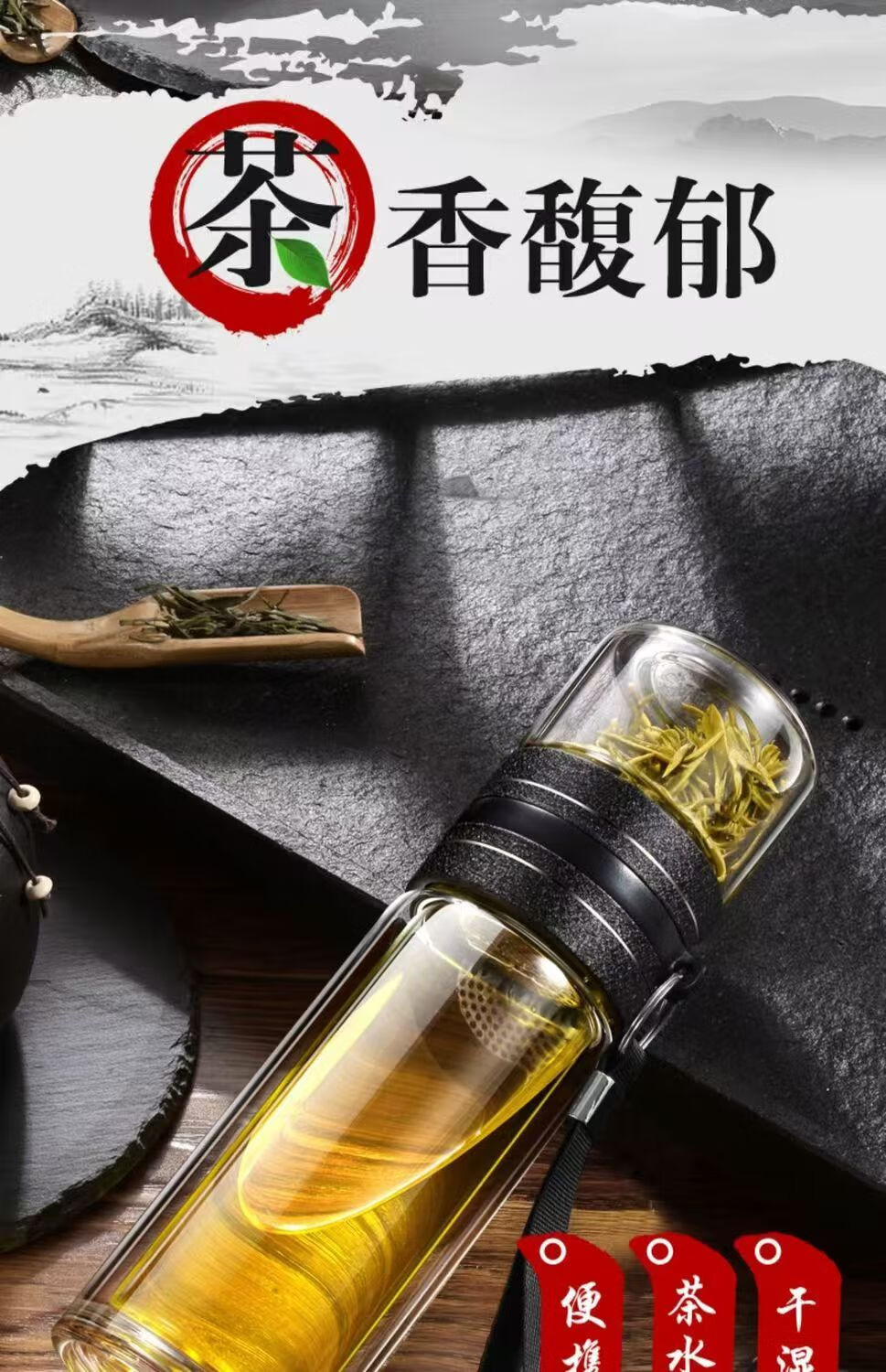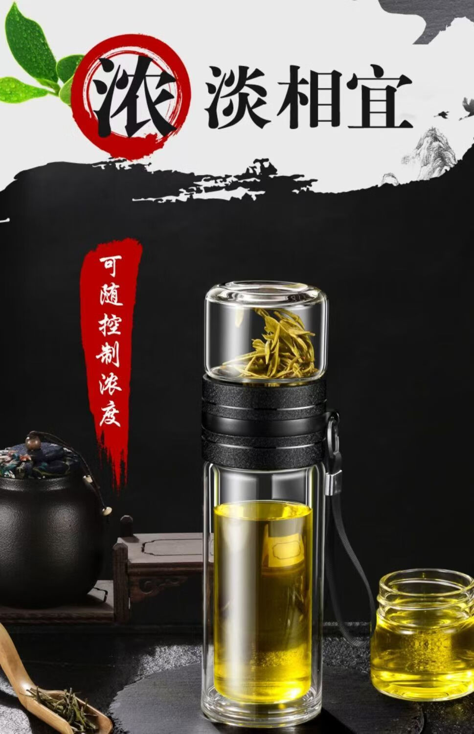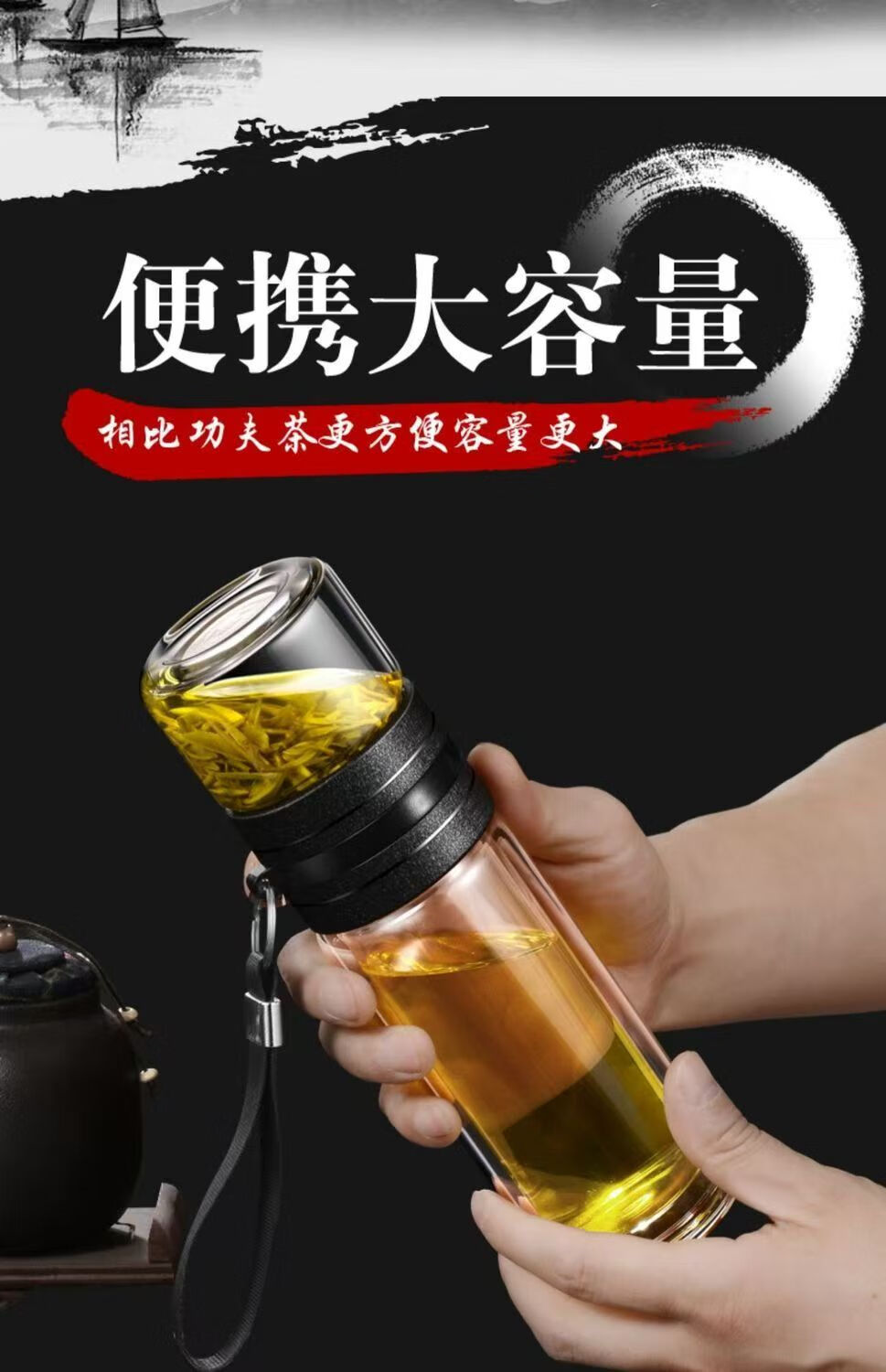 High borosilicate double-layer glass large capacity tea cup water cup tea water separation tea cup tea cup glass steel tea water separation cup 500ml 1 piece