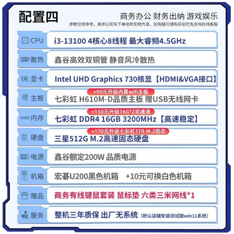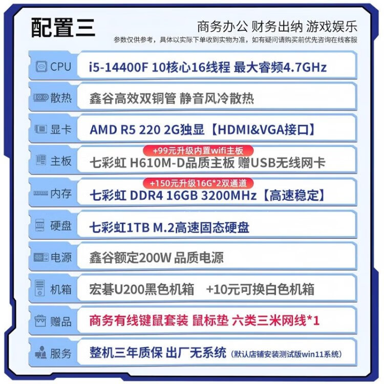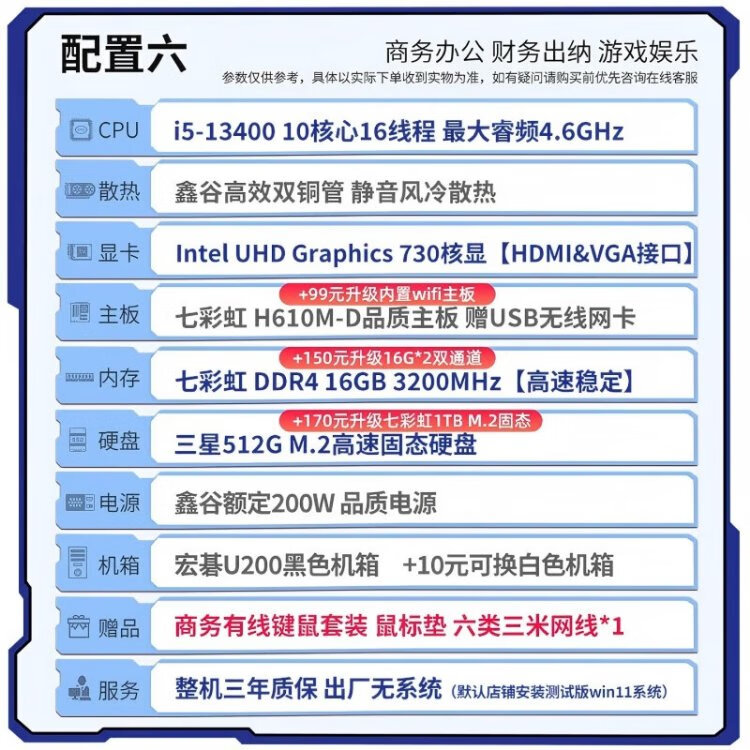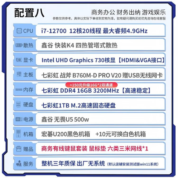 Colorful desktop computer host, commercial office art design, home stock trading assembly, DIY complete set, CF16C, Lenovo Laiku 23.8-inch monitor, brand new and authentic, supports customization