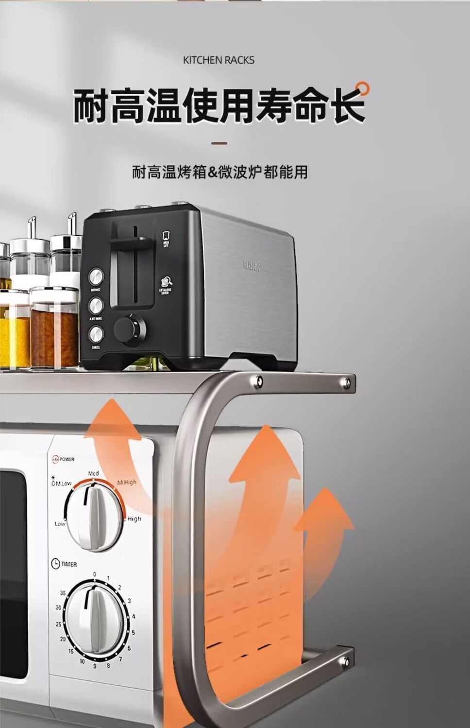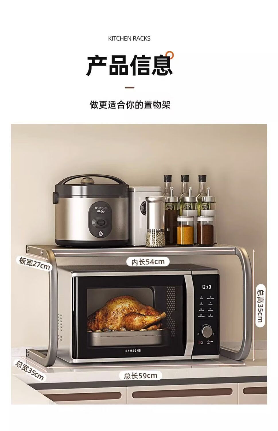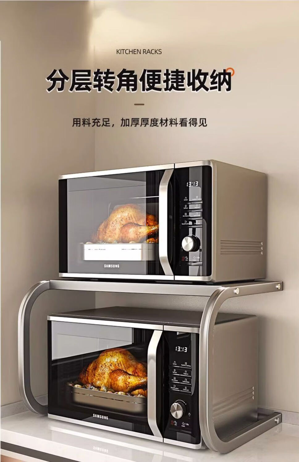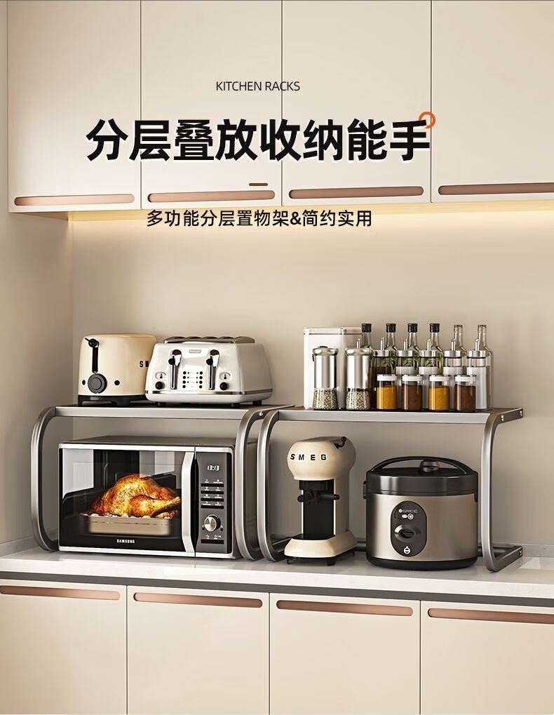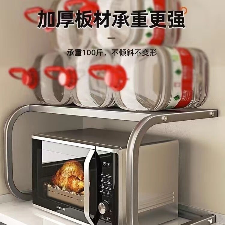Qinkai Microwave Oven Rice Cooker Rack Oven Storage Bracket Household Double-layer Countertop Storage Multi-functional 2-layer Storage Rack New Enhanced Model Gun Gray Carbon Steel Paint Thickened Can Load 100Jin Jin is equal to 0.5kg Used in 99% oven microwave