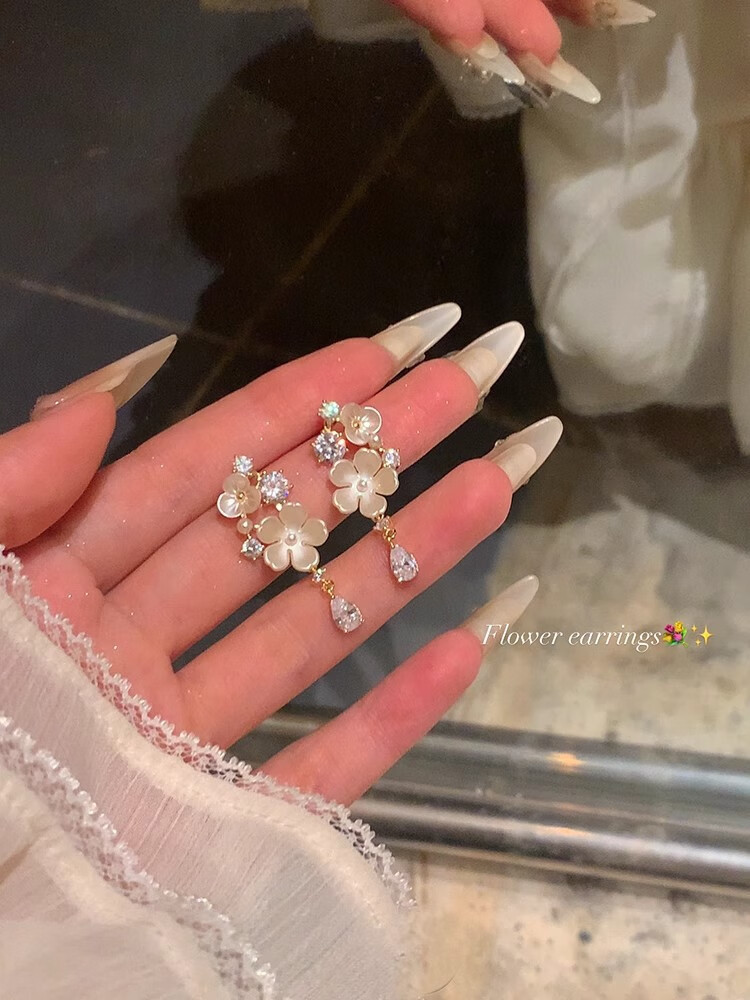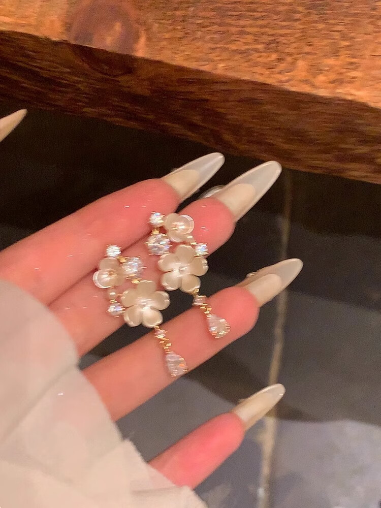 Platinum Earrings Women's French Sparkling Diamond Flower Tassel Earrings Gentle Temperament Light Luxury Niche High-end Earrings Earrings Earrings Flashing Diamond Flower Tassel Earrings