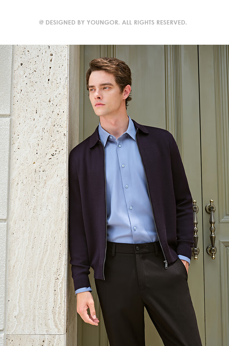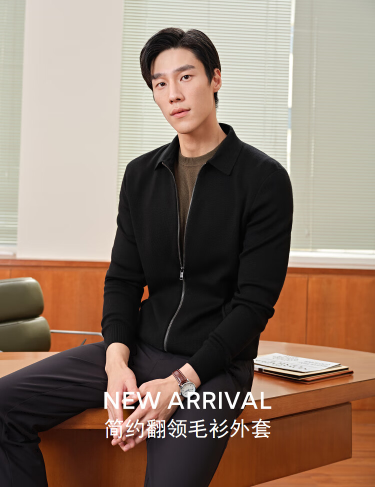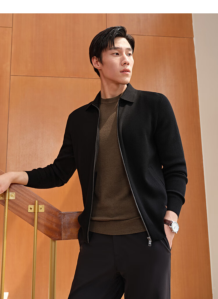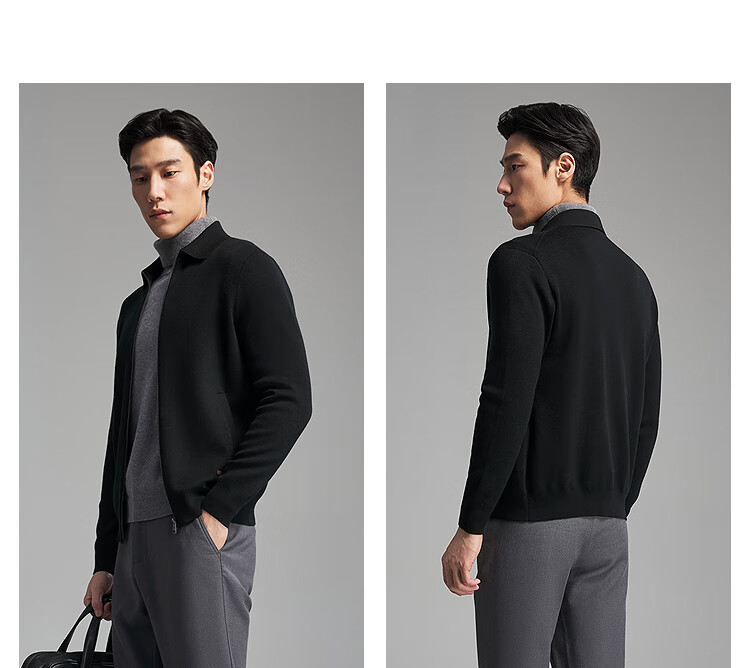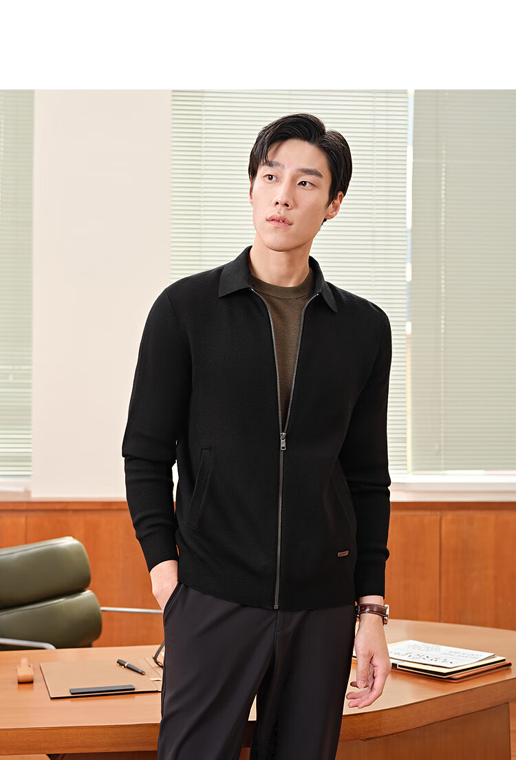 Youngor dense fleece wool sweater men's sweater jacket men's 25 autumn and winter warm and comfortable skin-friendly lapel black VWHW619961AFA S 95cm (recommended 105-125Jin Jin equals 0.5 kg)