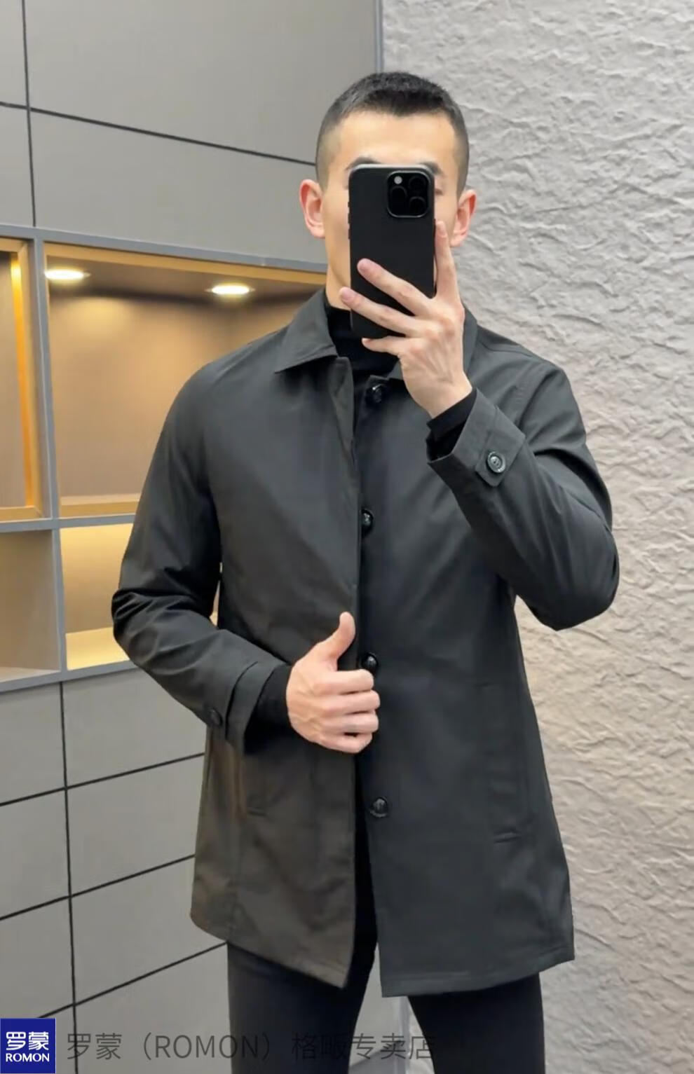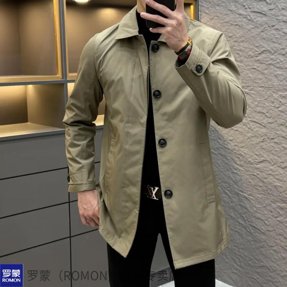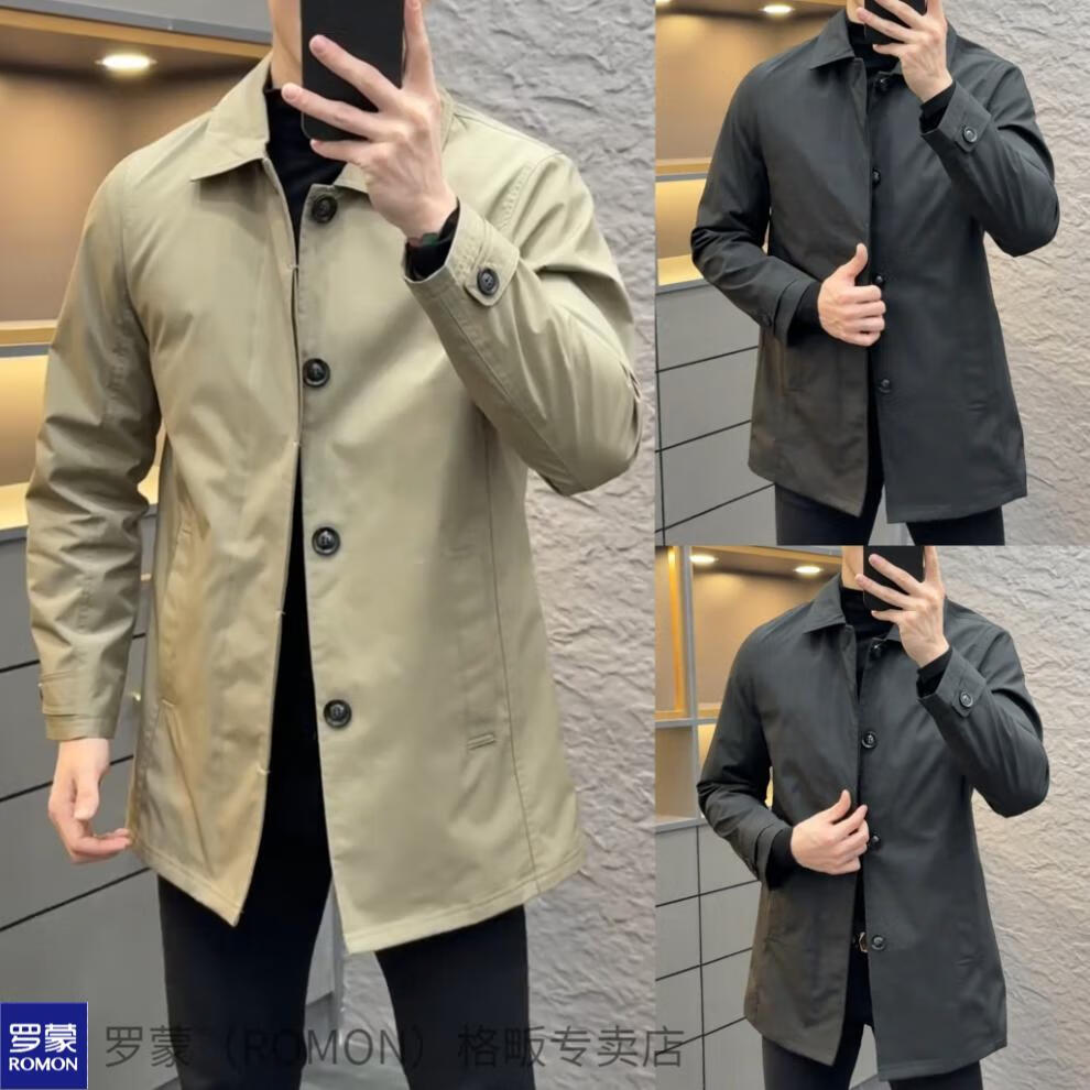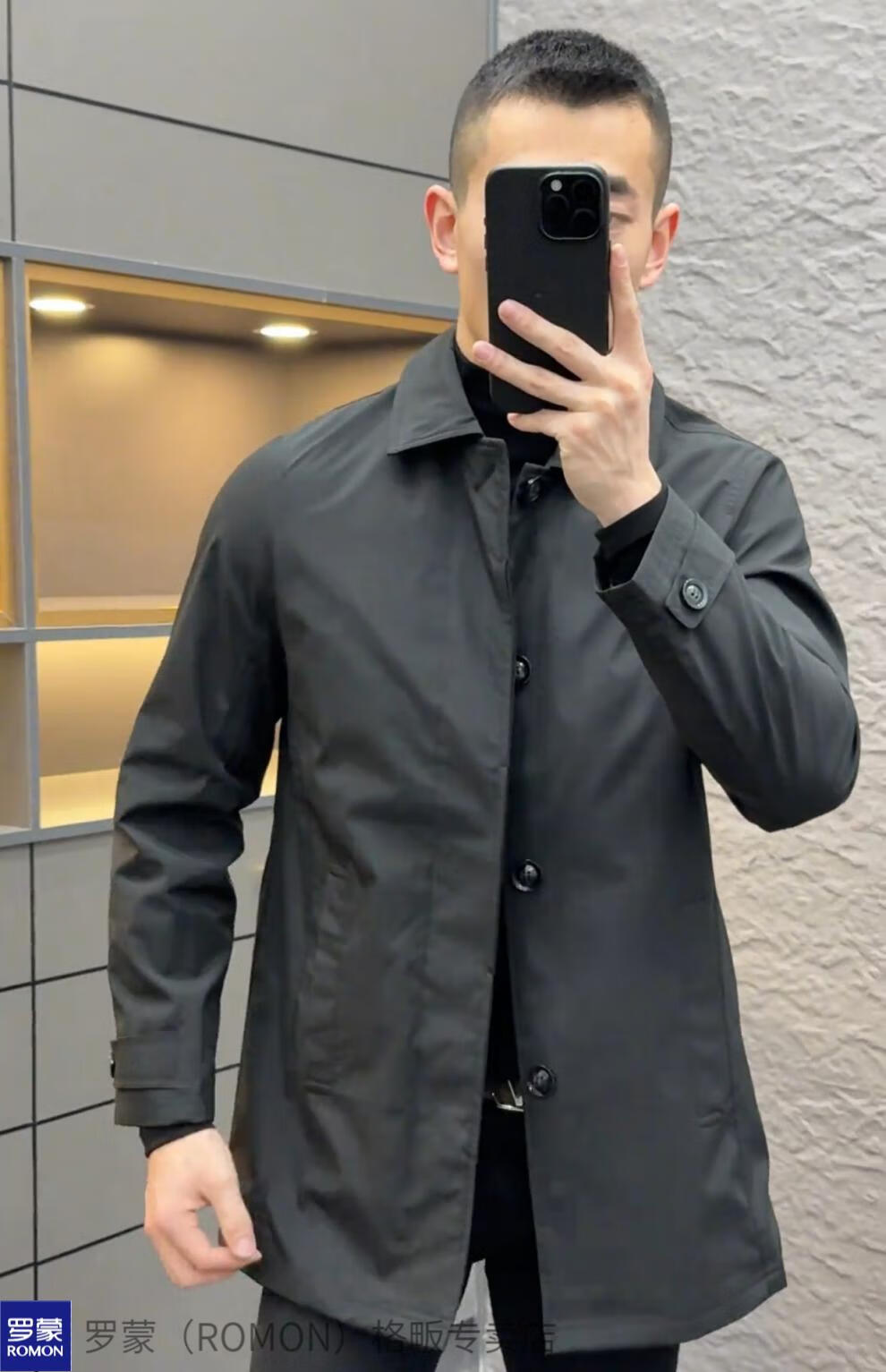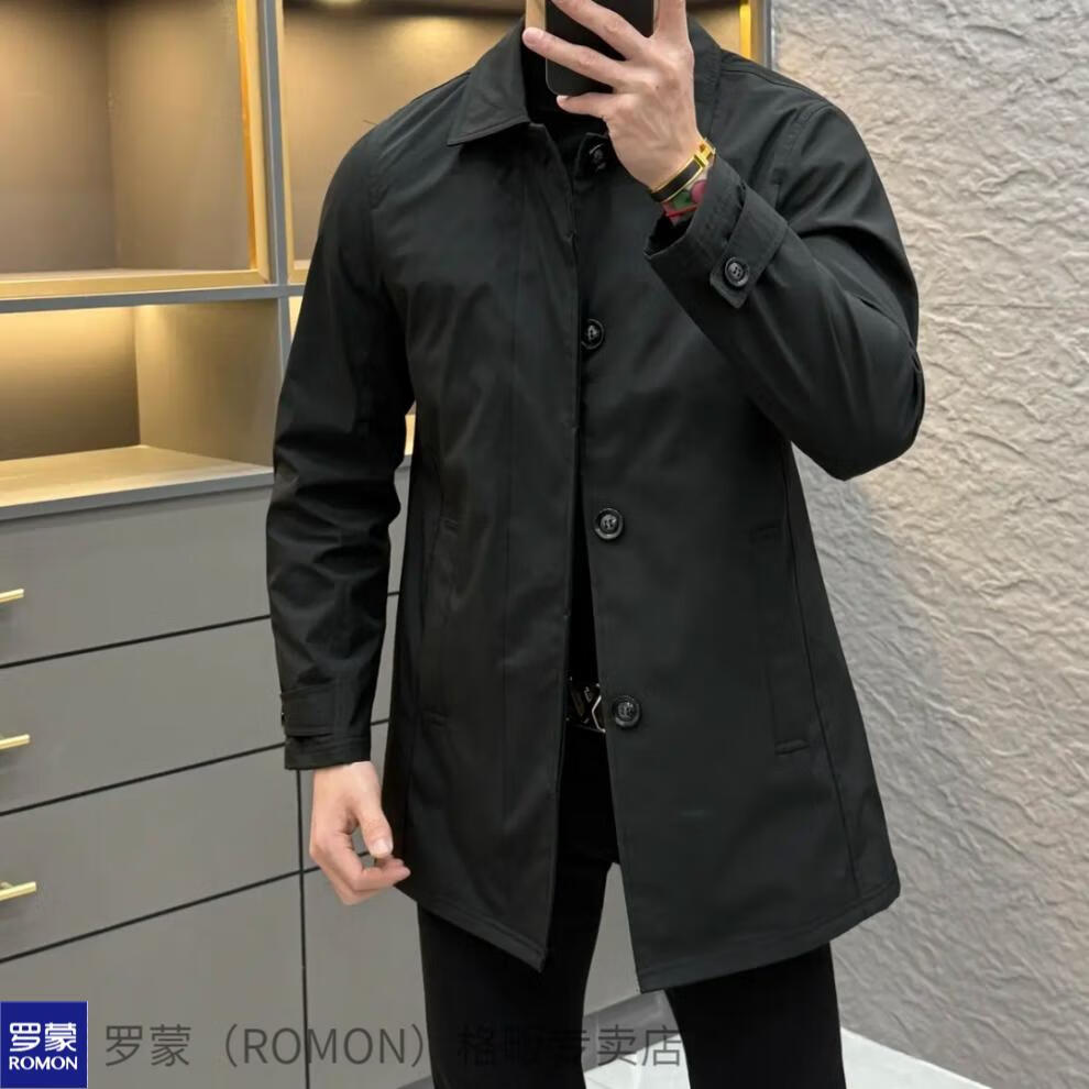 ROMON Spring and Autumn New Men's Versatile Mid-Length Lapel Standard Windproof Windbreaker Men's Casual Style Simple Light Luxury Jacket Black XL (125-140) Jin Jin equals 0.5 kg