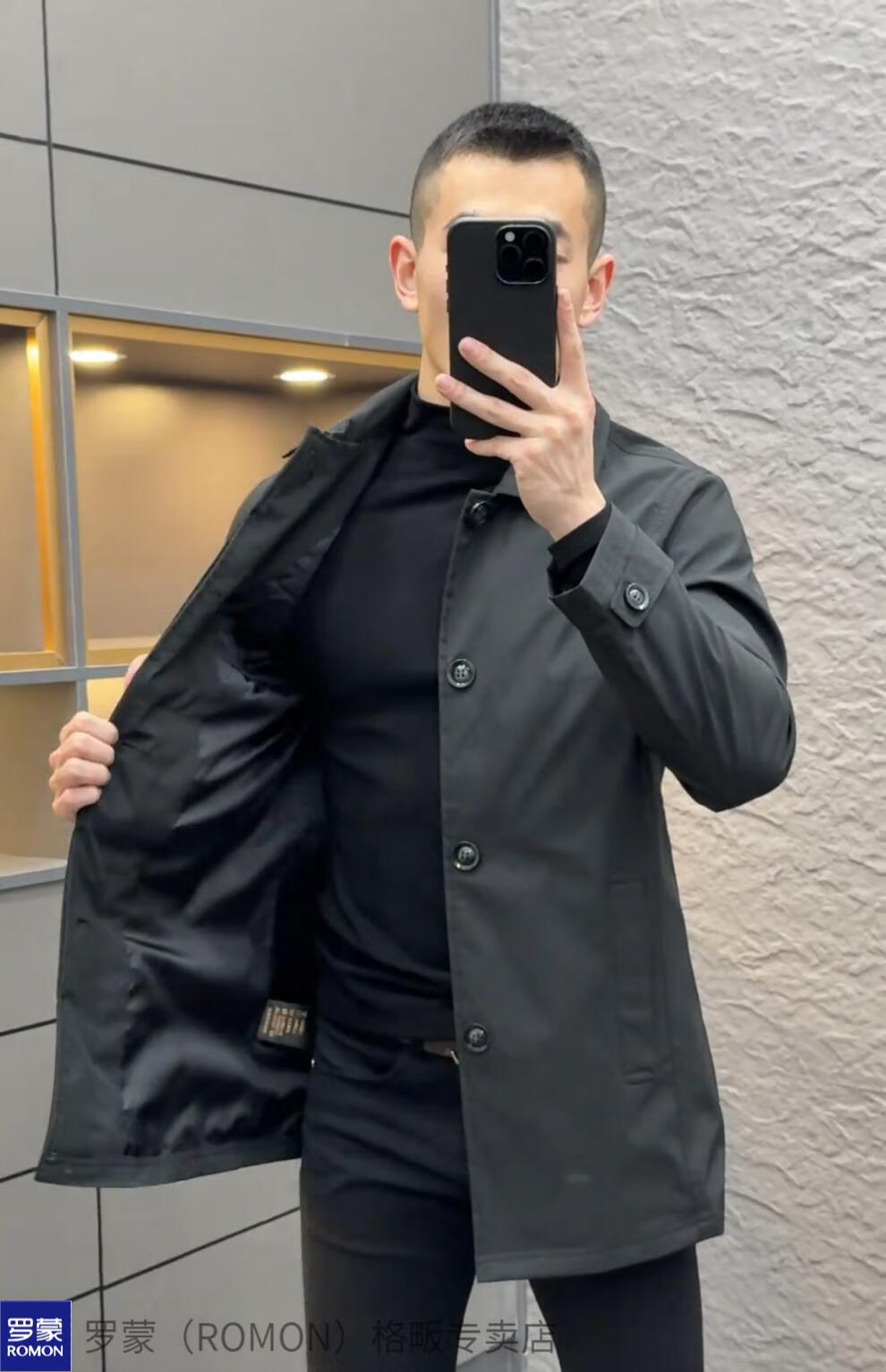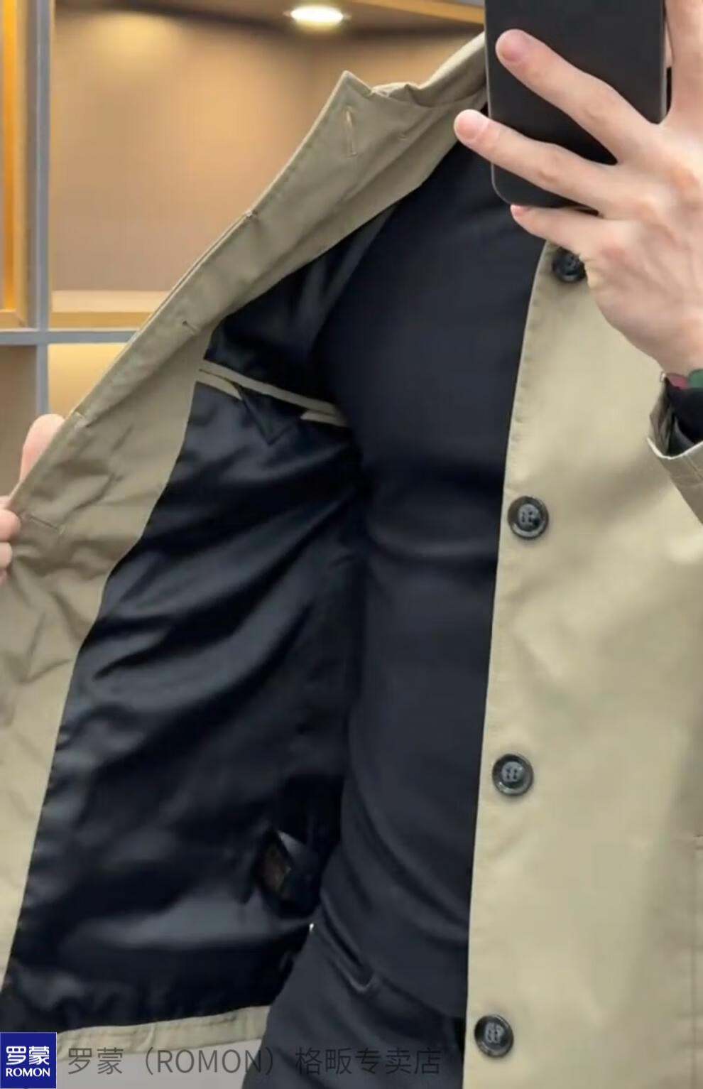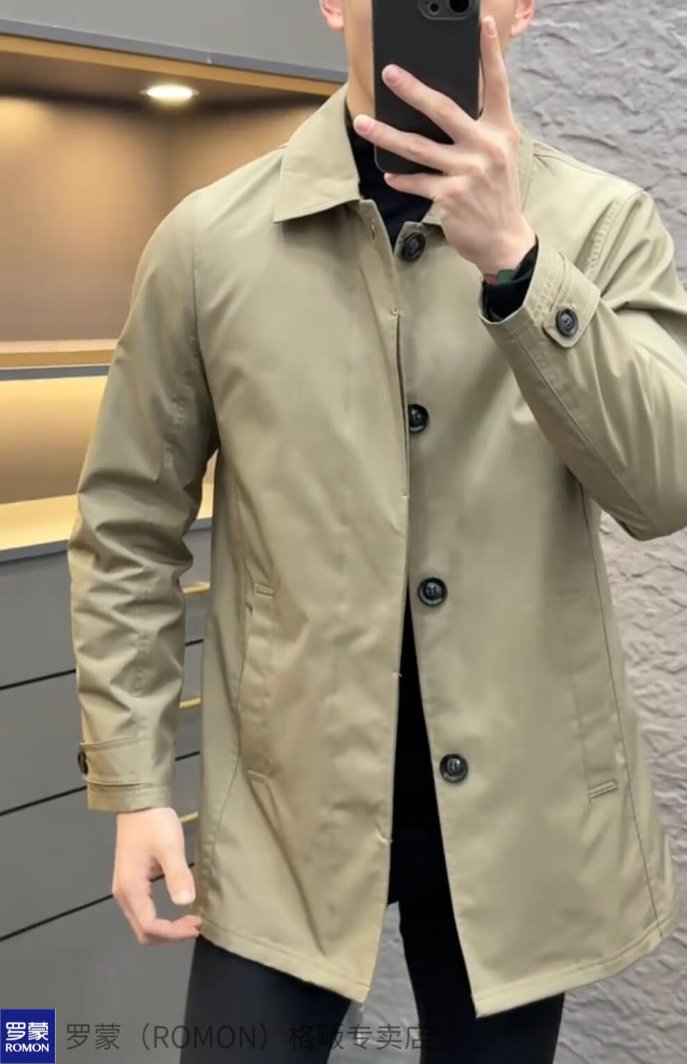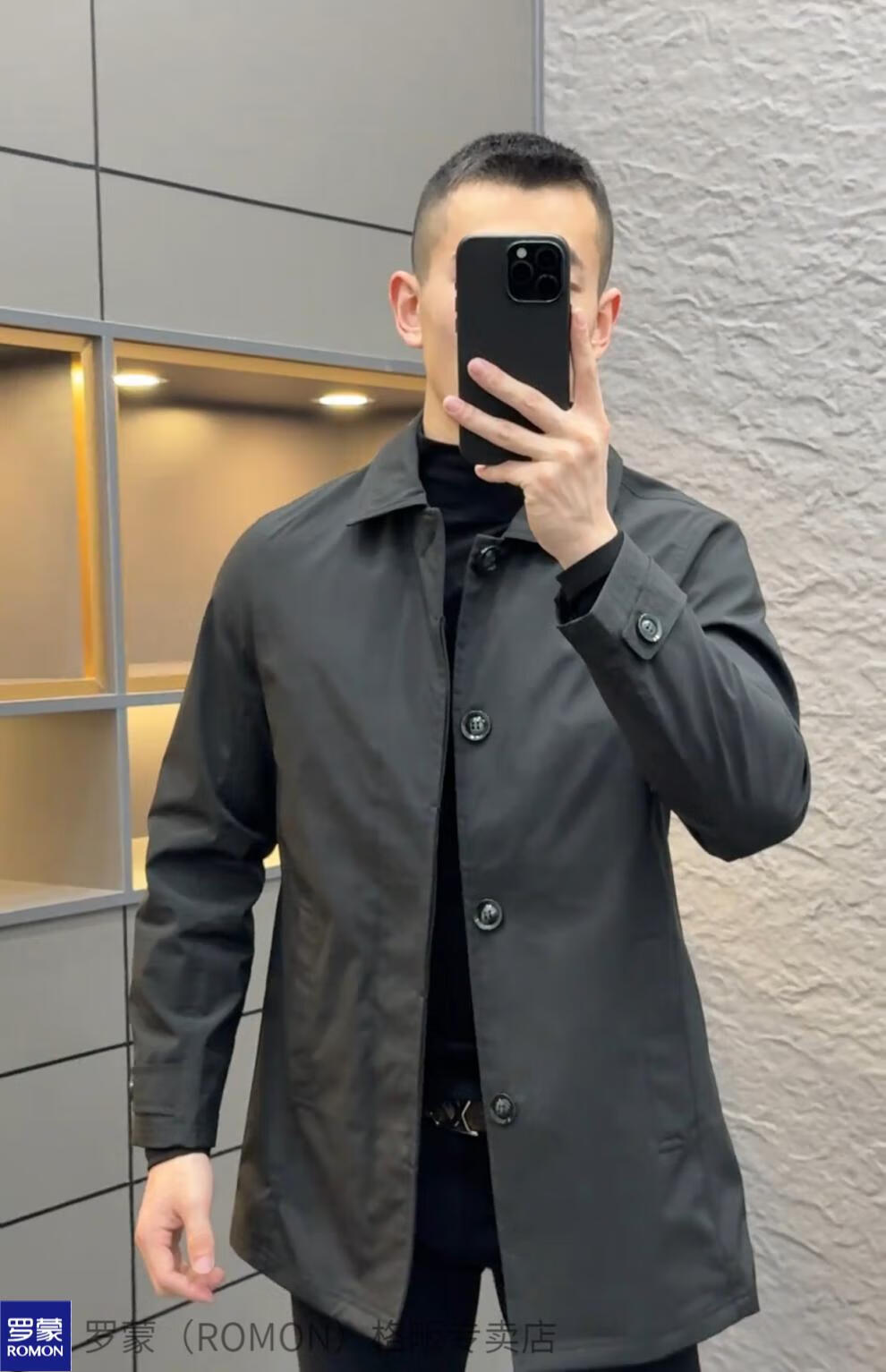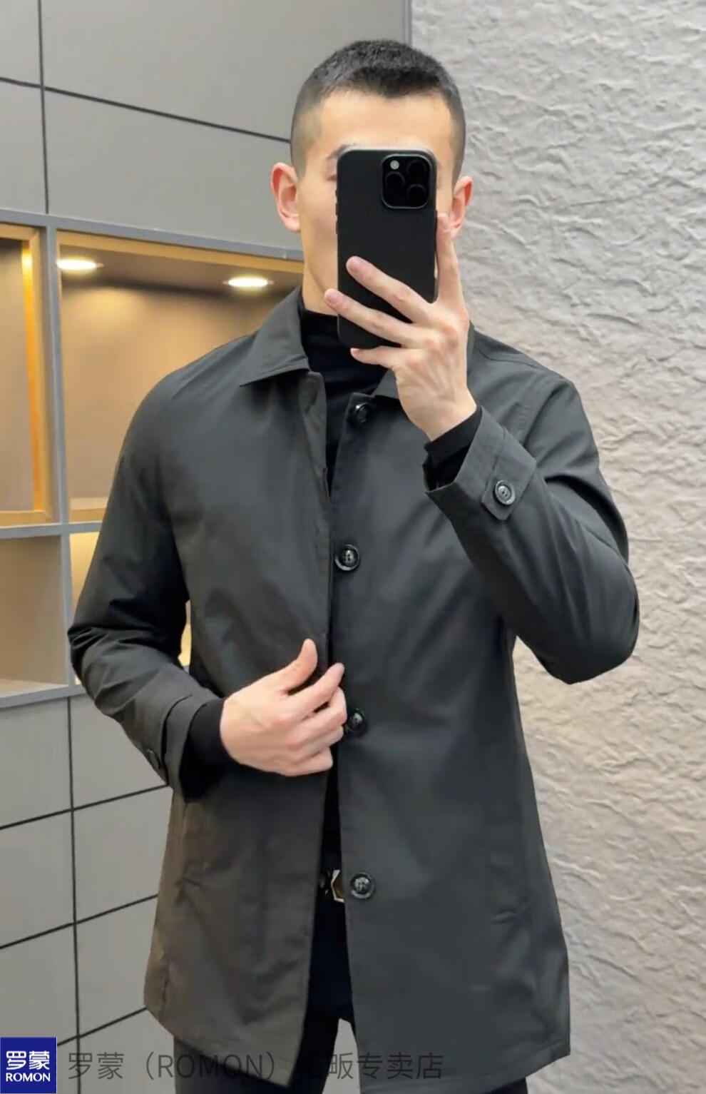 ROMON Spring and Autumn New Men's Versatile Mid-Length Lapel Standard Windproof Windbreaker Men's Casual Style Simple Light Luxury Jacket Black XL (125-140) Jin Jin equals 0.5 kg