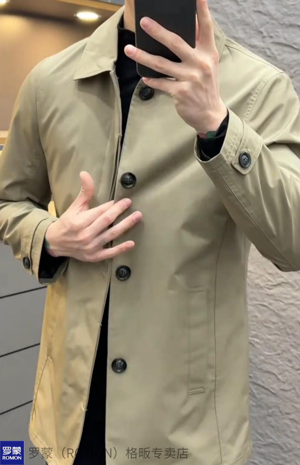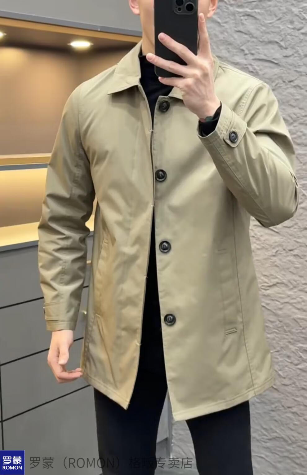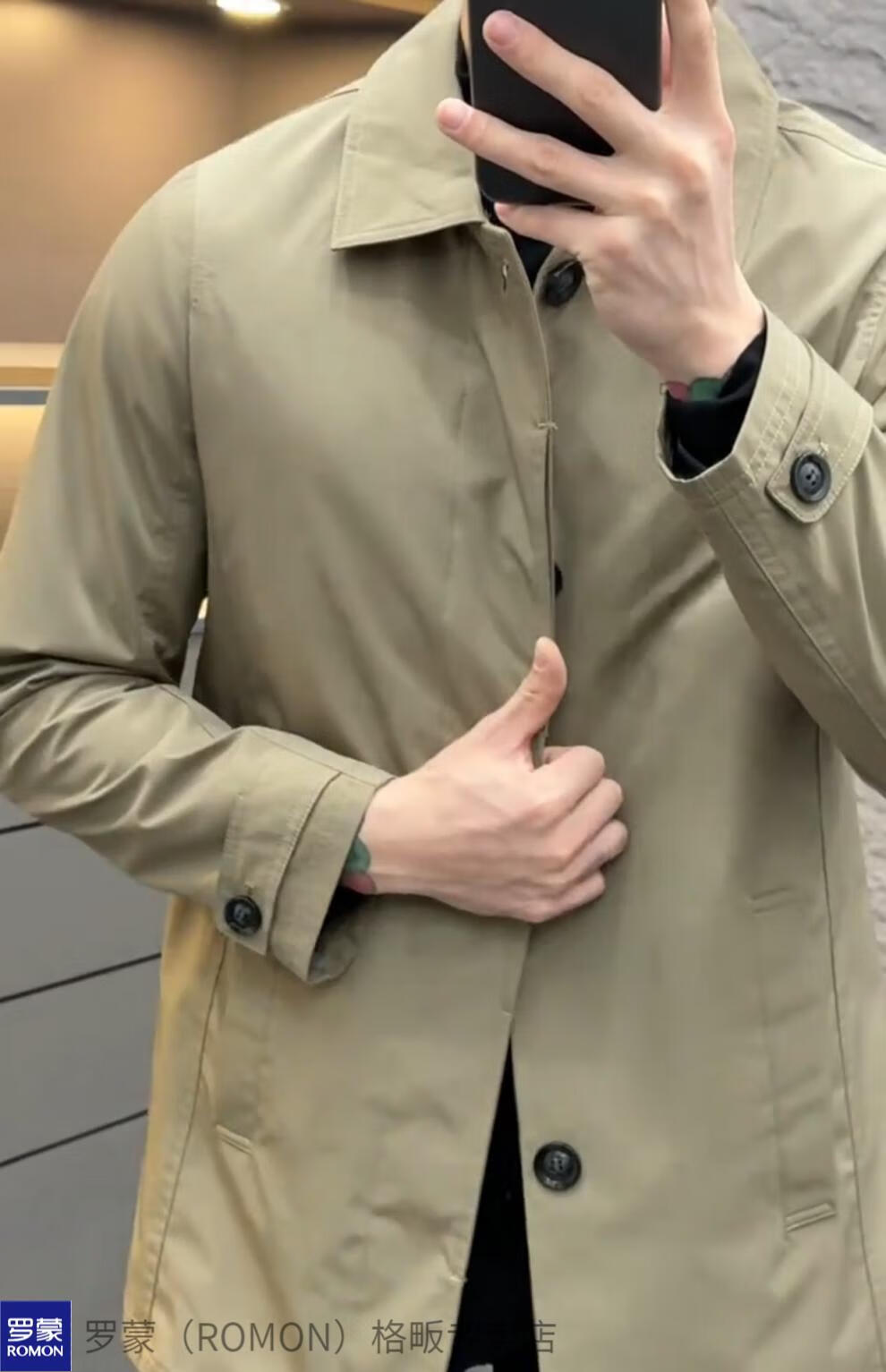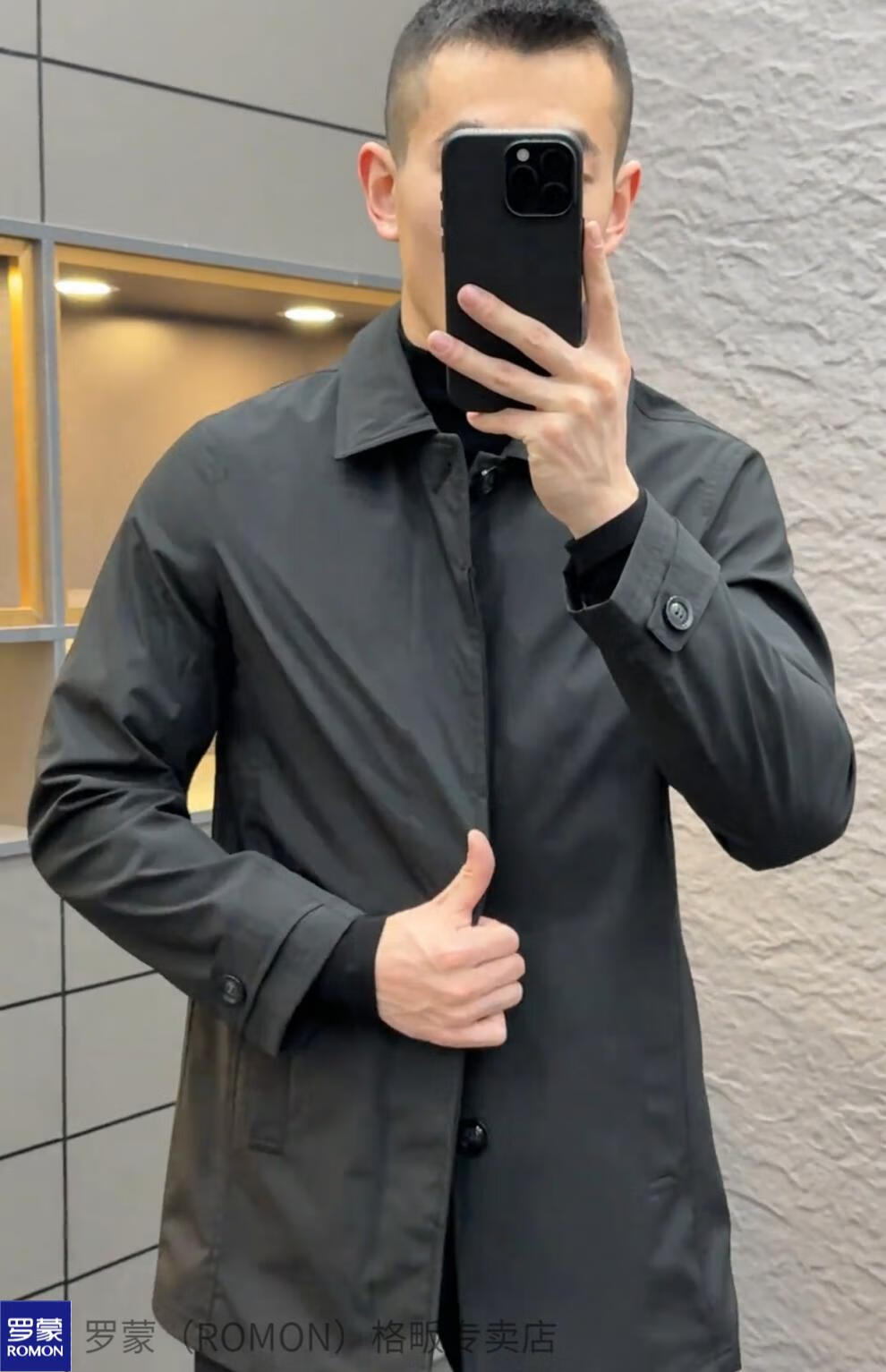 ROMON Spring and Autumn New Men's Versatile Mid-Length Lapel Standard Windproof Windbreaker Men's Casual Style Simple Light Luxury Jacket Black XL (125-140) Jin Jin equals 0.5 kg