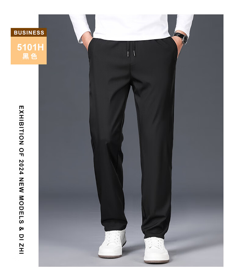 Pierre Cardin casual pants men's spring and autumn thin trendy brand loose sports casual pants drawstring elastic straight long pants black (regular) M (90-110Jin Jin equals 0.5 kg to wear)