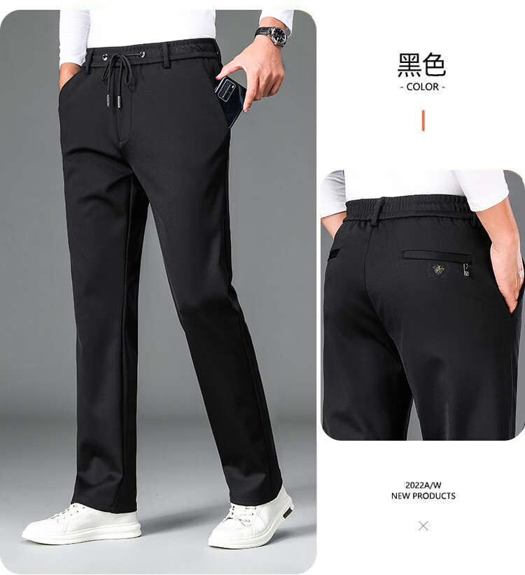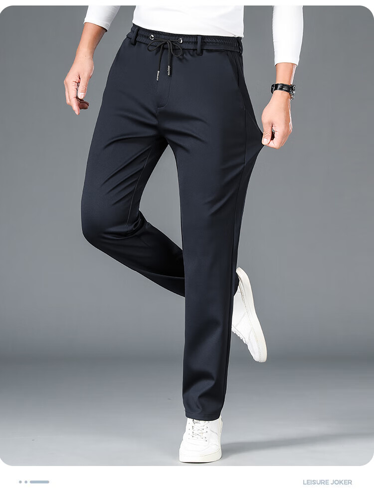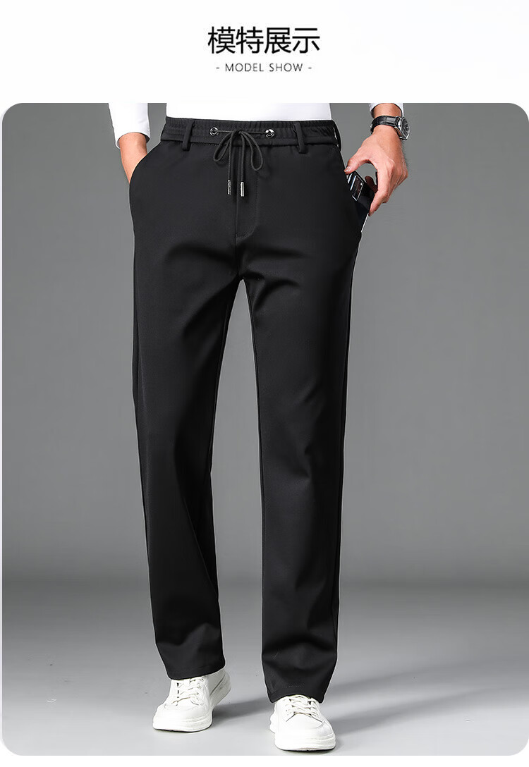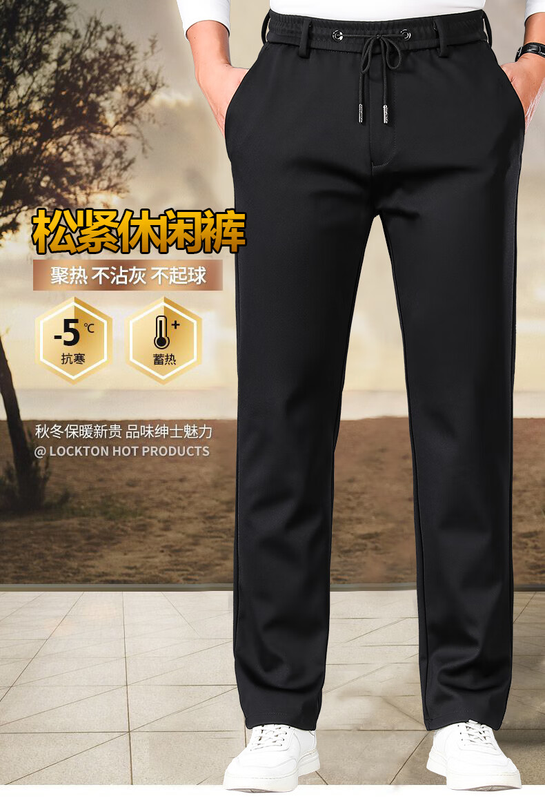 Pierre Cardin autumn and winter velvet and thickened casual pants for men, elastic elastic waist, loose straight sports casual pants, no-iron men's pants, 1 pair of black, non-iron, velvet, thickened L, recommended weight 90-110Jin Jin is equal to 0.5 kg