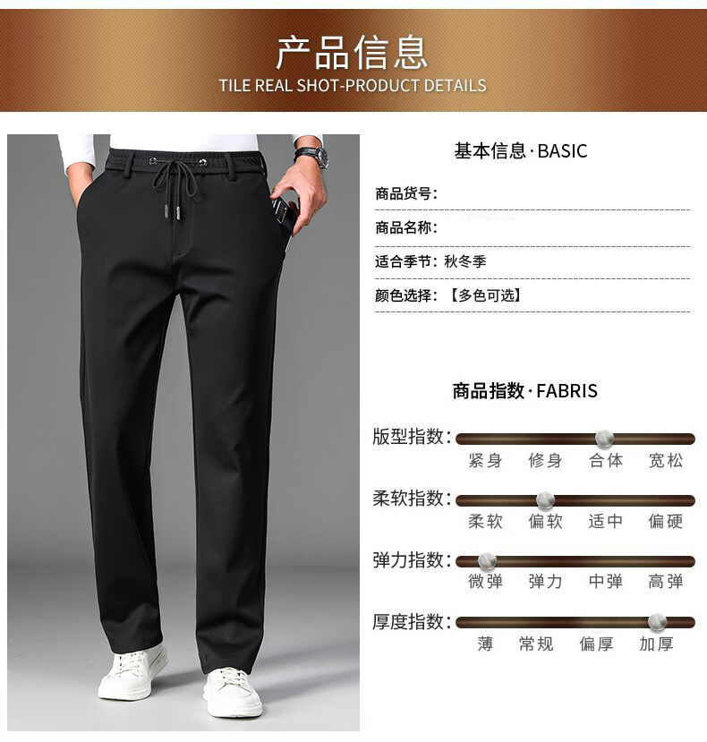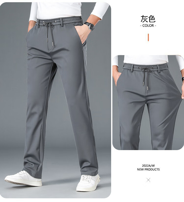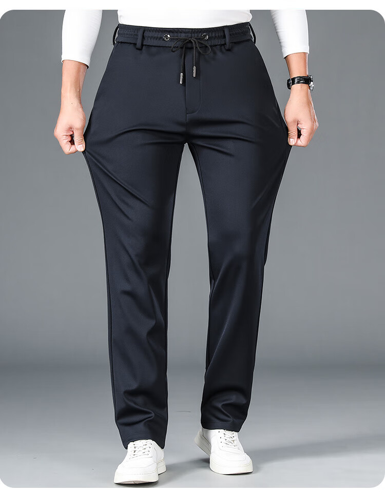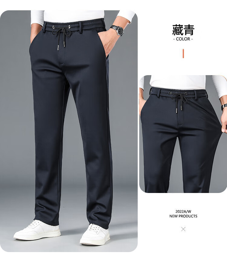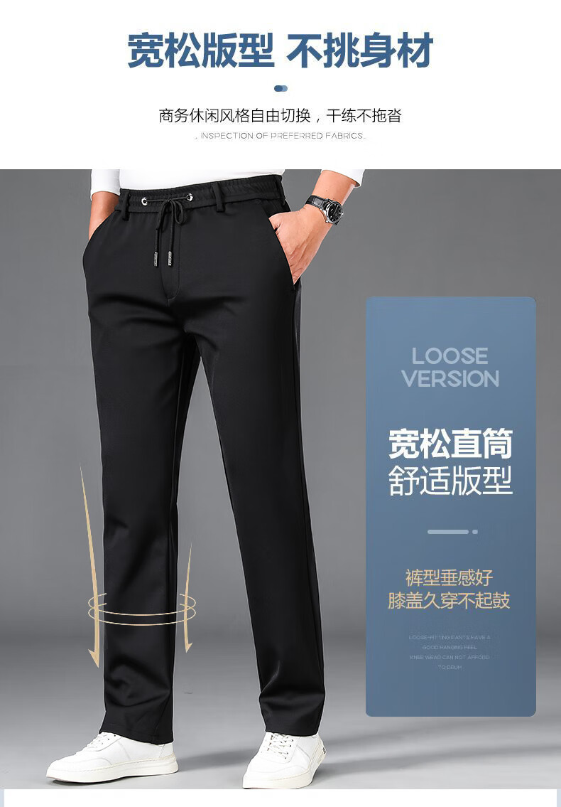 Pierre Cardin autumn and winter velvet and thickened casual pants for men, elastic elastic waist, loose straight sports casual pants, no-iron men's pants, 1 pair of black, non-iron, velvet, thickened L, recommended weight 90-110Jin Jin is equal to 0.5 kg