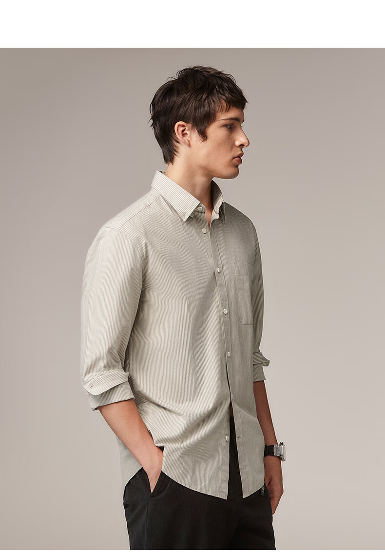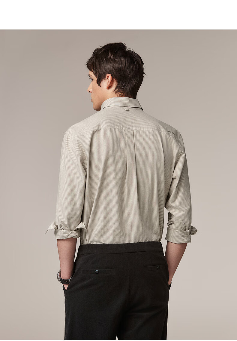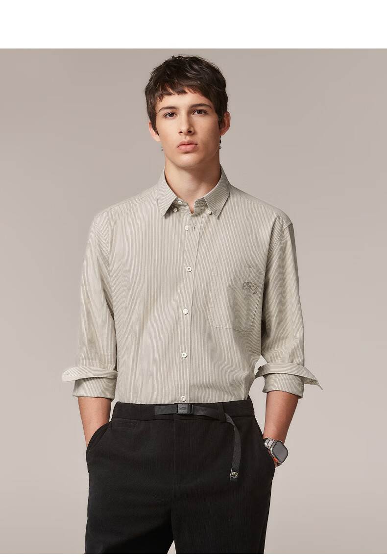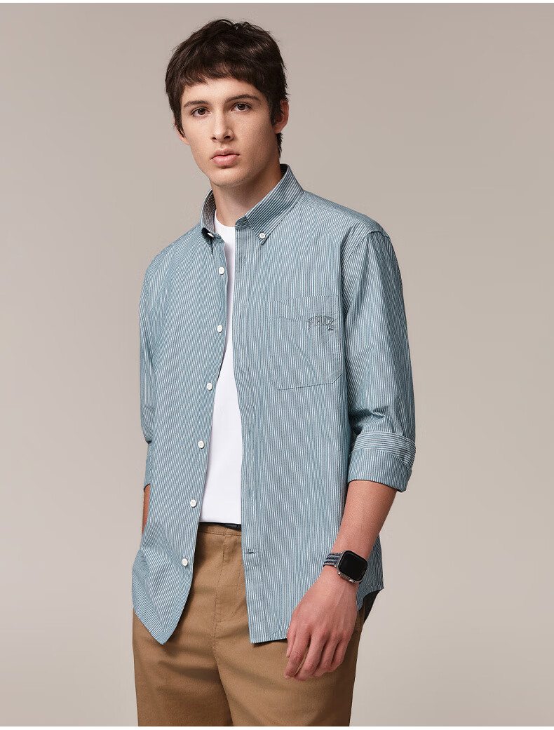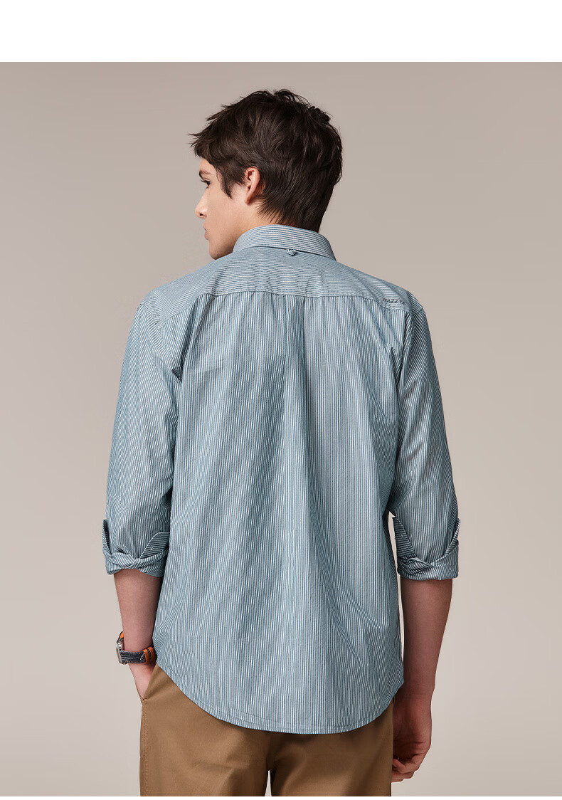 HAZZYS Men's Autumn Cotton Long Sleeve Shirt Men's Pinstripe Front Chest Pocket PHIZ Business Casual Men's Shirt Dark Green DG XL (180/100A 50)