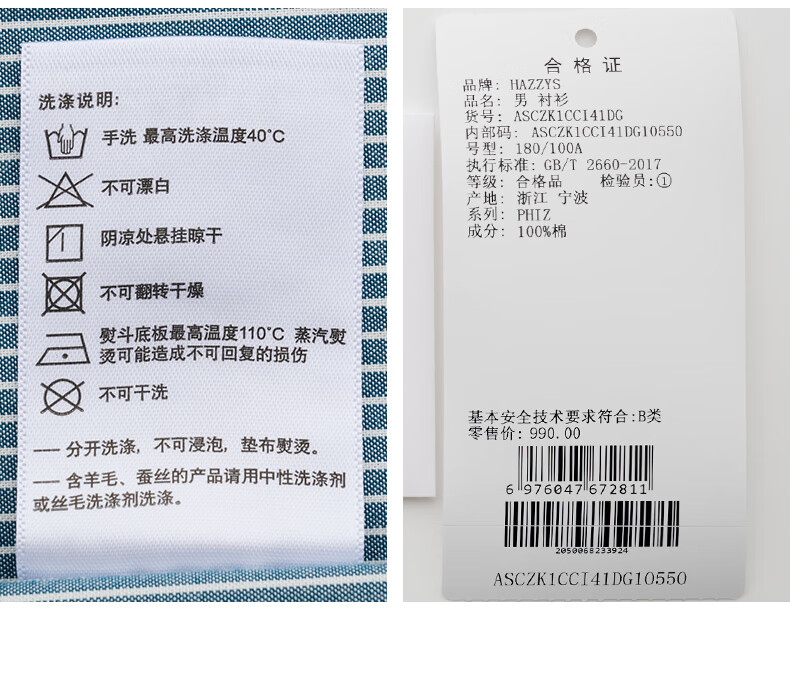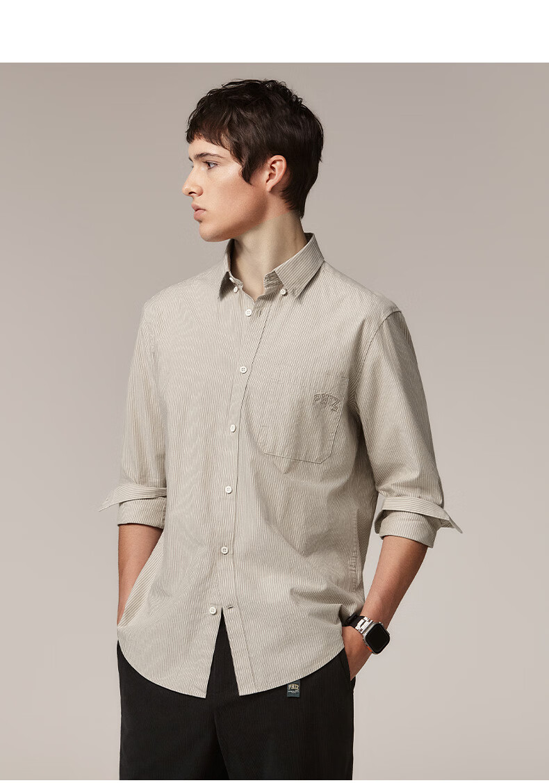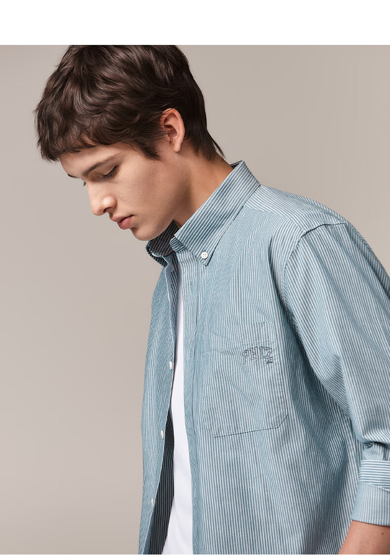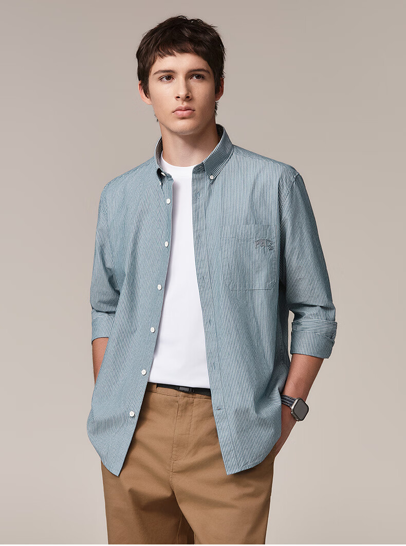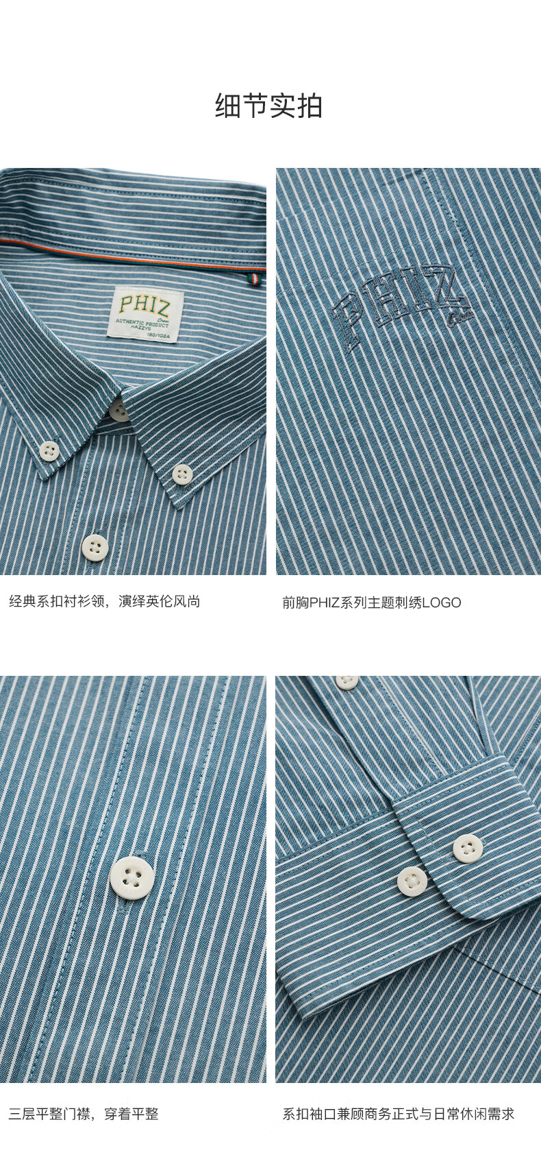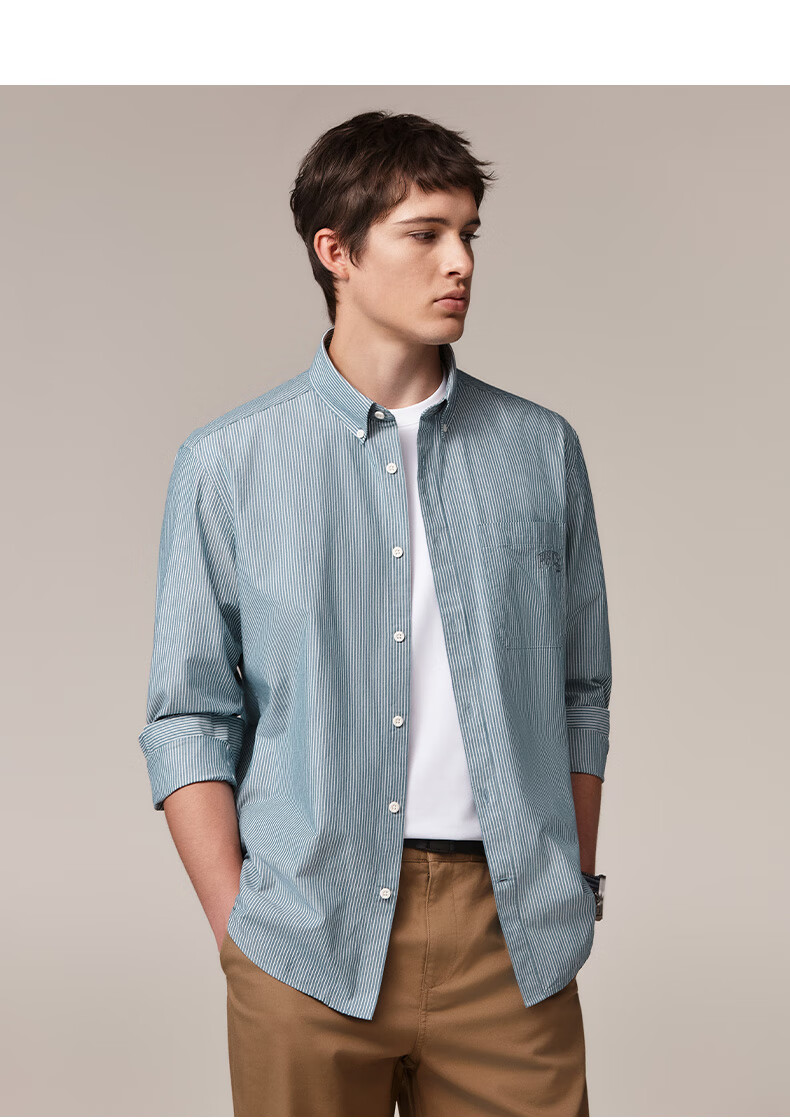 HAZZYS Men's Autumn Cotton Long Sleeve Shirt Men's Pinstripe Front Chest Pocket PHIZ Business Casual Men's Shirt Dark Green DG XL (180/100A 50)