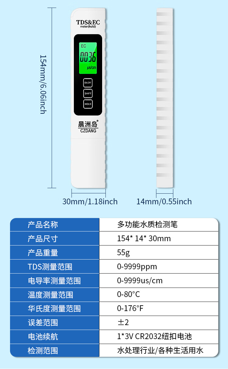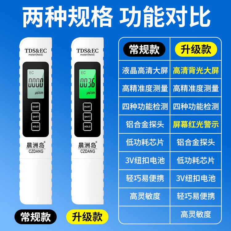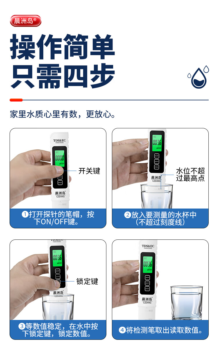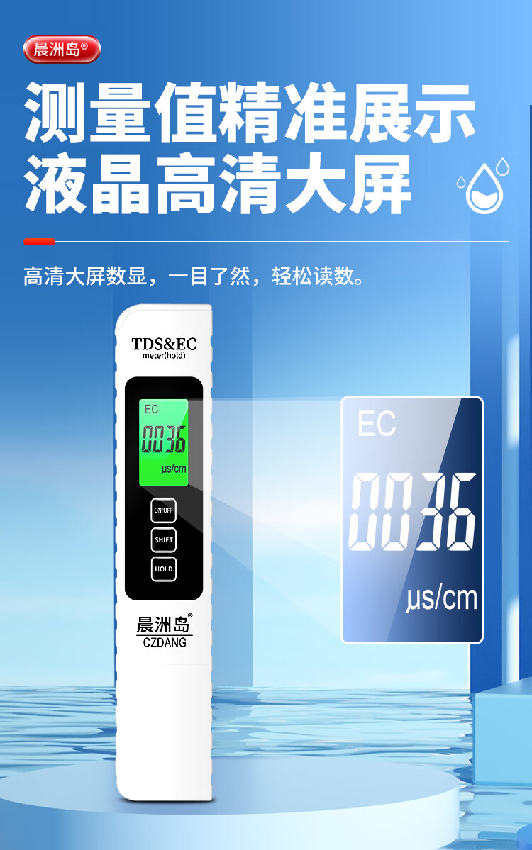 High-precision TDS water quality testing pen, water purifier, water quality testing pen, household pure water quality testing instrument for drinking, Chenzhou Island water quality testing pen (dual backlight)