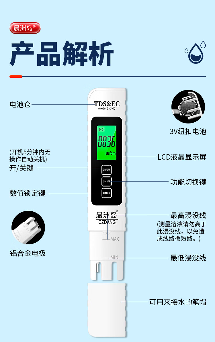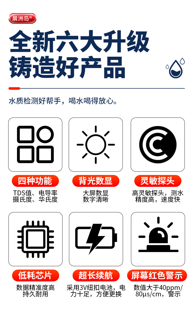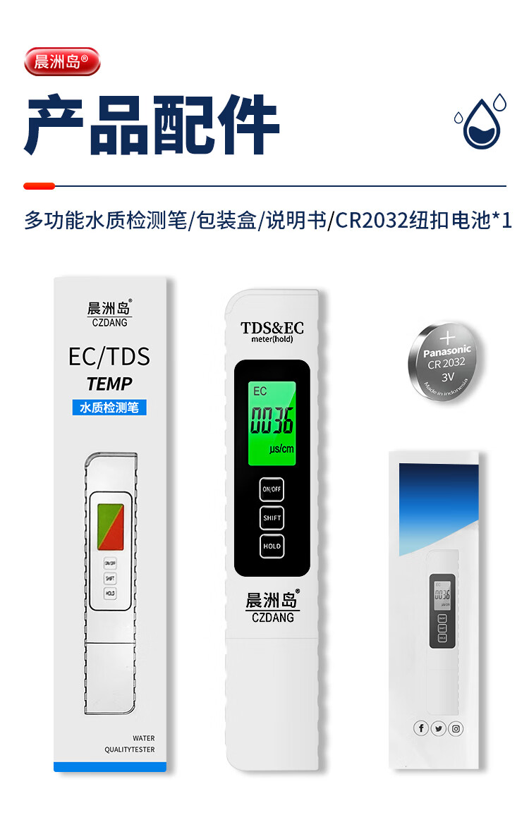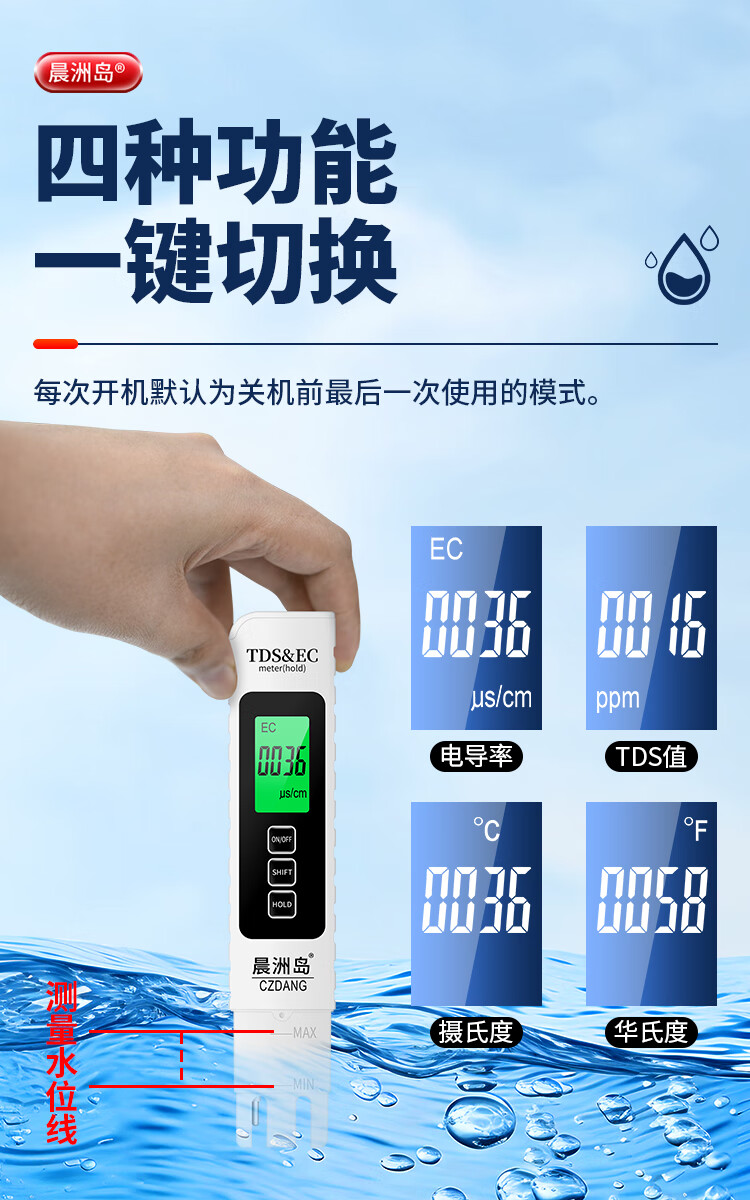 High-precision TDS water quality testing pen, water purifier, water quality testing pen, household pure water quality testing instrument for drinking, Chenzhou Island water quality testing pen (dual backlight)