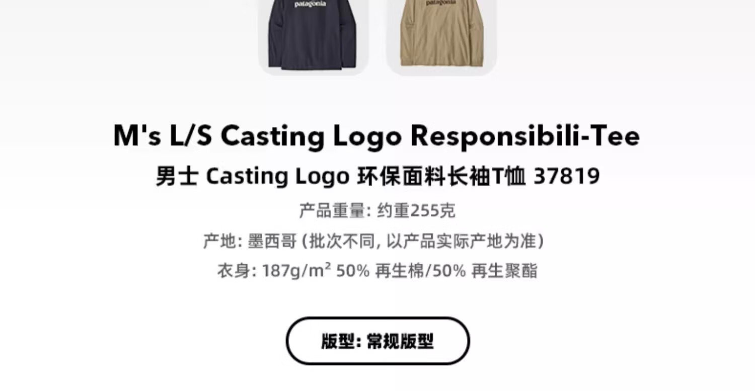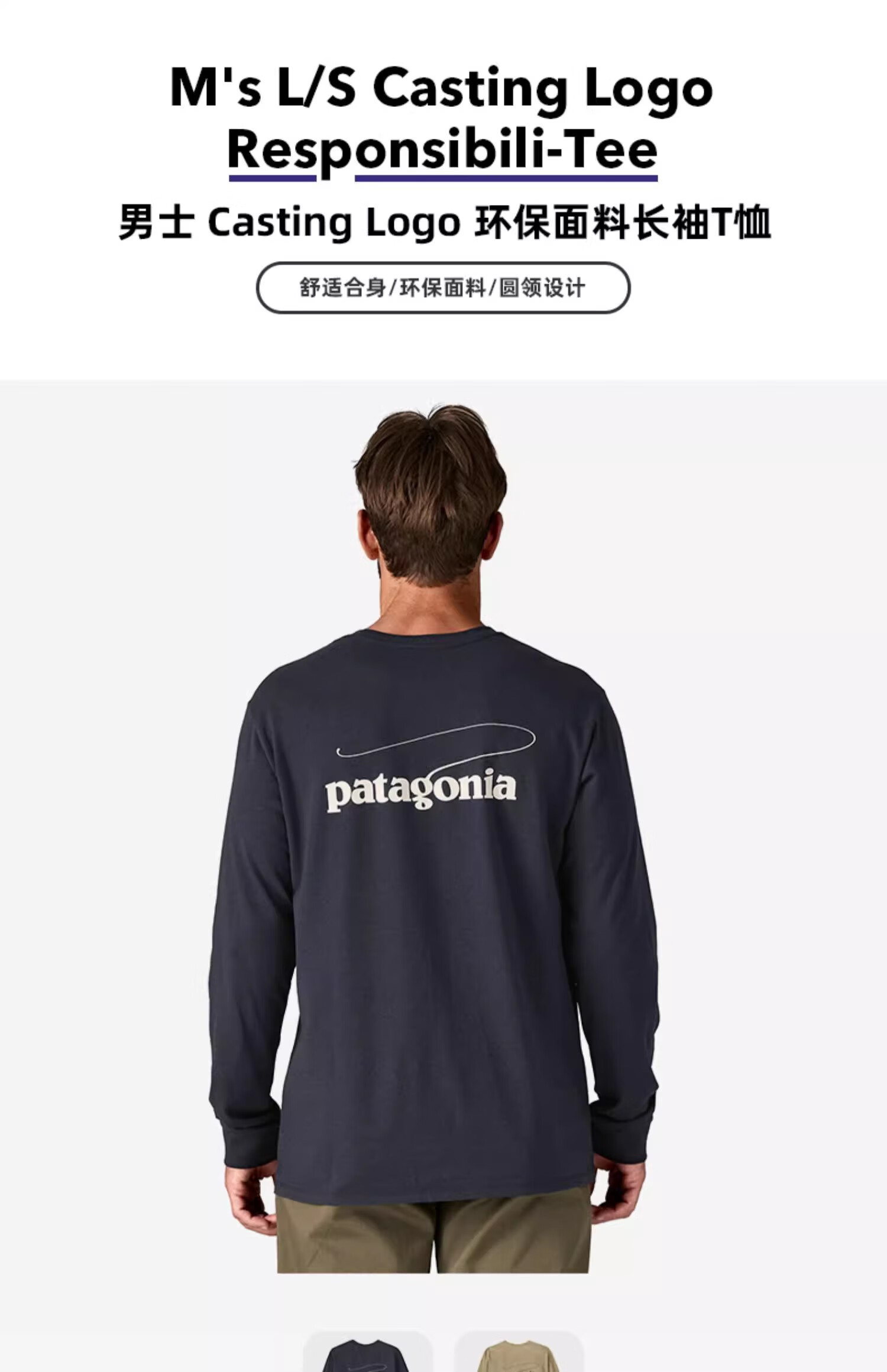 Patagonia men's LS casting outdoor fly fishing blended trendy long-sleeved T-shirt crew neck shirt 37819 PUM Khaki M