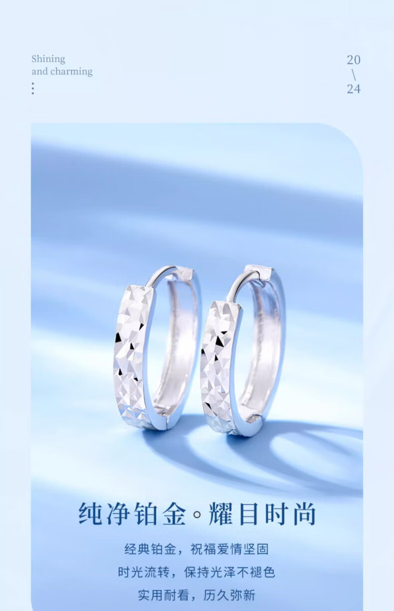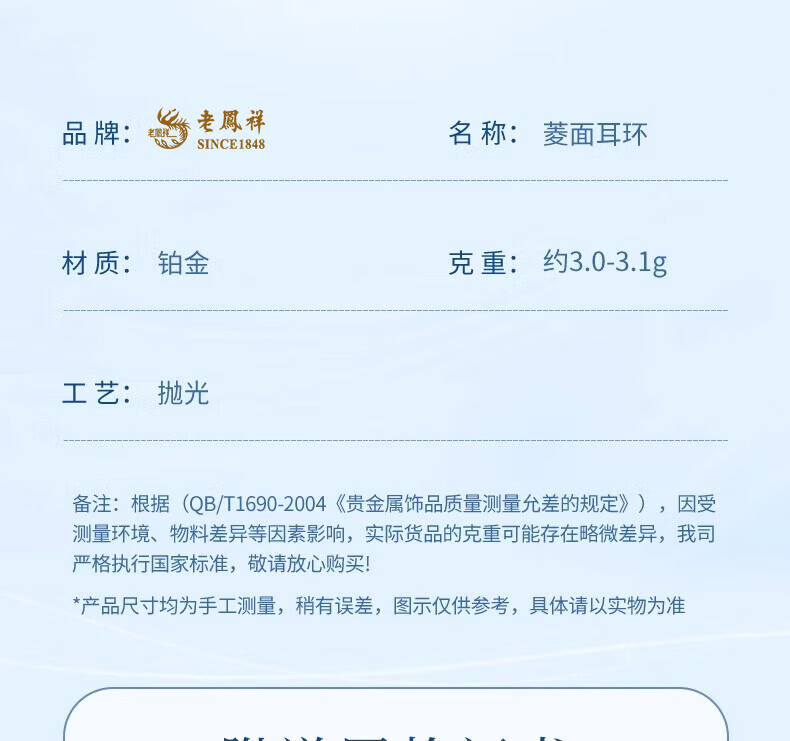 Lao Fengxiang PT950 platinum mirror light rhombus earrings earrings for women 2025 new anniversary birthday gift for girlfriend and wife confession gift* platinum mirror light rhombus earrings about 3.1g heart-beating gift box