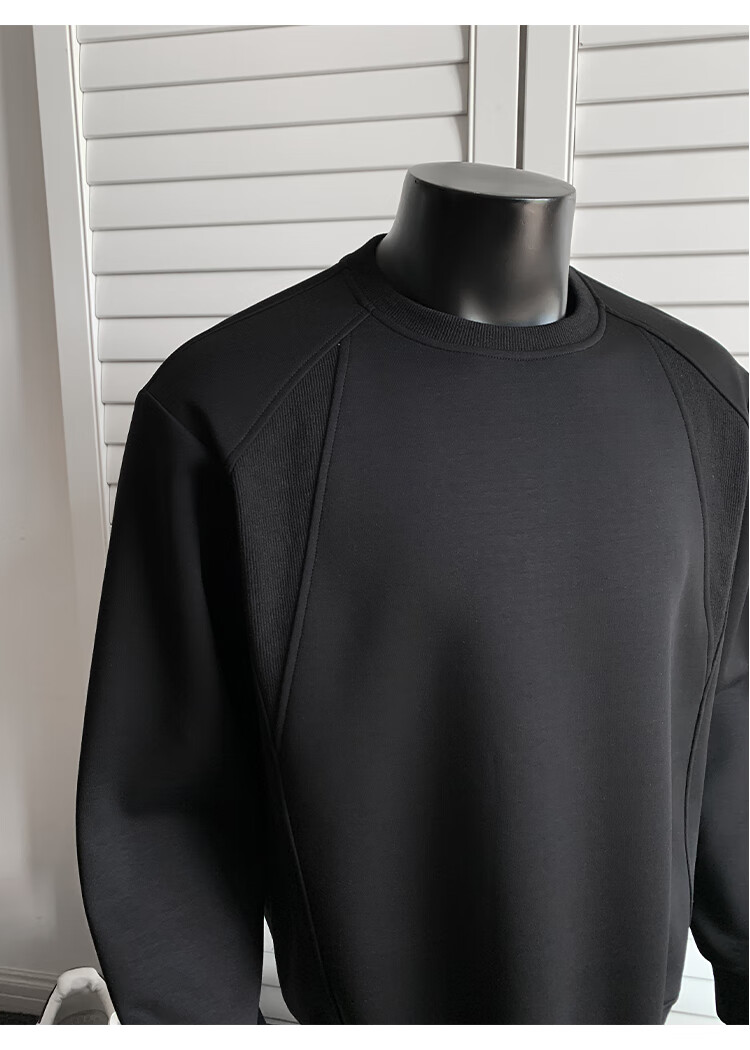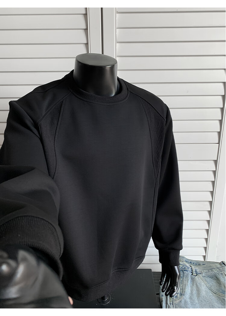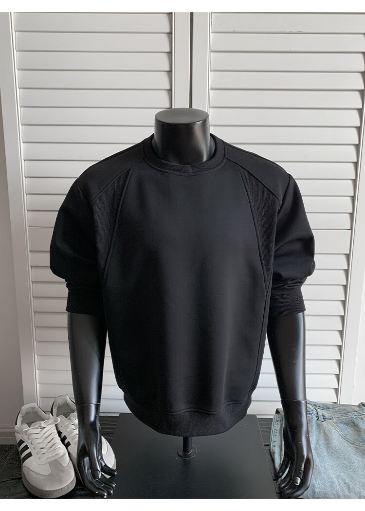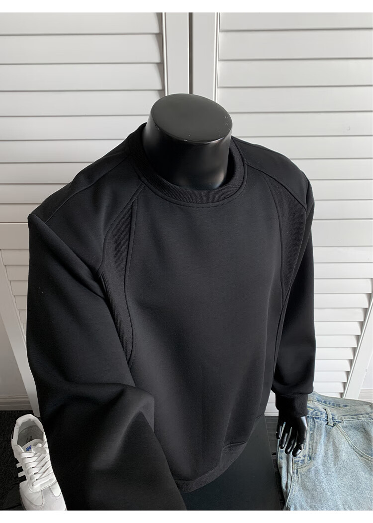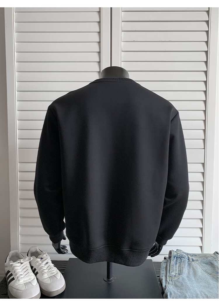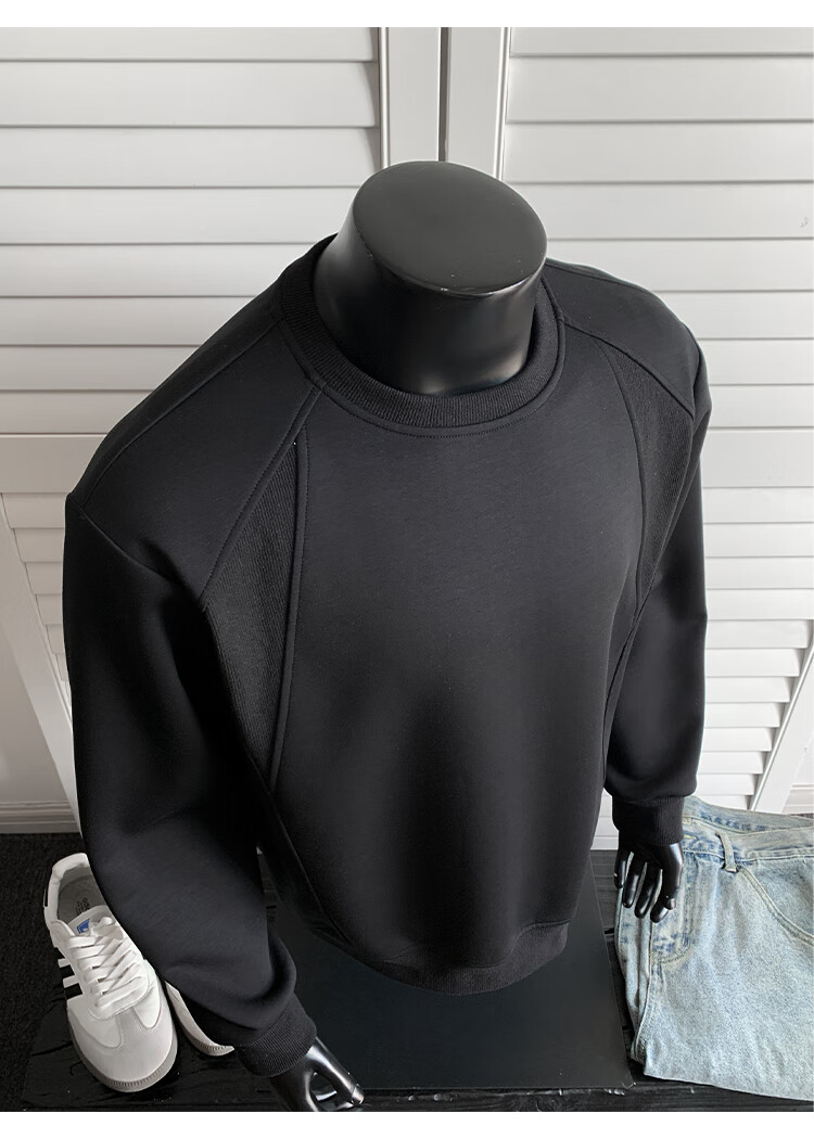 OEMG shoulder 430g heavyweight long-sleeved sweatshirt men's autumn and winter wide shoulder casual warm base plus velvet inner top black XL recommended 130-150Jin Jin equals 0.5 kg