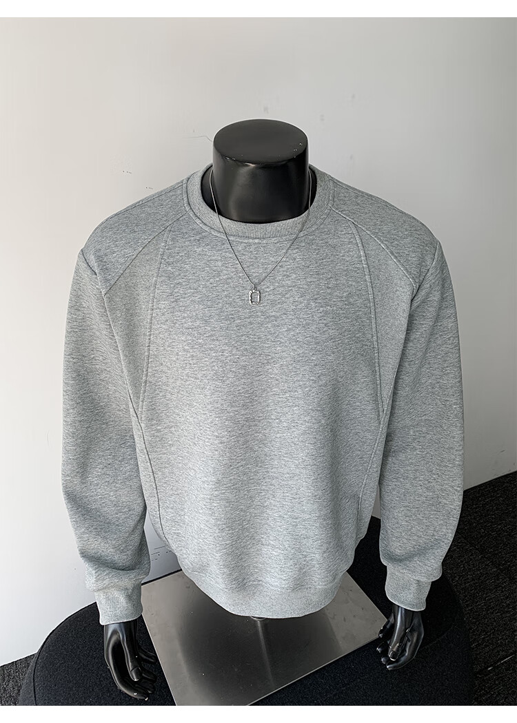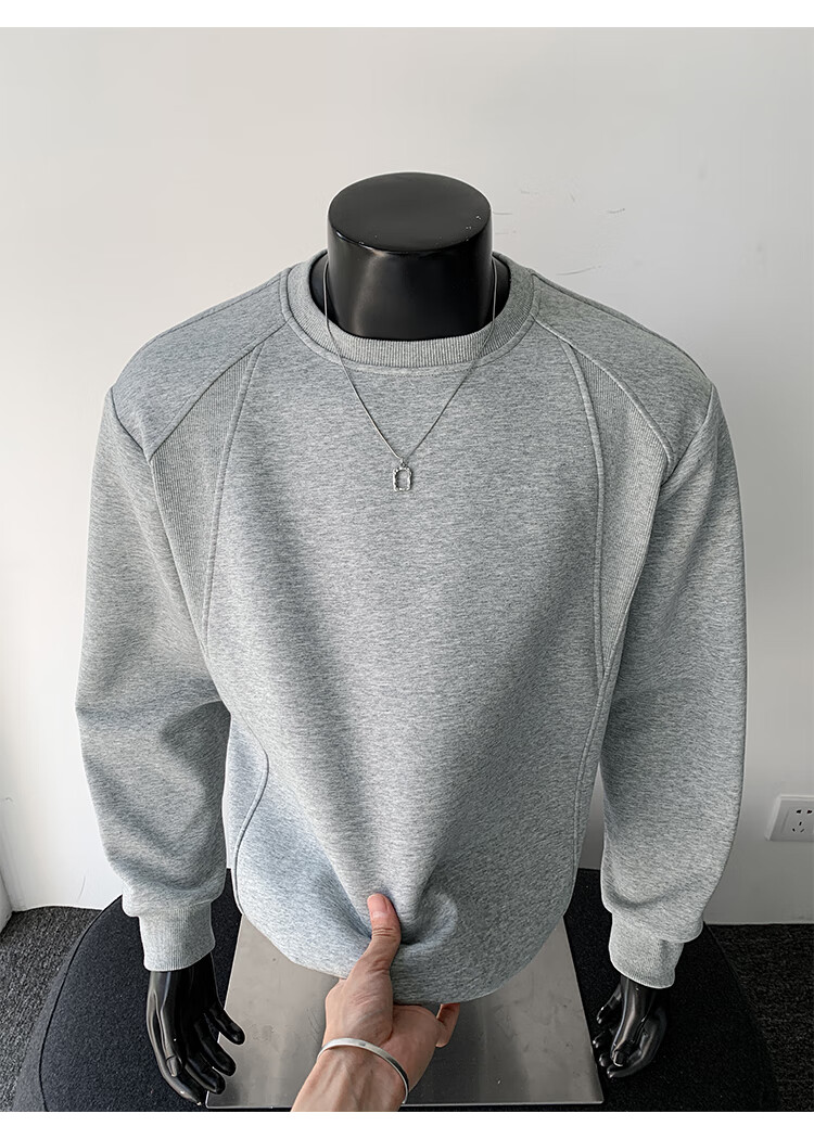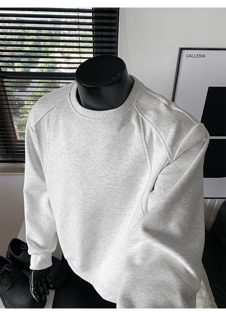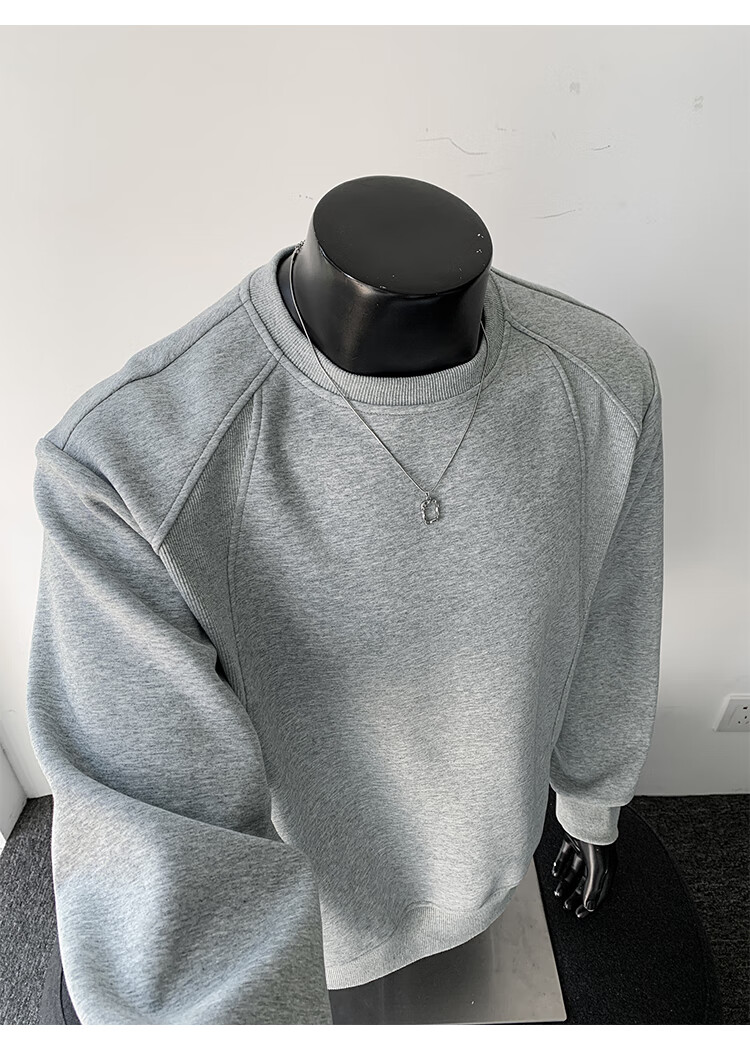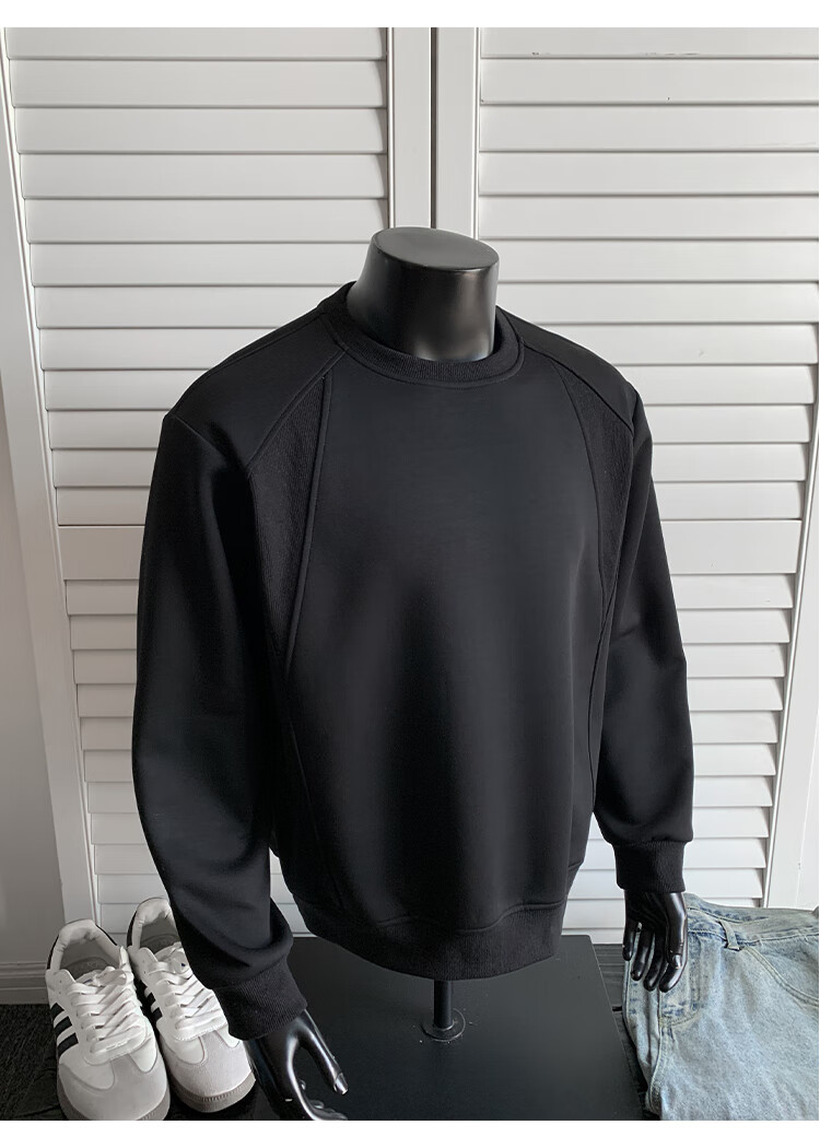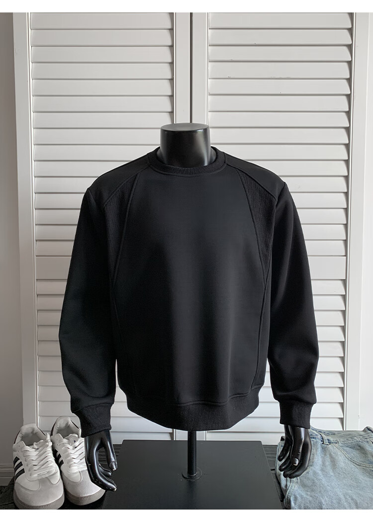 OEMG shoulder 430g heavyweight long-sleeved sweatshirt men's autumn and winter wide shoulder casual warm base plus velvet inner top black XL recommended 130-150Jin Jin equals 0.5 kg