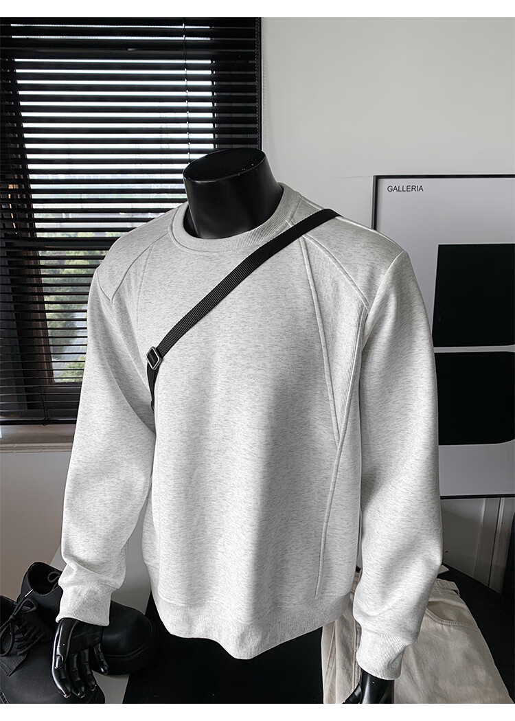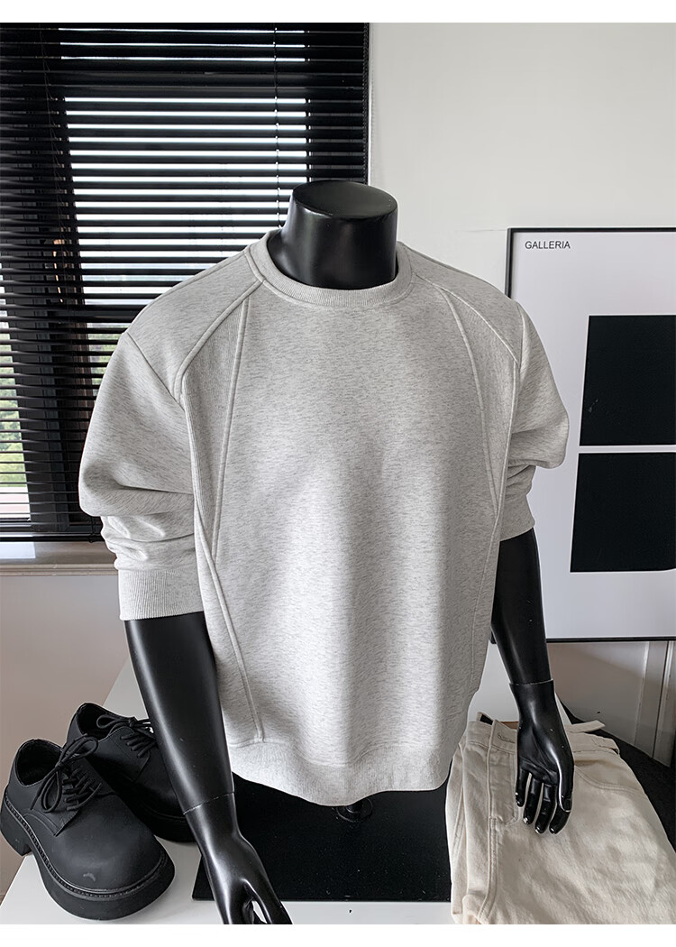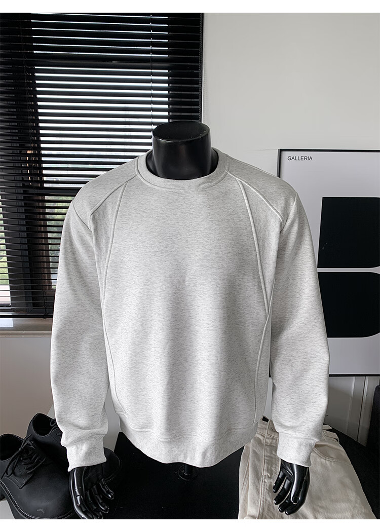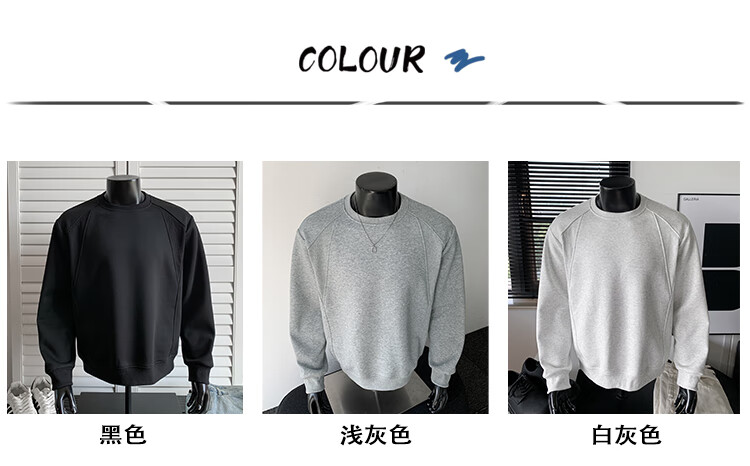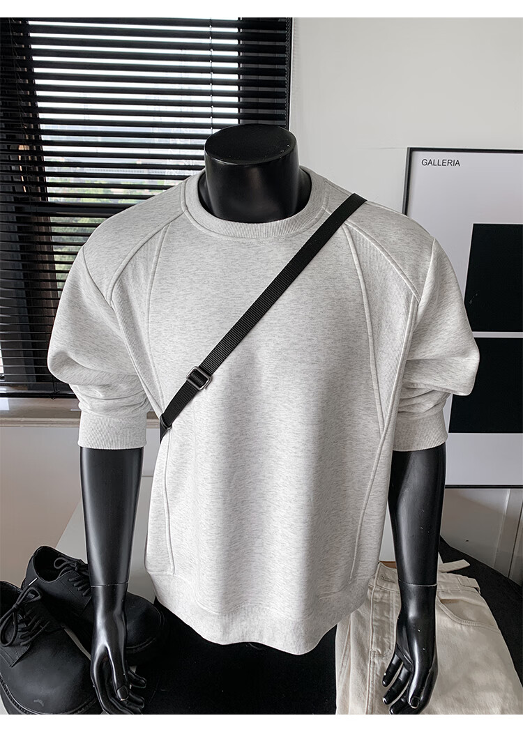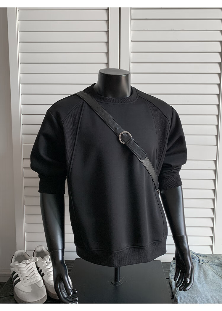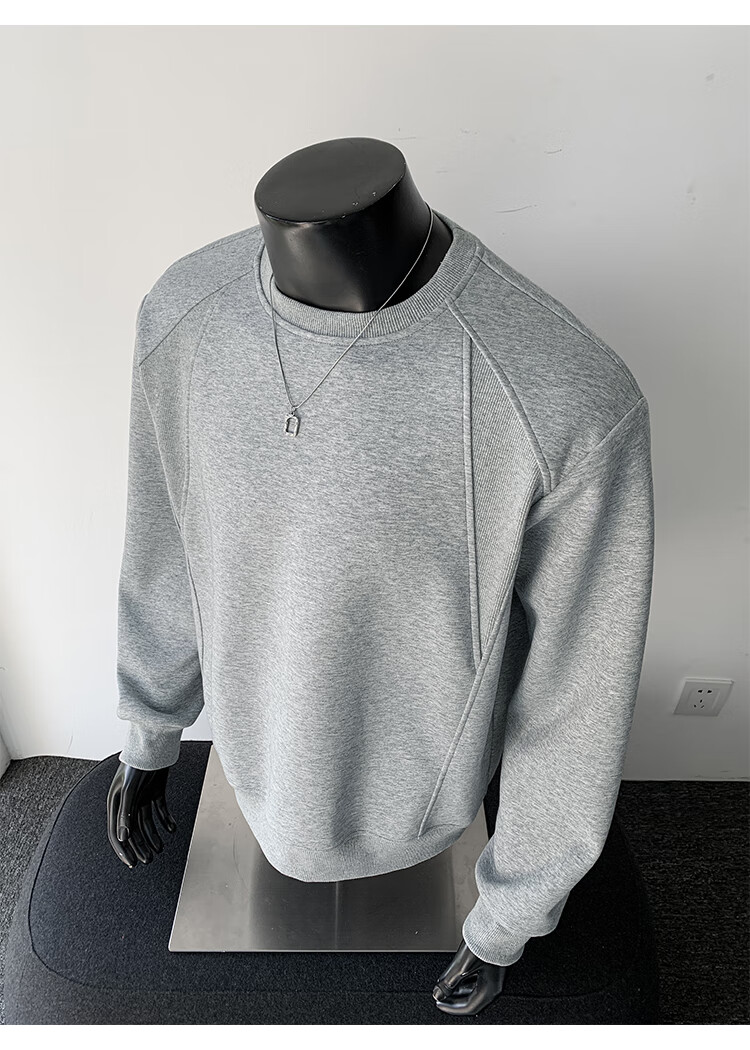 OEMG shoulder 430g heavyweight long-sleeved sweatshirt men's autumn and winter wide shoulder casual warm base plus velvet inner top black XL recommended 130-150Jin Jin equals 0.5 kg