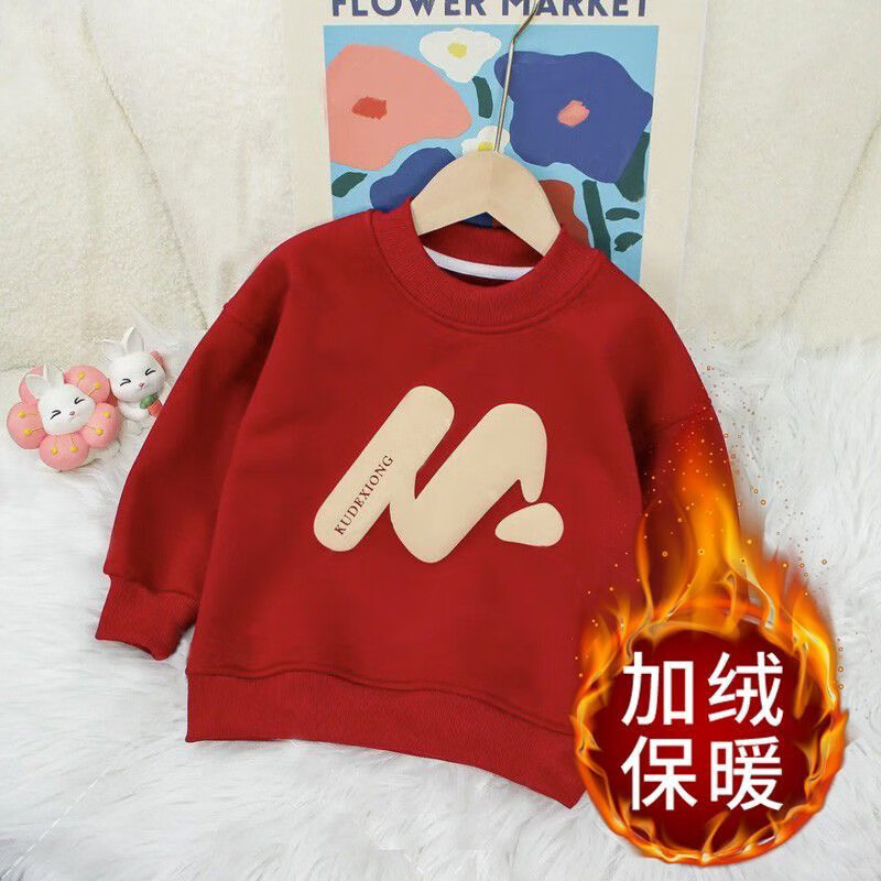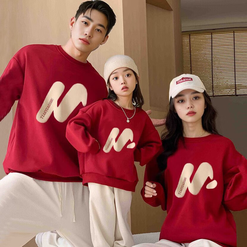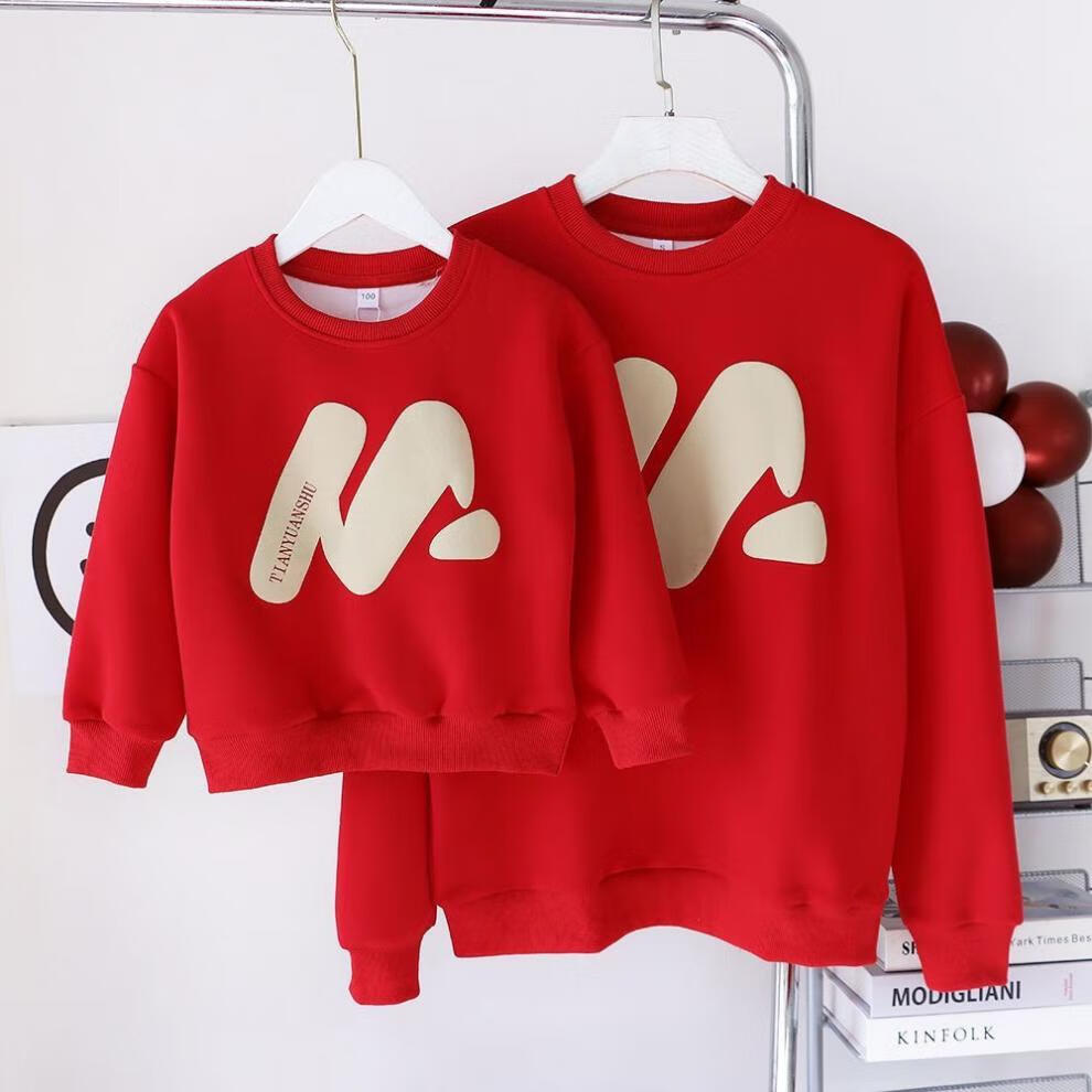 G.duck little yellow duck new internet celebrity parent-child outfit three-mouth red sweatshirt spring, autumn and winter western-style mother-child mother-daughter New Year red without velvet 100