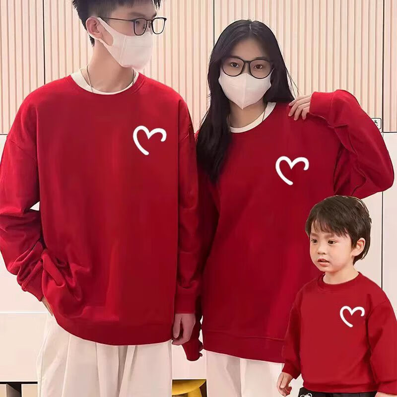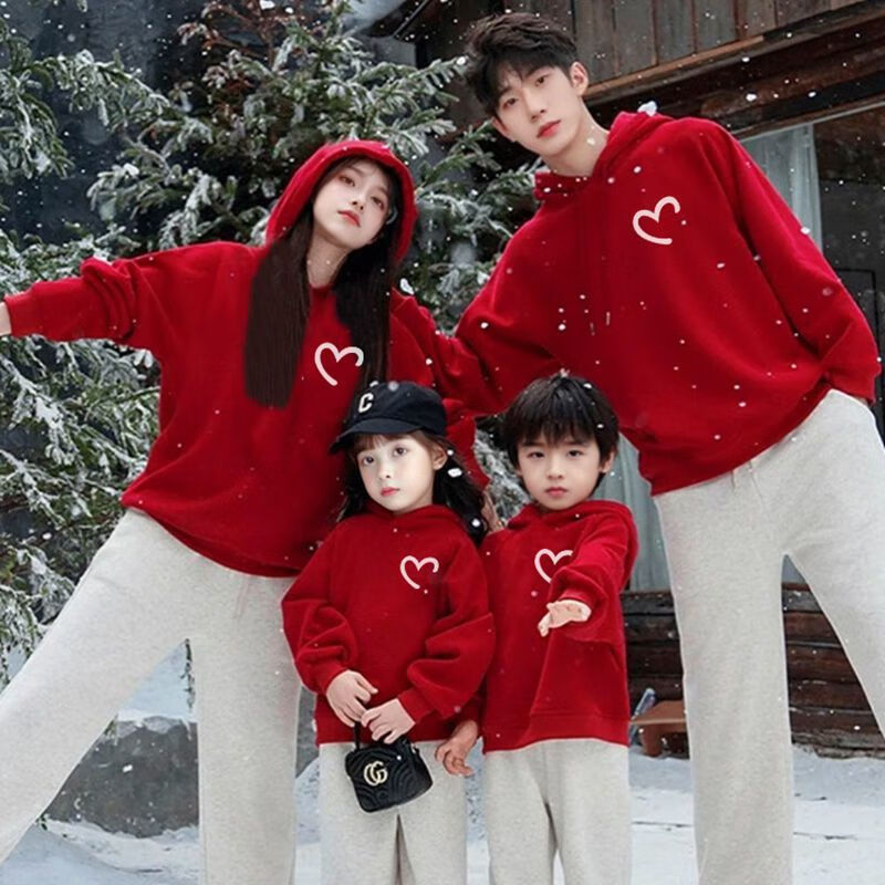G.duck little yellow duck Chinese style parent-child outfit family portrait 2026 Year of the Horse spring and autumn outfit three-person family sports sweatshirt red hooded (spring and autumn style) 165 Adult S