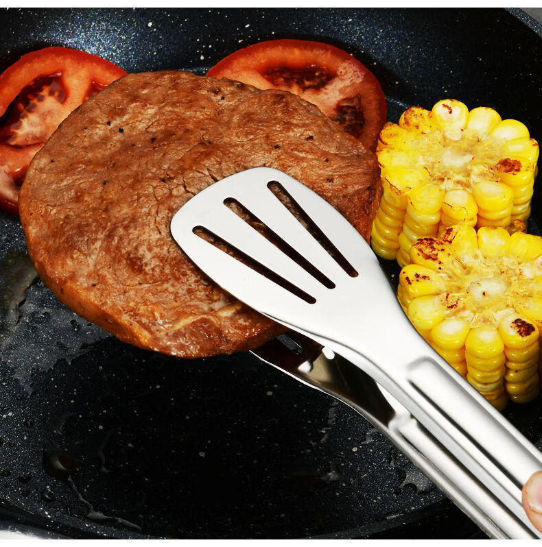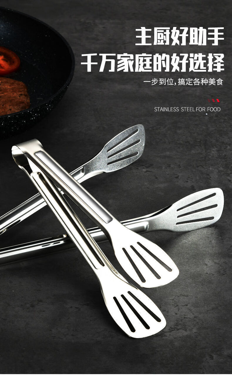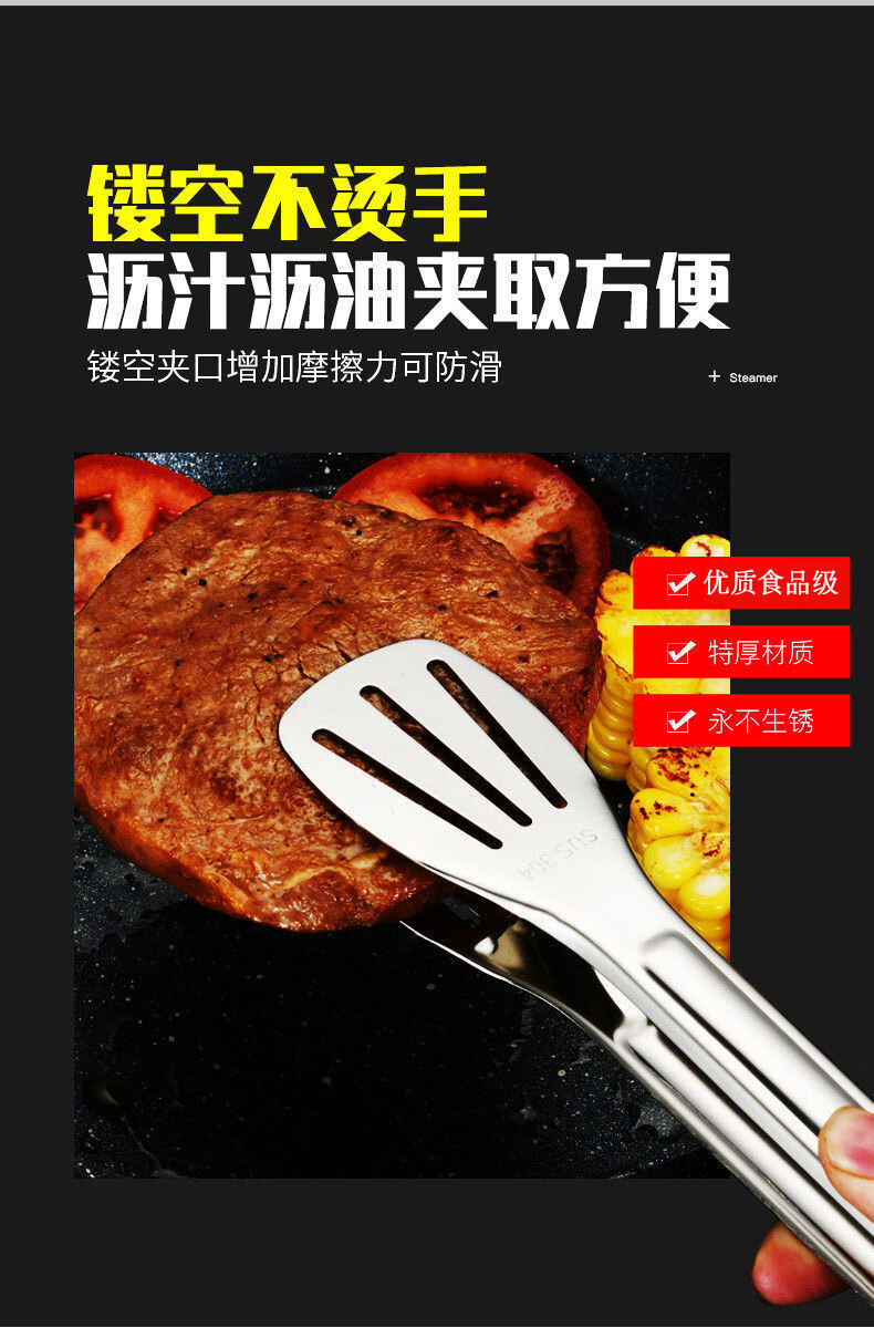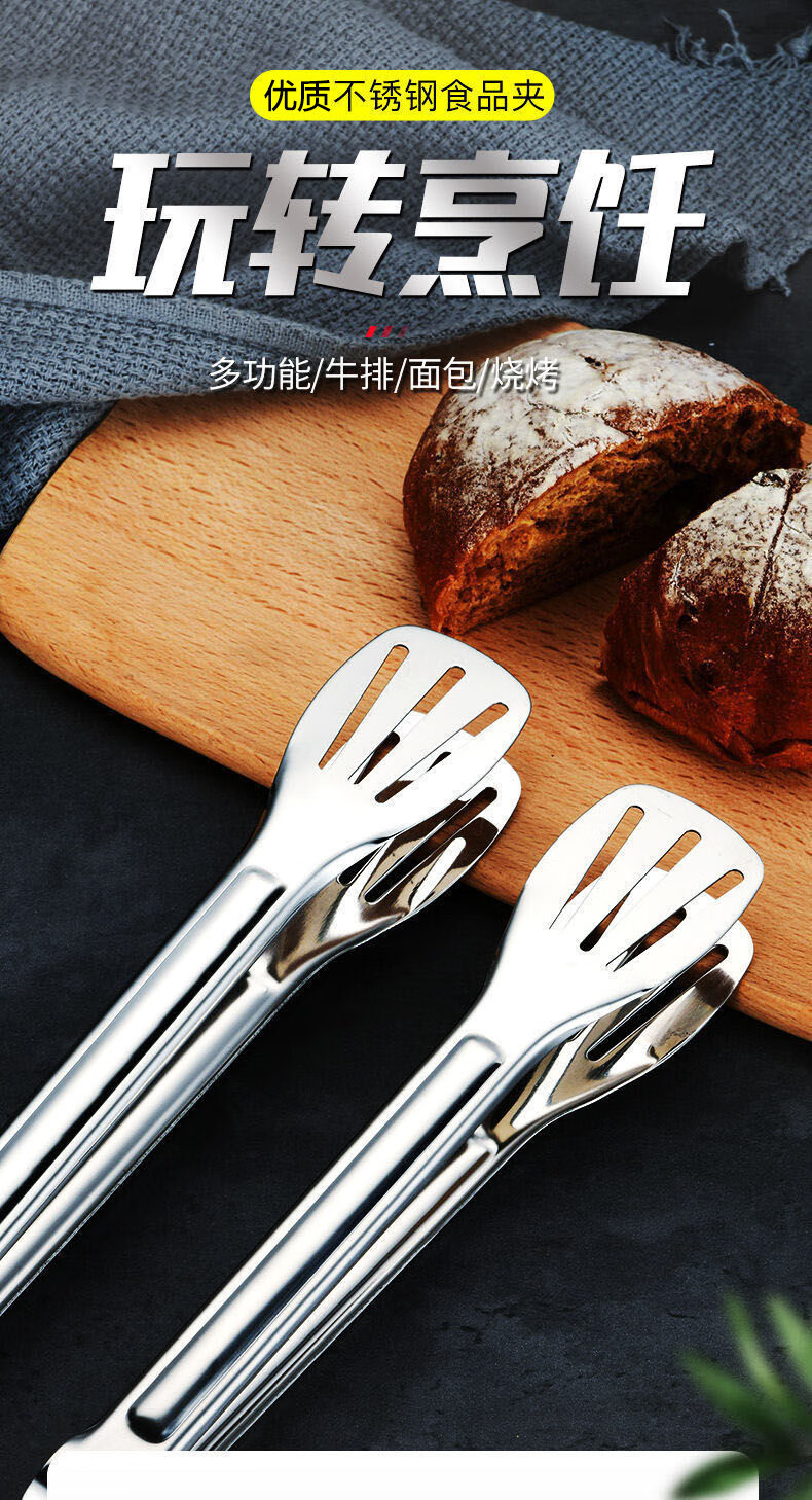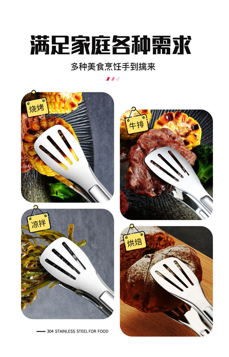 Yuexinke stainless steel food tongs barbecue steak steamed buns barbecue thickened kitchen food baking sushi tongs barbecue tongs 9 inches thickened + oil brush
