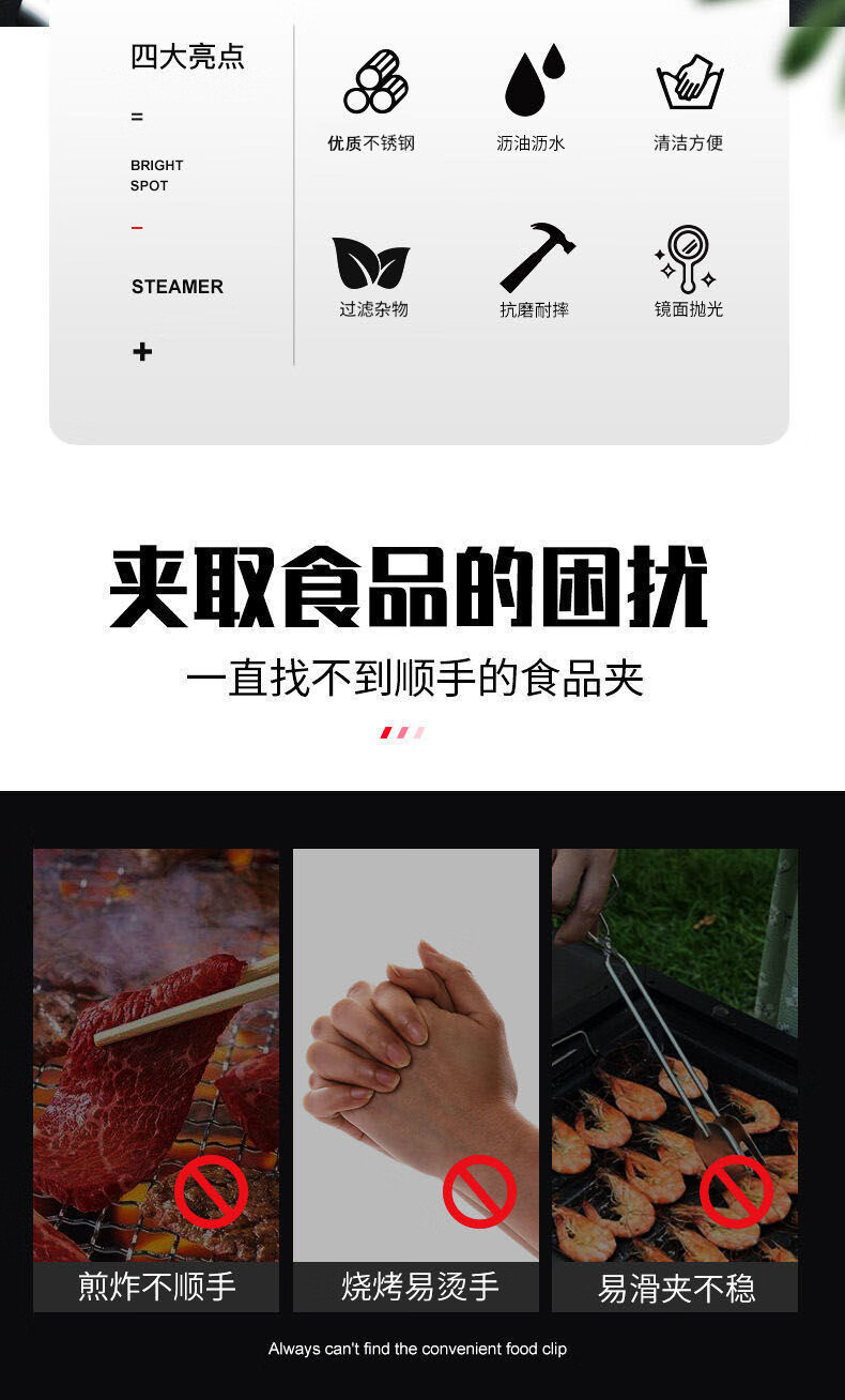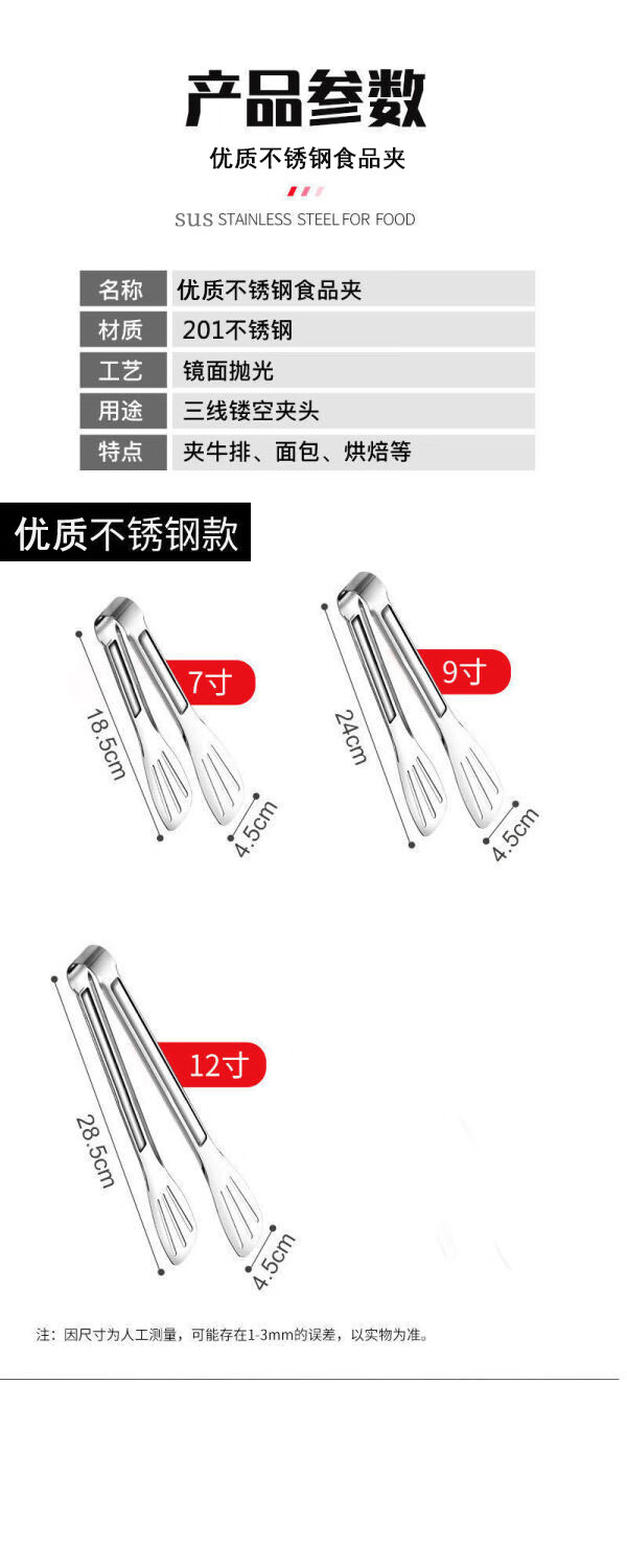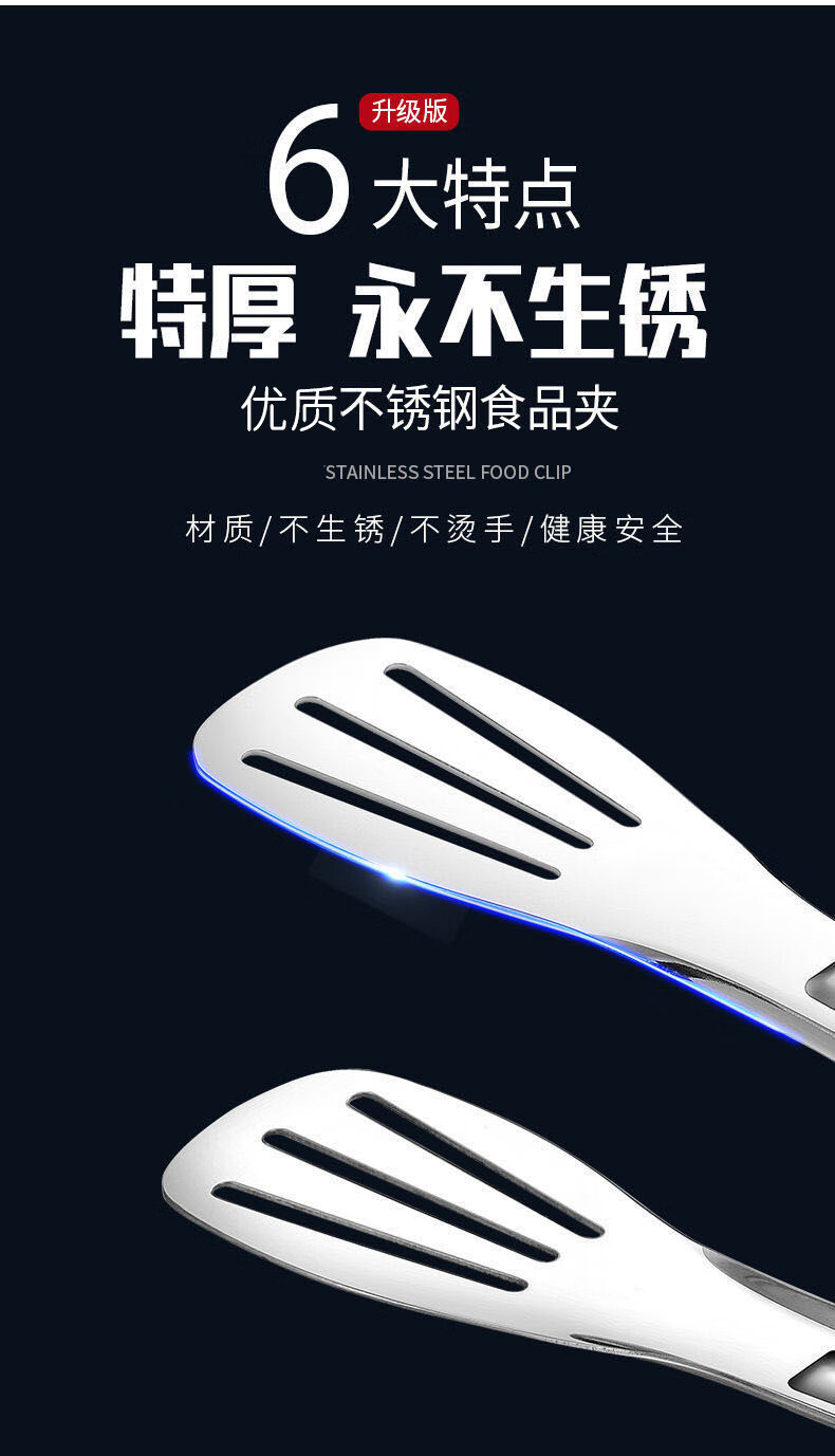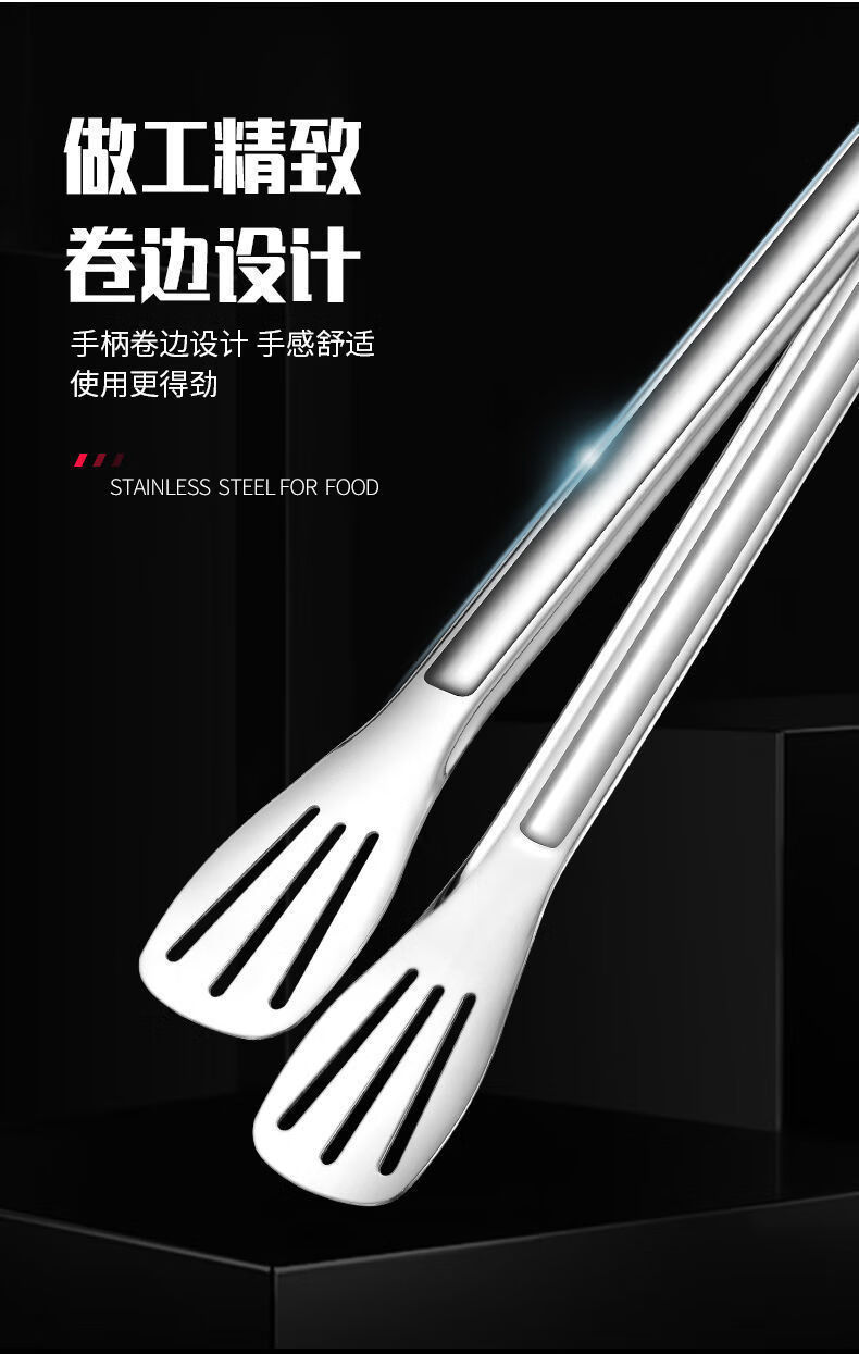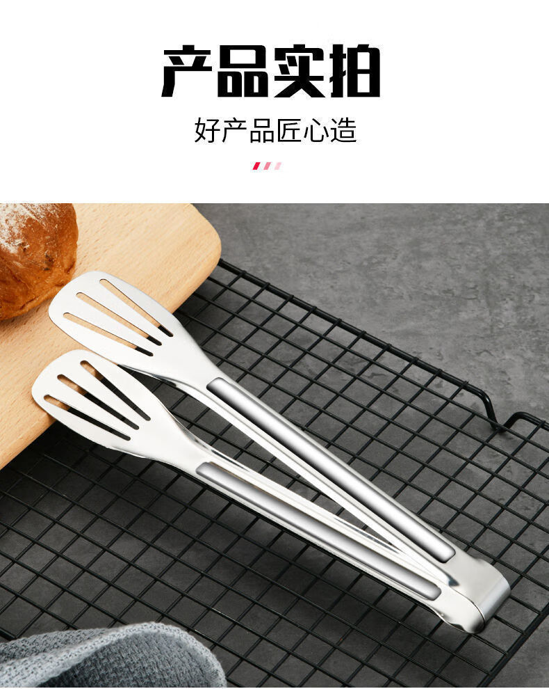Yuexinke stainless steel food tongs barbecue steak steamed buns barbecue thickened kitchen food baking sushi tongs barbecue tongs 9 inches thickened + oil brush