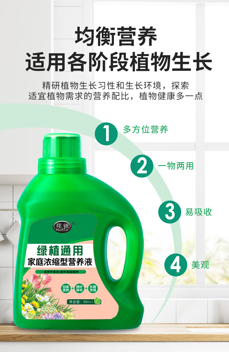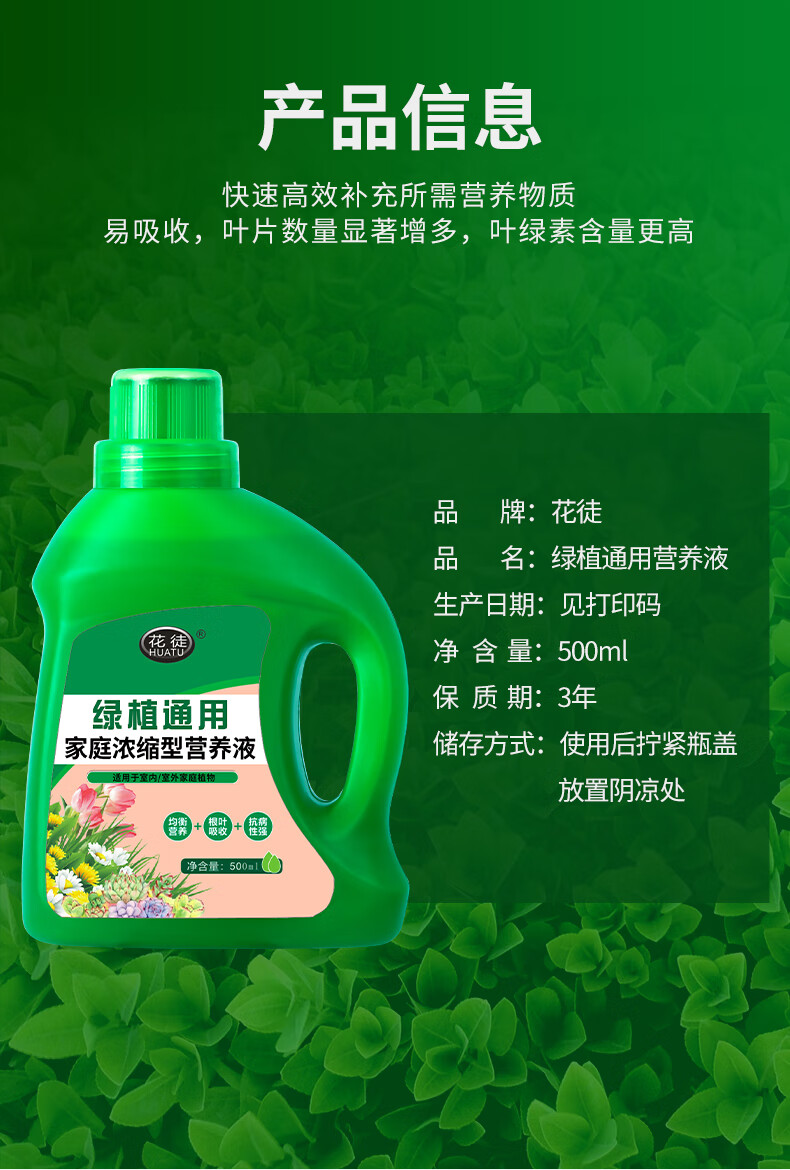 Plant universal nutrient solution for household flowers, green dill, rich bamboo, hydroponic potted money tree liquid flower fertilizer, universal special concentrated nutrient solution 500ML*1 bottle