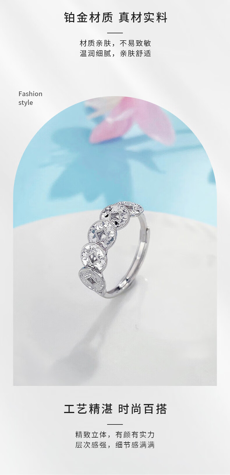 Laofu Gold and Platinum Wealth Rolling Imitation Wudi Coin Ring Women's Gold Jewelry for Wife and Girlfriend Birthday Gift for Chinese Valentine's Day Wudi Coin Ring Approximately 3.35g
