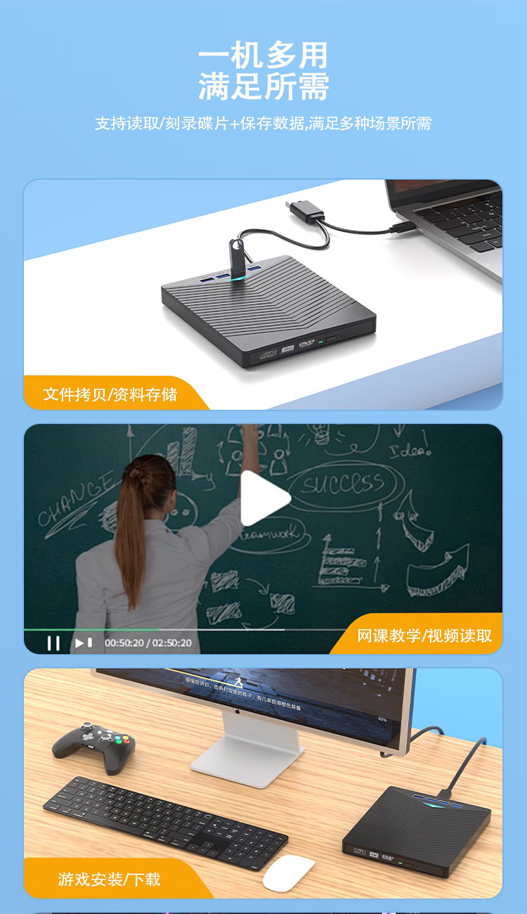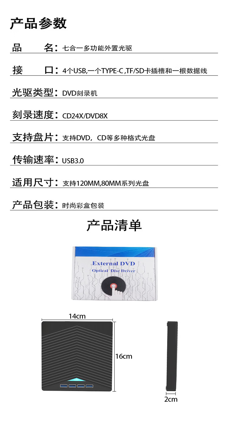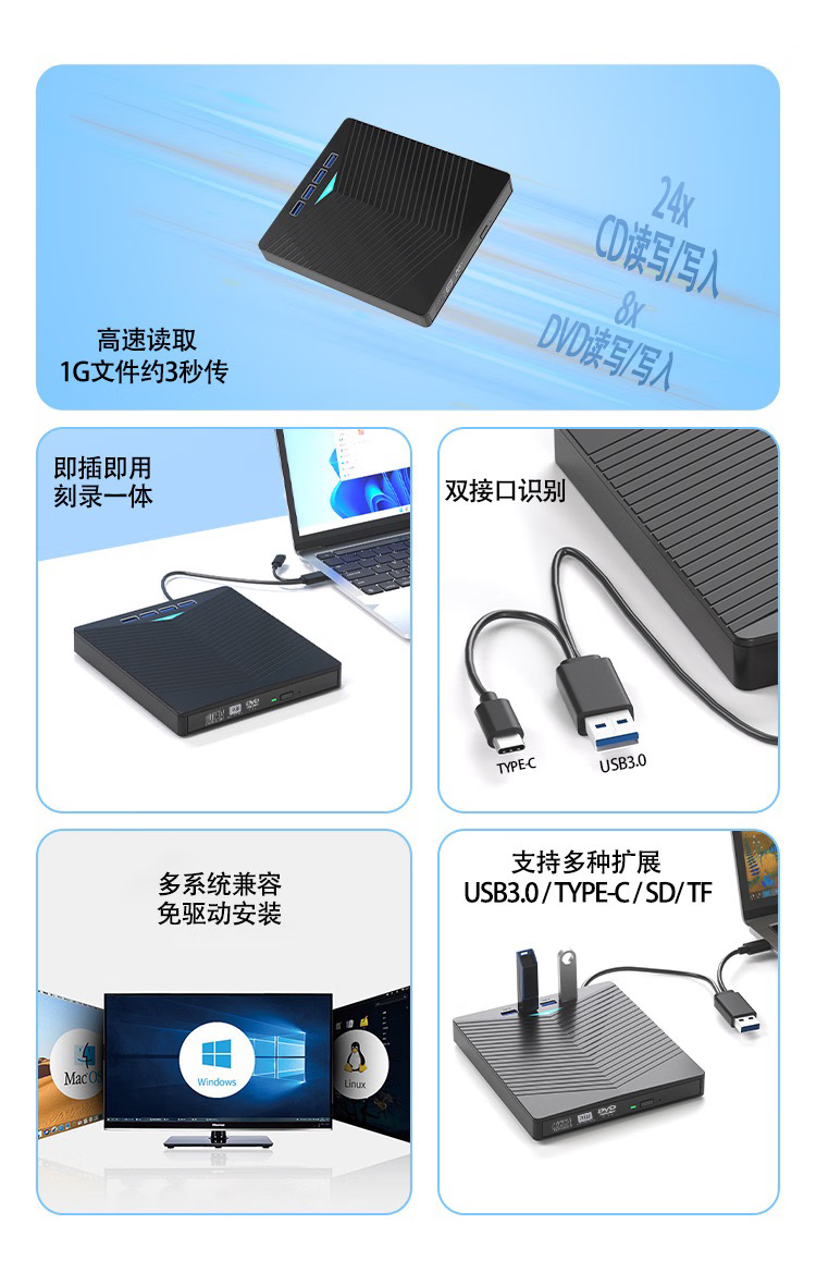 Настольная карта Pulu DVD-in-one ТИП Многофункциональная USB3.0 Внешний проигрыватель BD-дисков Рекордер Внешний мобильный привод Blu-ray Чтение карт SD/TF Внешний оптический привод USB3.0+Type-C двойной интерфейс чтения и записи Интегрированная модель