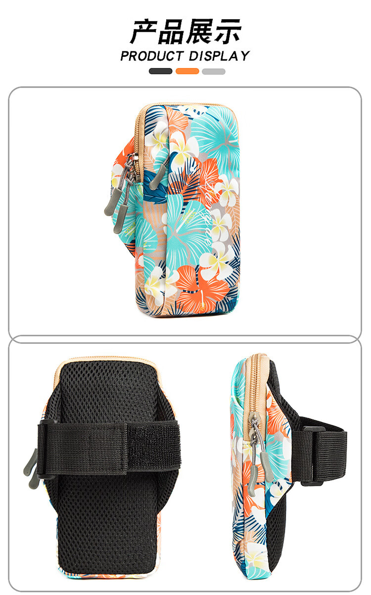 Stillmo running mobile phone arm bag women's wrist mobile phone bag outdoor sports arm mobile phone cover fitness arm cover storage bag B228 flower gray-large size (18*9cm)