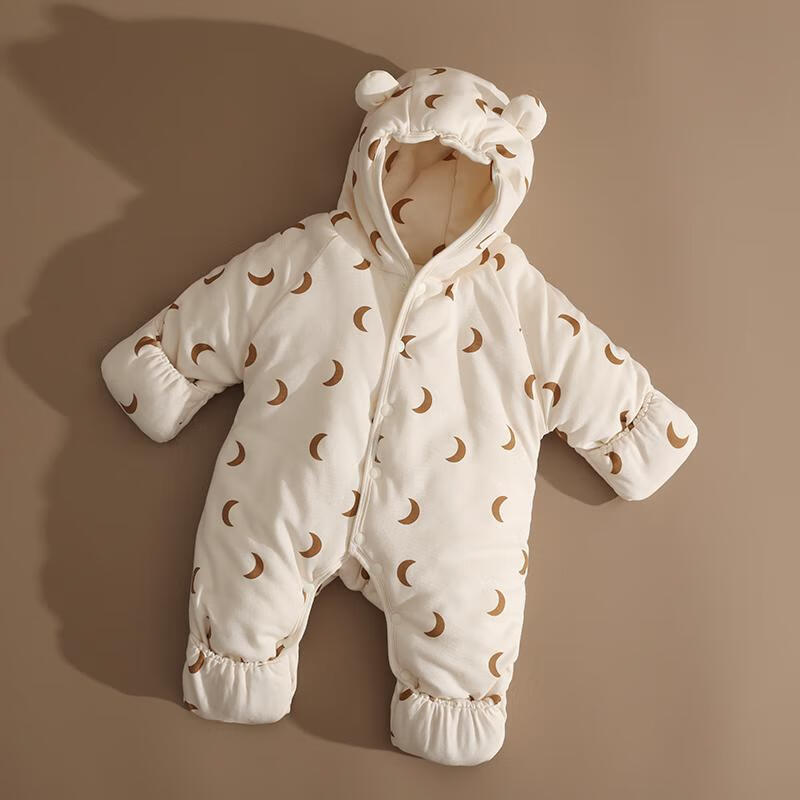 G.duck Little Yellow Duck Newborn Baby Winter One-piece Padded Jacket Thickened Foot-Wrapped Outing Clothes Baby Bodysuit Set Haoyue Qianlimi Apricot Padded Thickened Style 36cm 80_cm