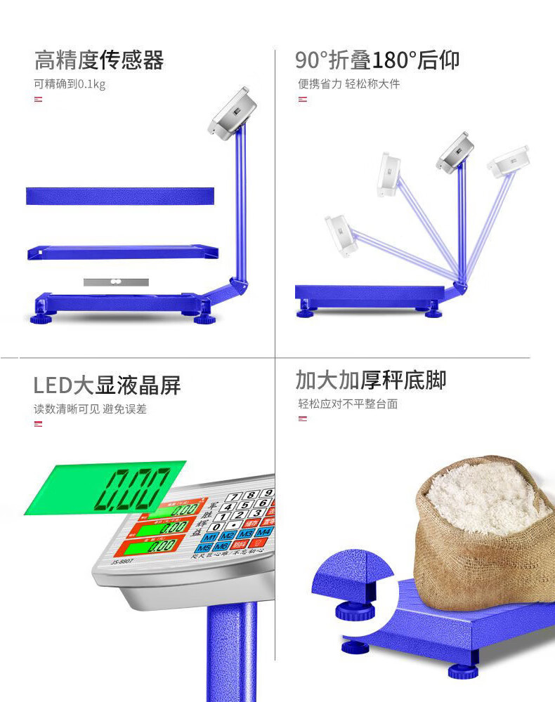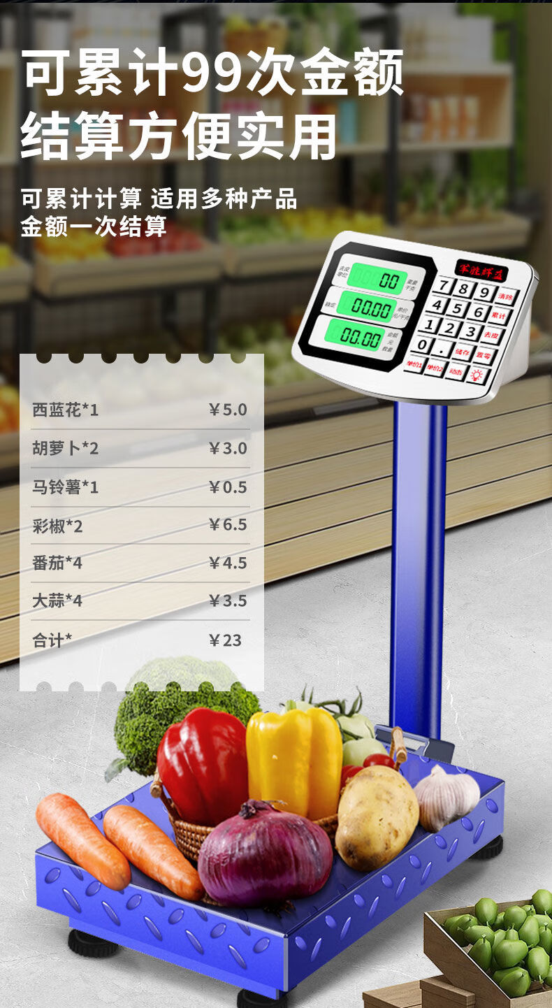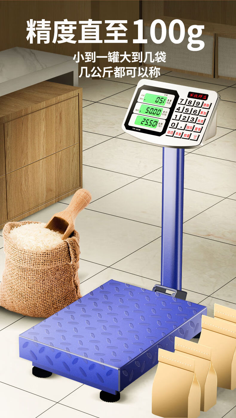 Large electronic scale commercial platform scale high-precision floor-standing vegetable selling scale pricing industrial counting express scale 180kg digital red letter general key 30*40cm