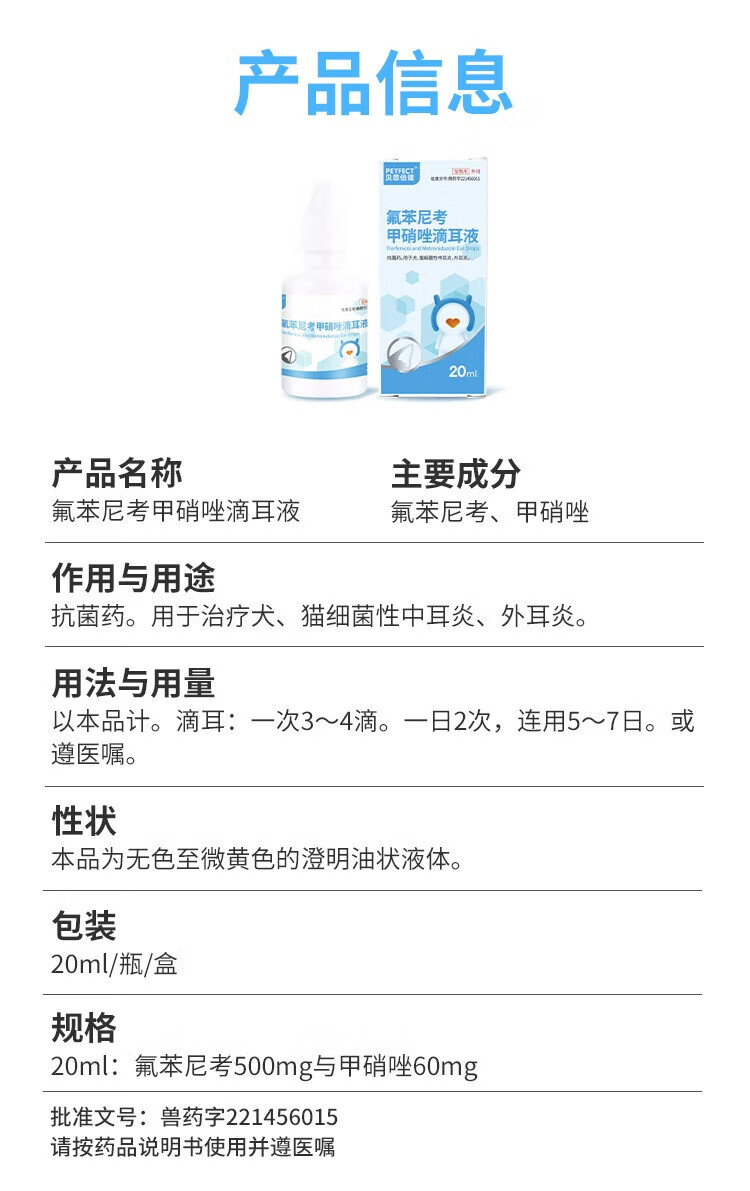 BethBeijing Florfenicol Metronidazole ear drops ear mite medicine ear cleaning liquid pet ear oil otitis externa ear cleaning liquid