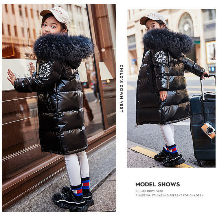 G.duck little yellow duck children's clothing for boys and girls medium and long style new winter style cotton-padded jacket black 120