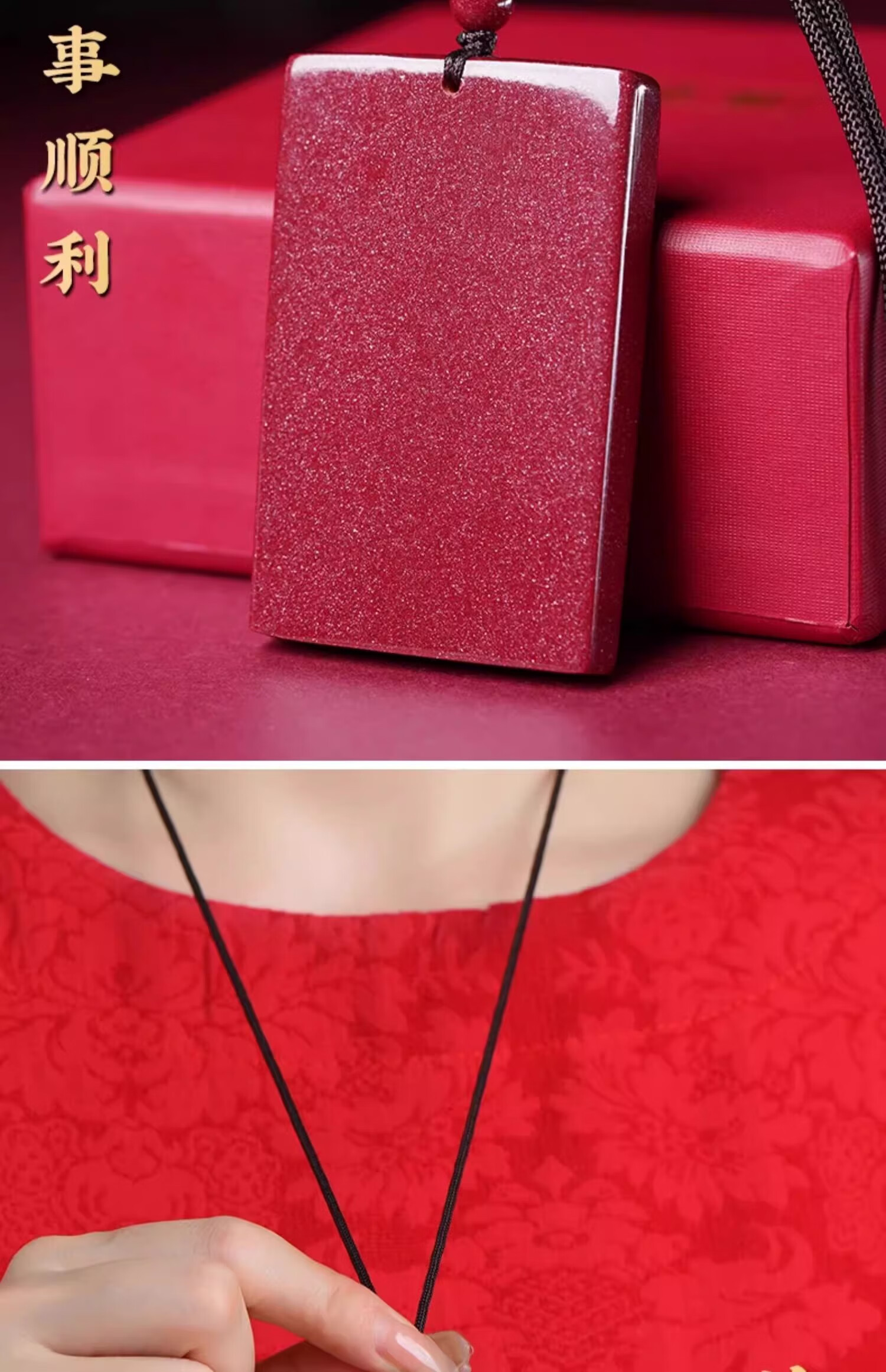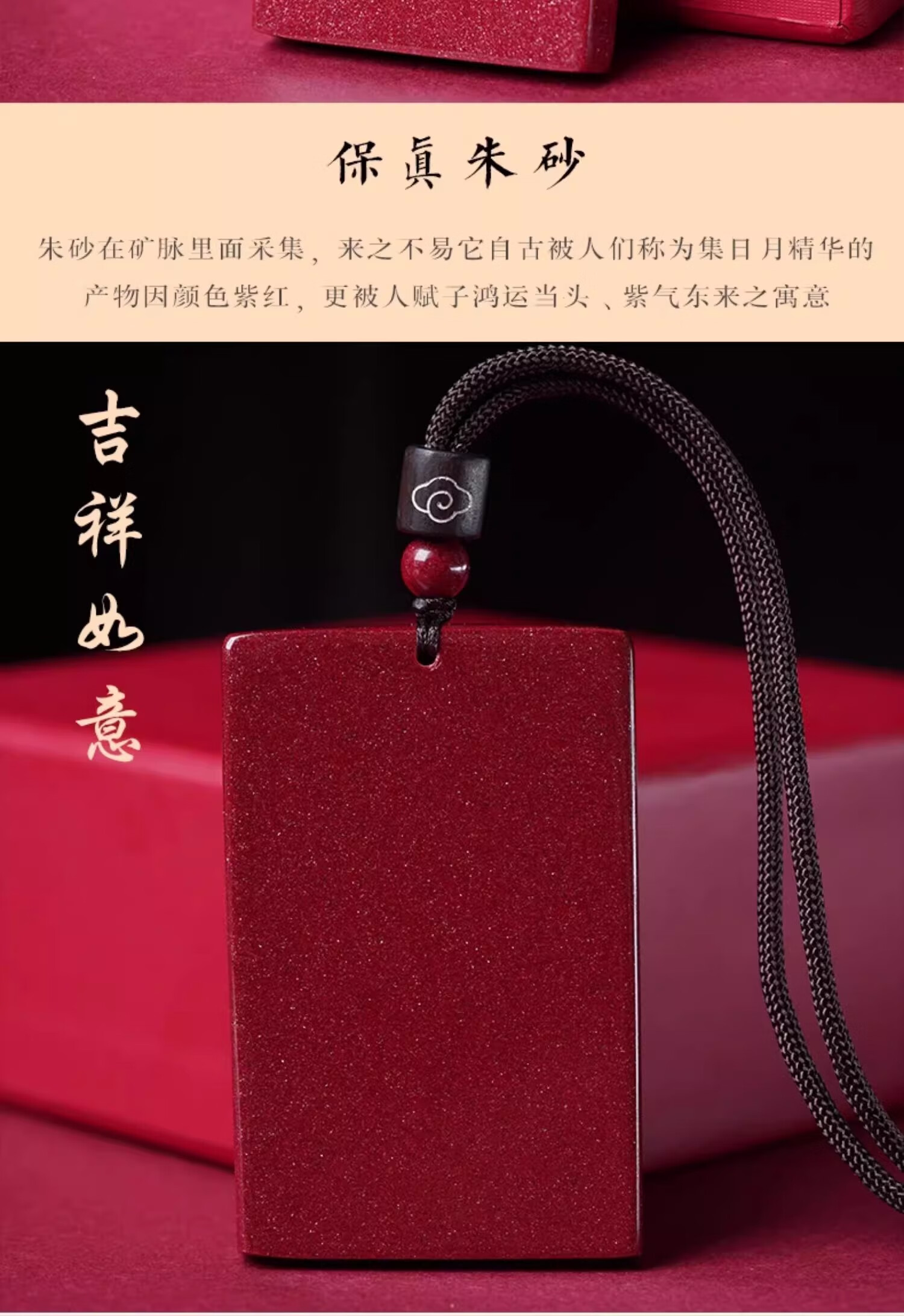 Authentic cinnabar Wu Shi brand pendant natural purple gold sand pendant men and women necklace animal year gift jewelry Wu Shi brand large size
