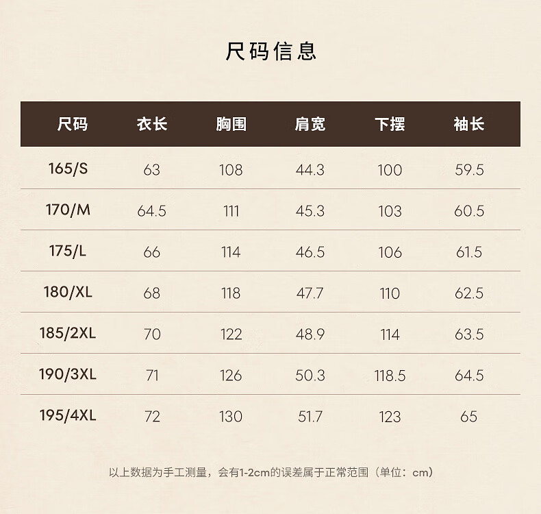 China (cm) 165 / 88-90 170 / 96-98 175 / 108-110 180 / 118-122 185 / 126-130