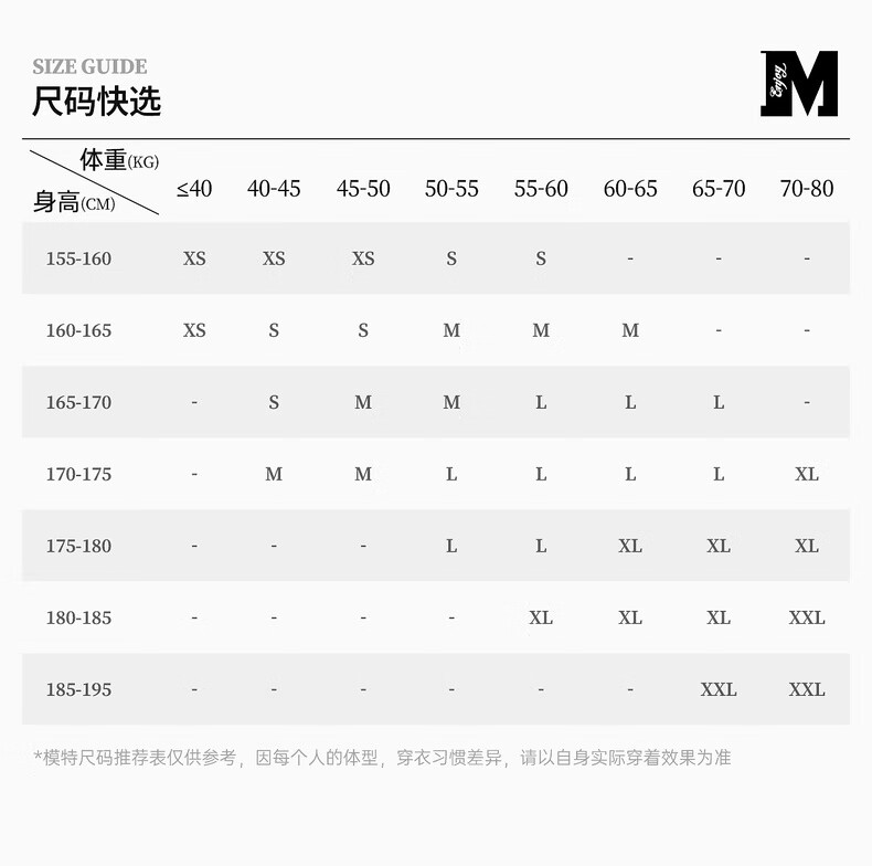 China (cm) 160-165/84-86 165-170 / 88-90 167-172 / 92-96 168-173 / 98-102 170-176 / 106-110