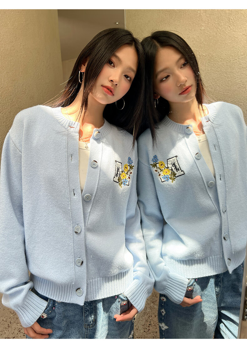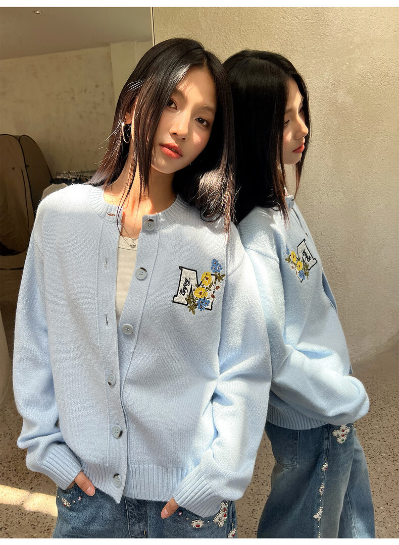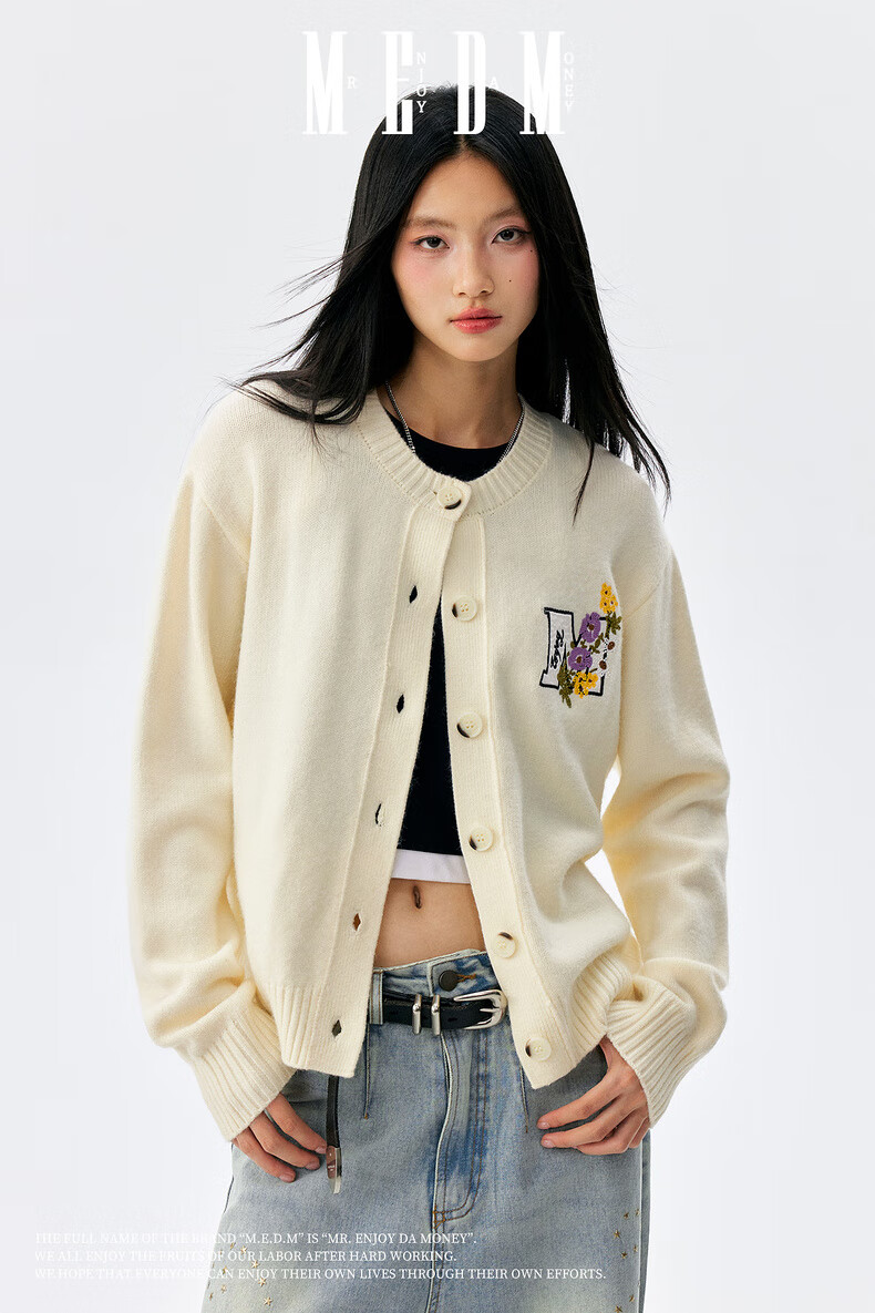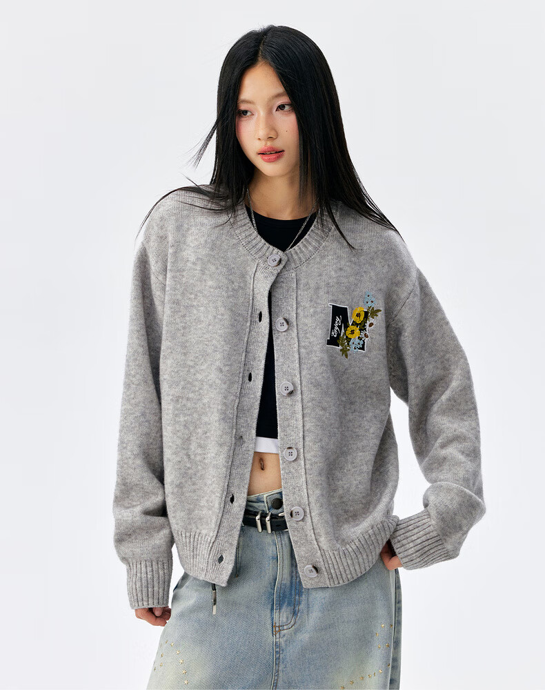 MEDM line floral embroidery casual cardigan sweater for men and women in spring and autumn lazy loose couple sweater jacket gray M