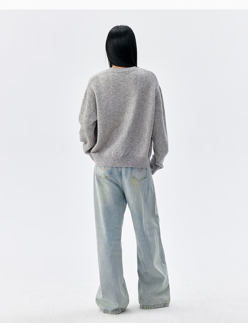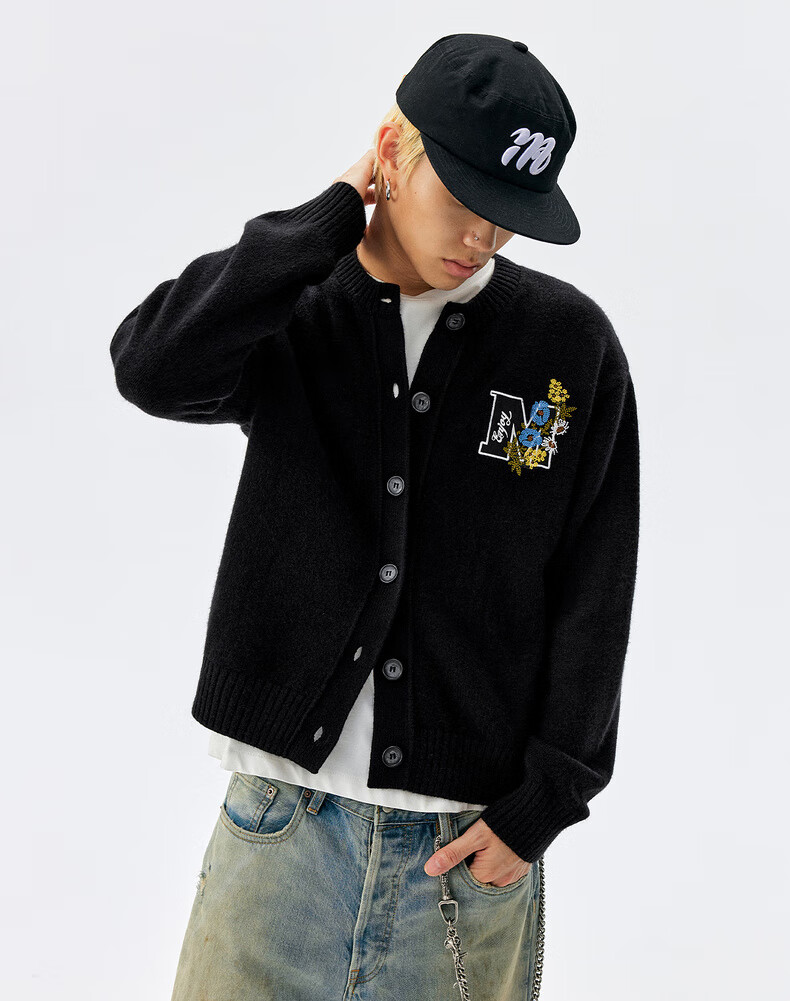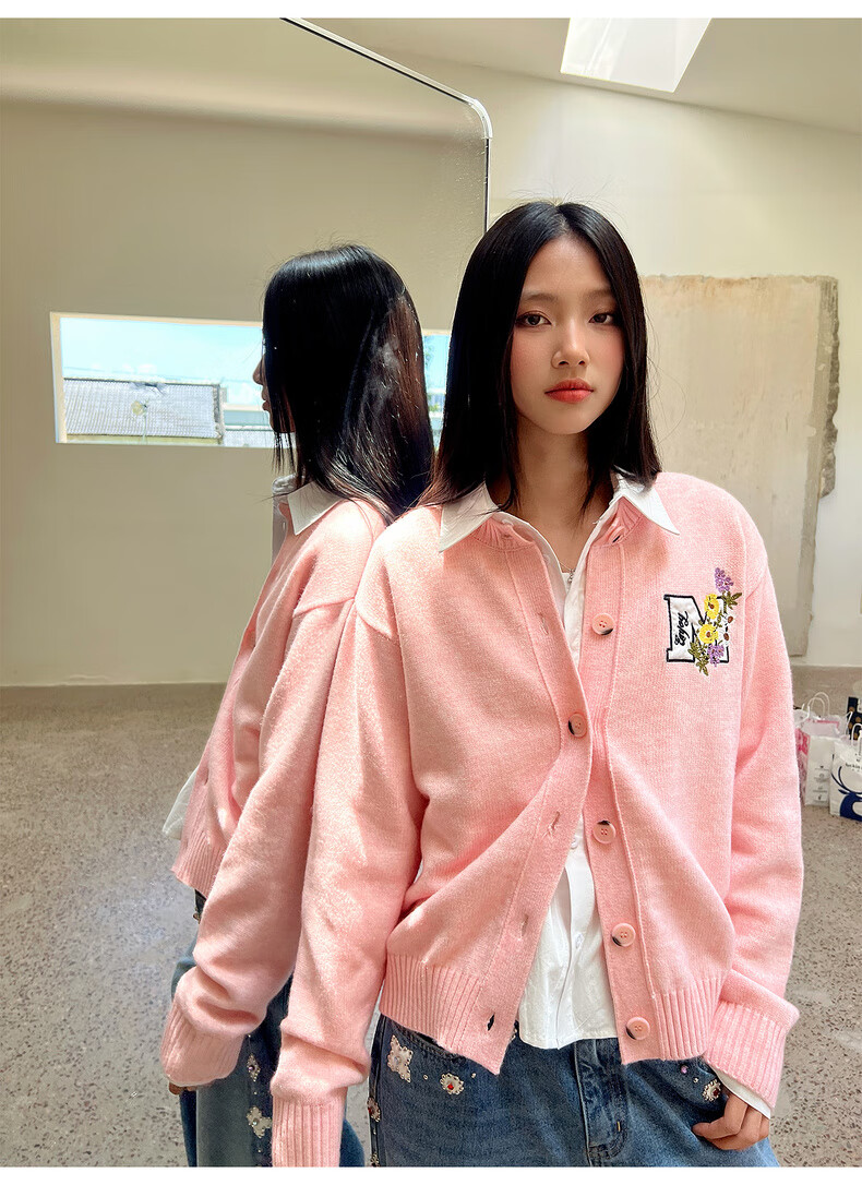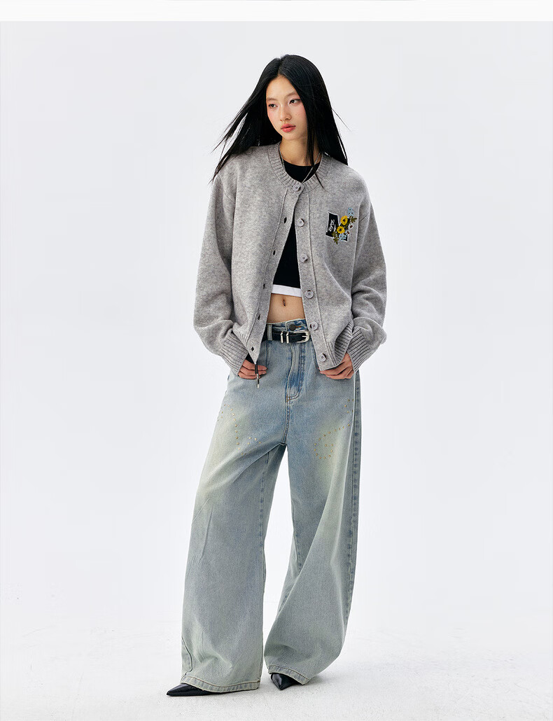 MEDM line floral embroidery casual cardigan sweater for men and women in spring and autumn lazy loose couple sweater jacket gray M