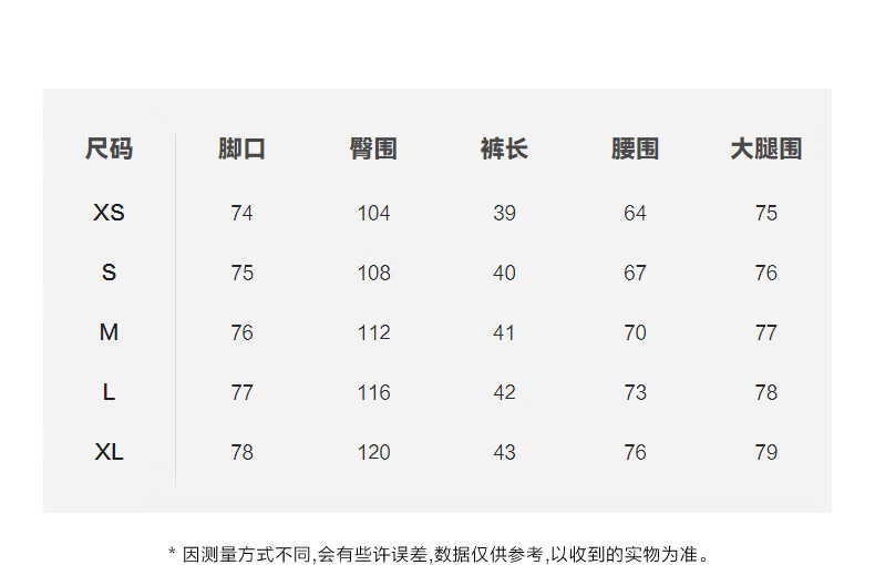 Outseam (cm) 99 cm 101.5 cm 104 cm 106.5 cm 109 cm