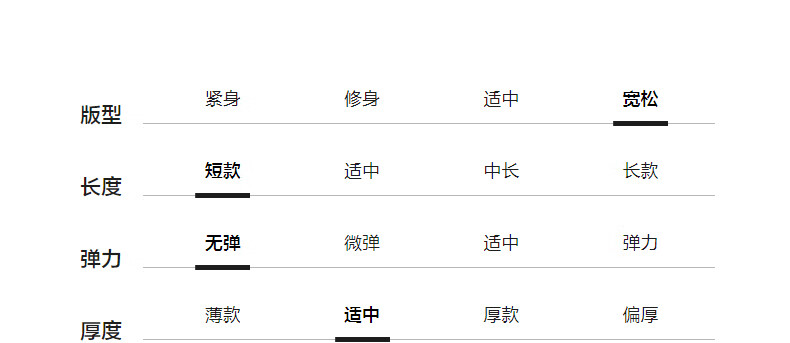China (cm) 160-165/84-86 165-170 / 88-90 167-172 / 92-96 168-173 / 98-102 170-176 / 106-110