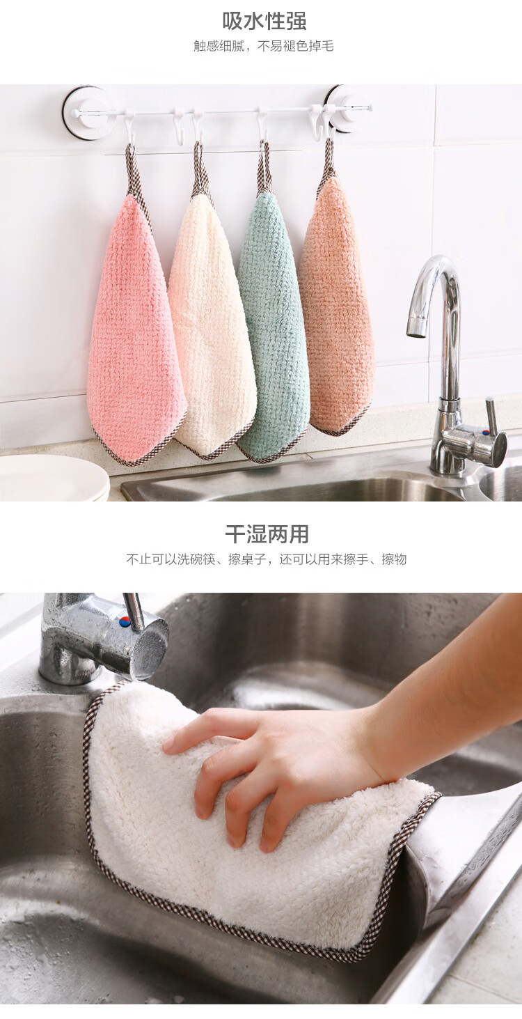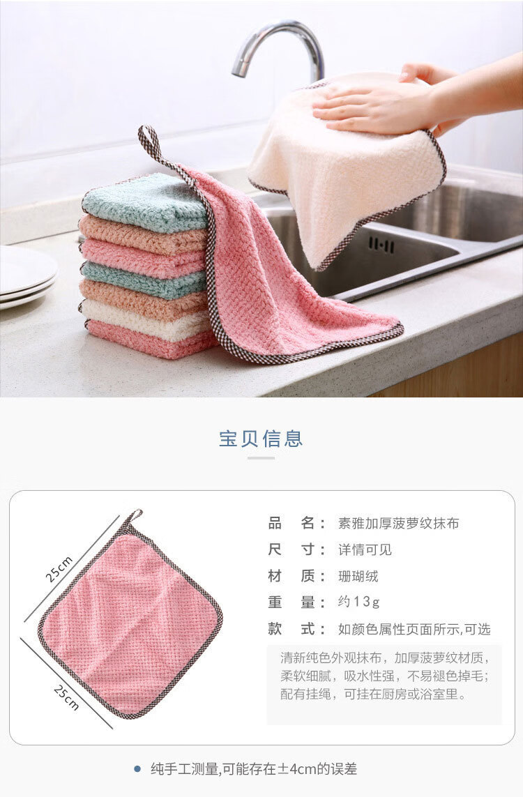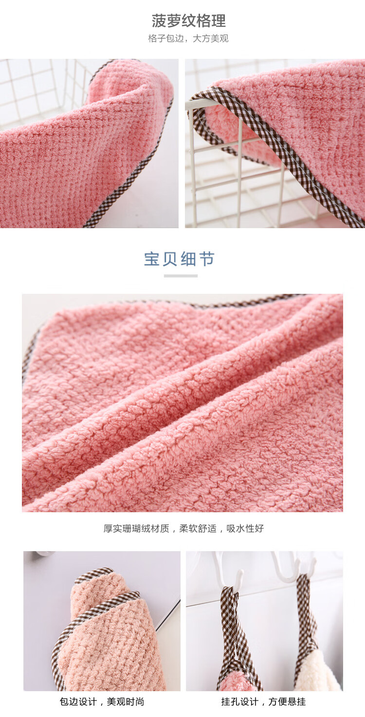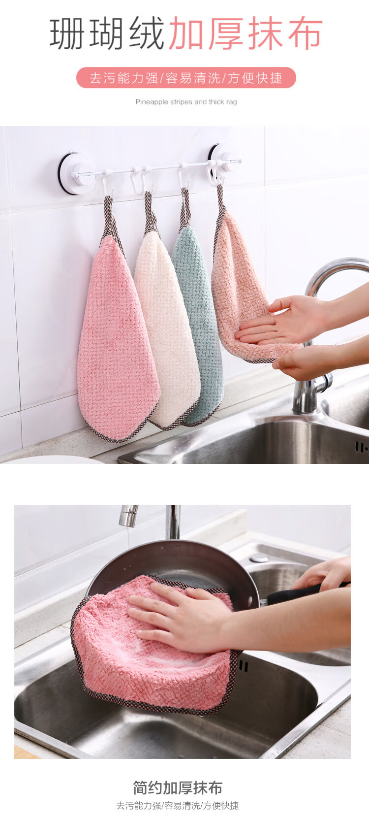 Hanging pineapple plaid double-sided rag kitchen coral velvet lint-free water-absorbent hand towel non-stick oil dish towel 10 pack thickened lint-free
