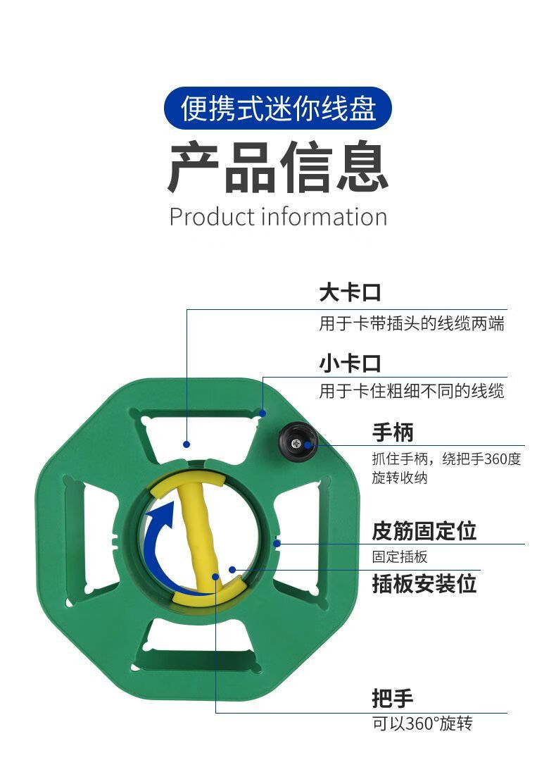 Coil winding reel storage coiled hand-cranked plastic take-up reel empty reel artifact cable portable reel Portable small reel beige (plug-in row retractable)