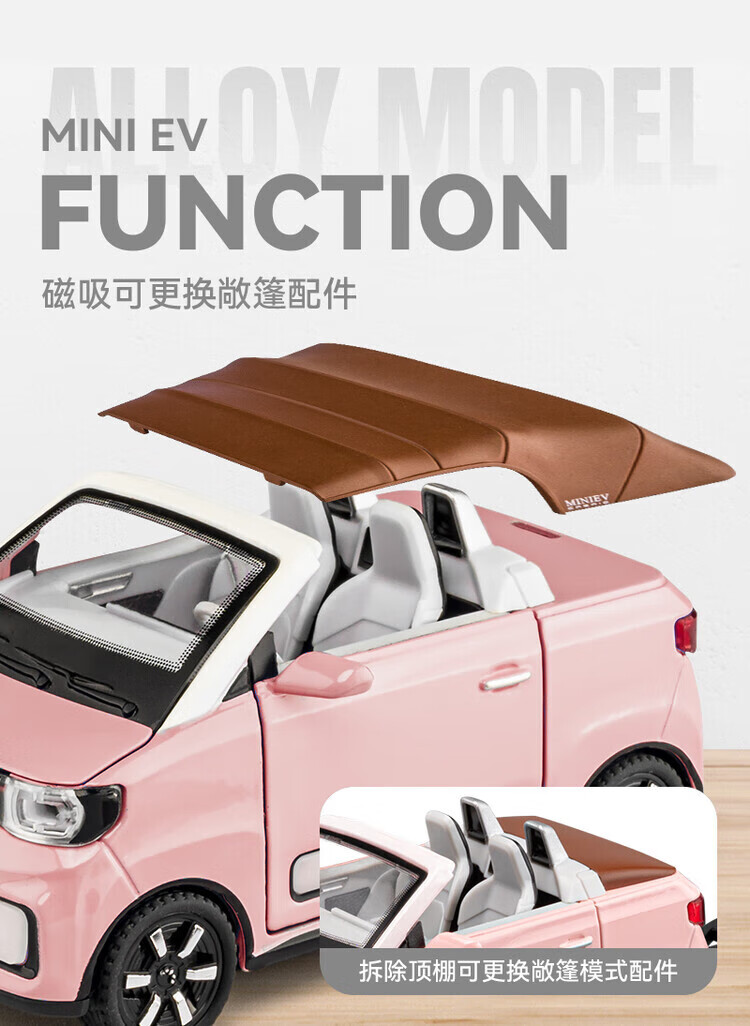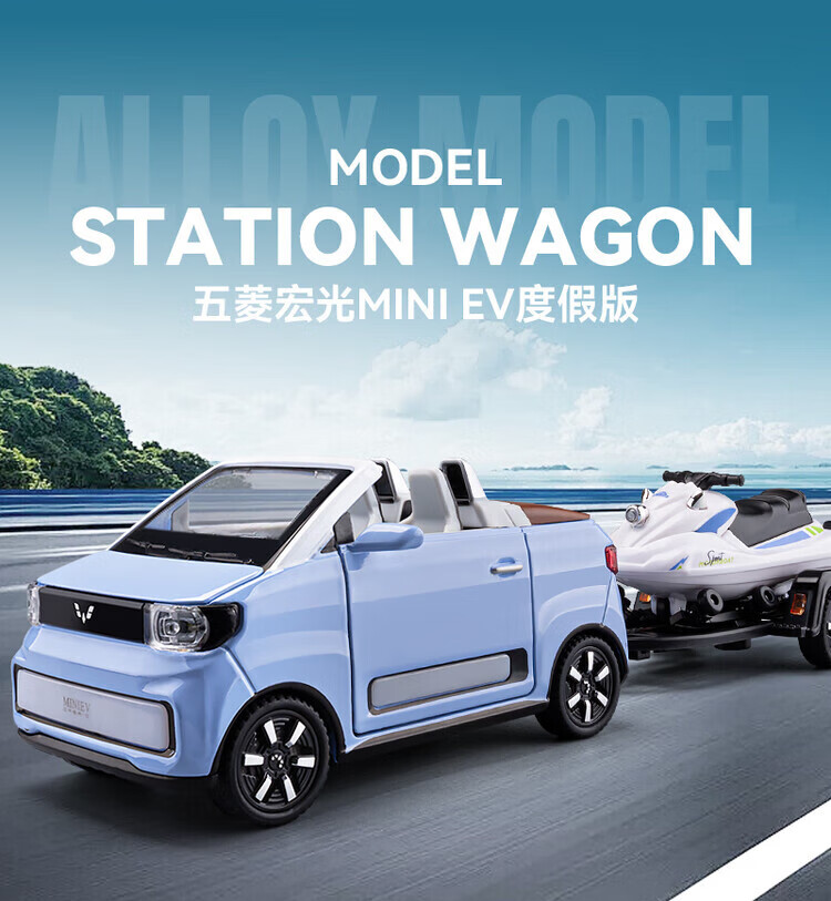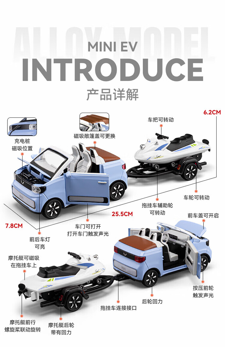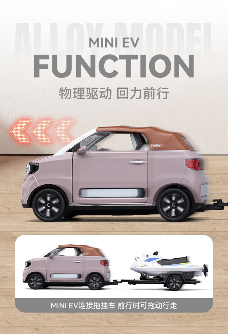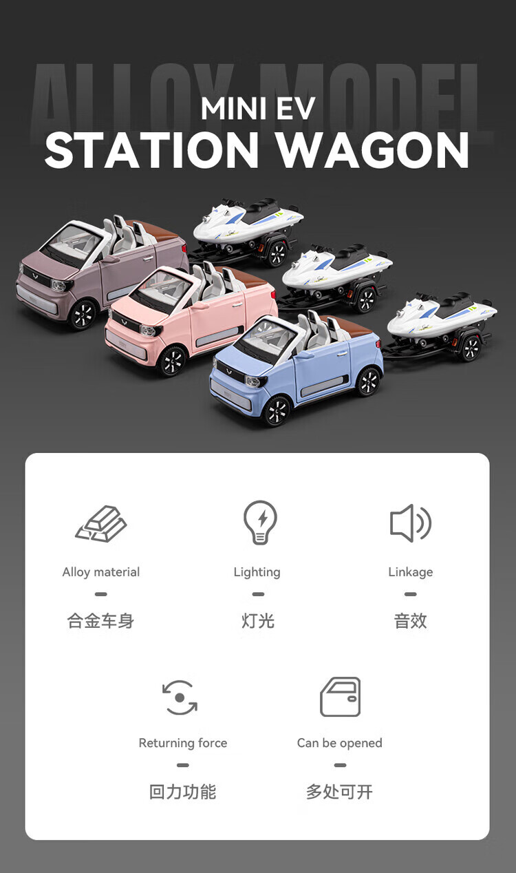 Wuling Hongguang MINIEV convertible trailer pull-back car model children's toys simulation alloy car ornaments Macaron coke tea / with motor boat