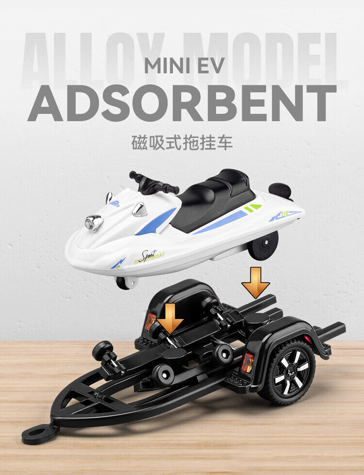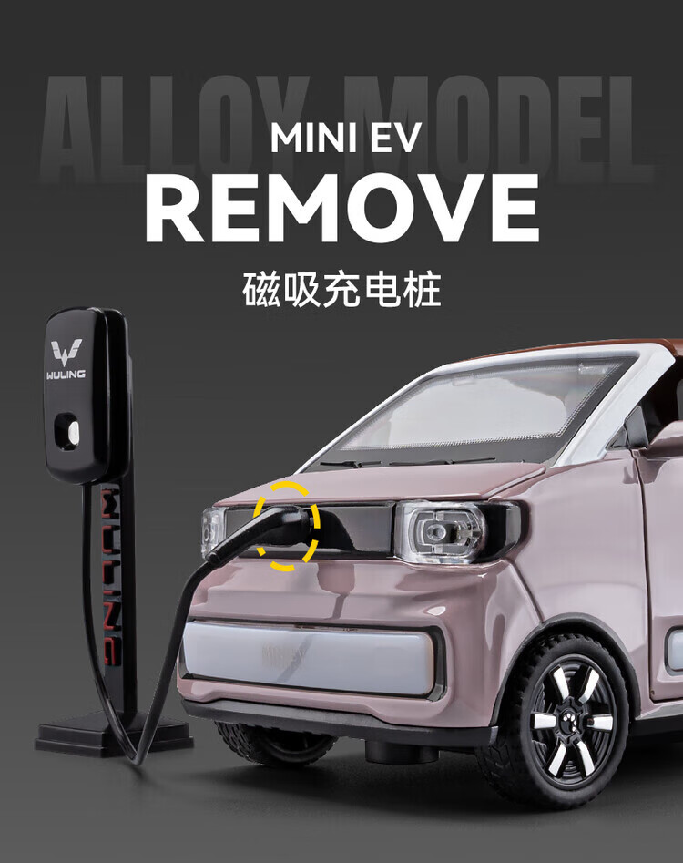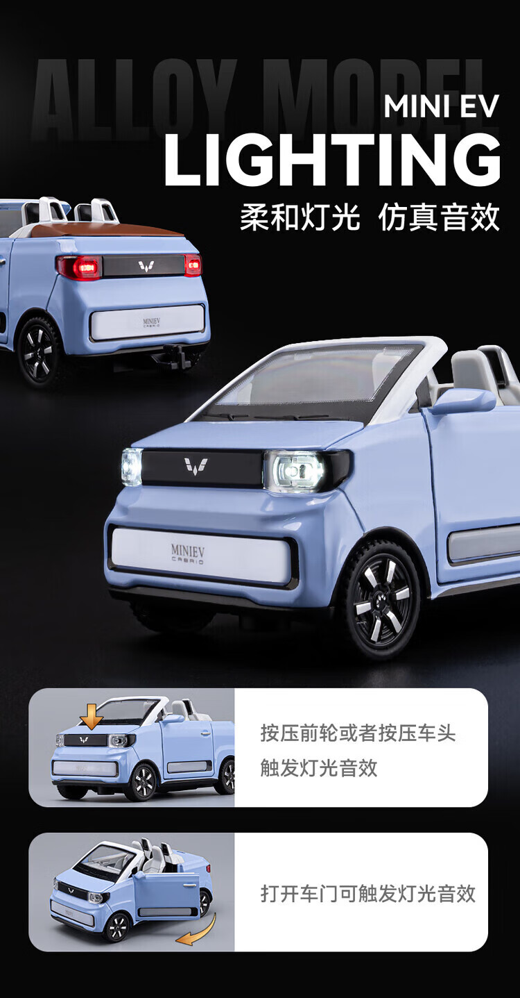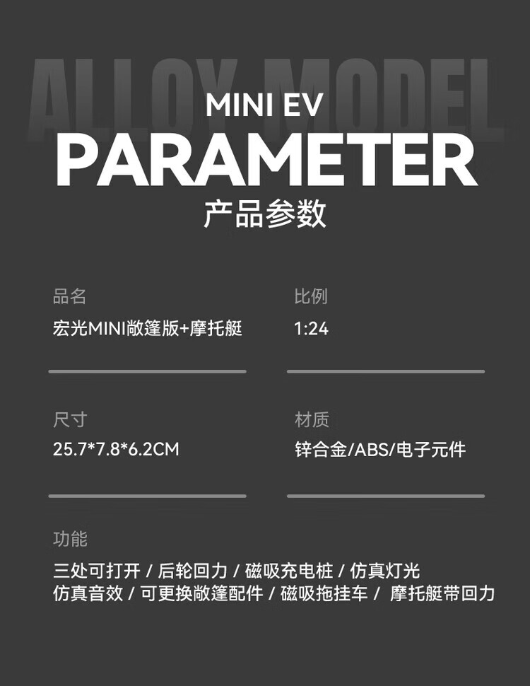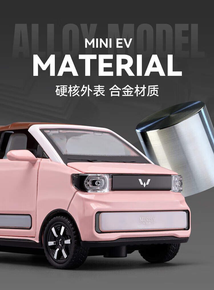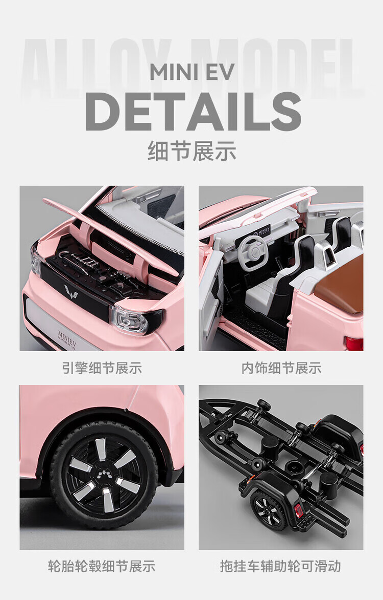 Wuling Hongguang MINIEV convertible trailer pull-back car model children's toys simulation alloy car ornaments Macaron coke tea / with motor boat