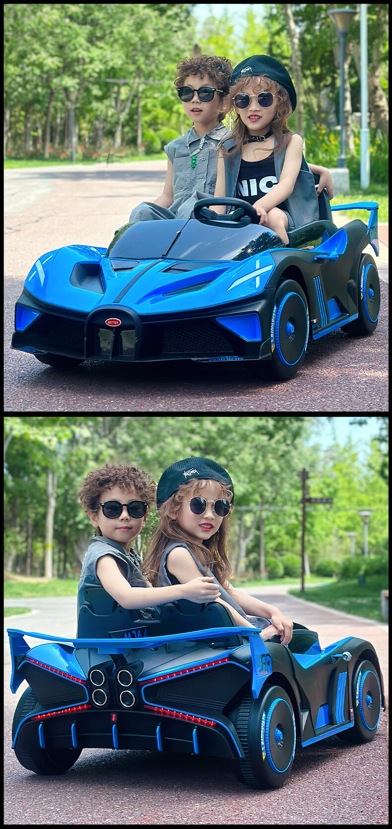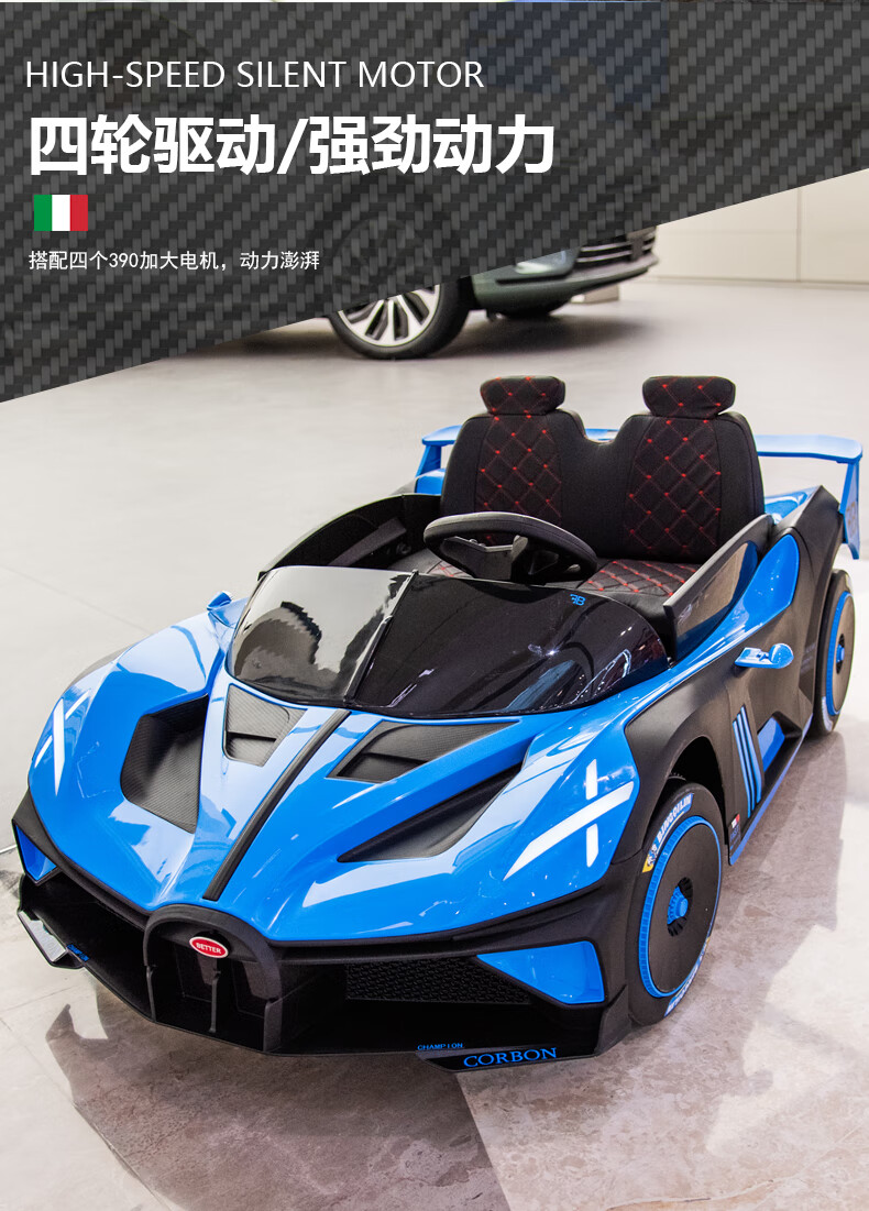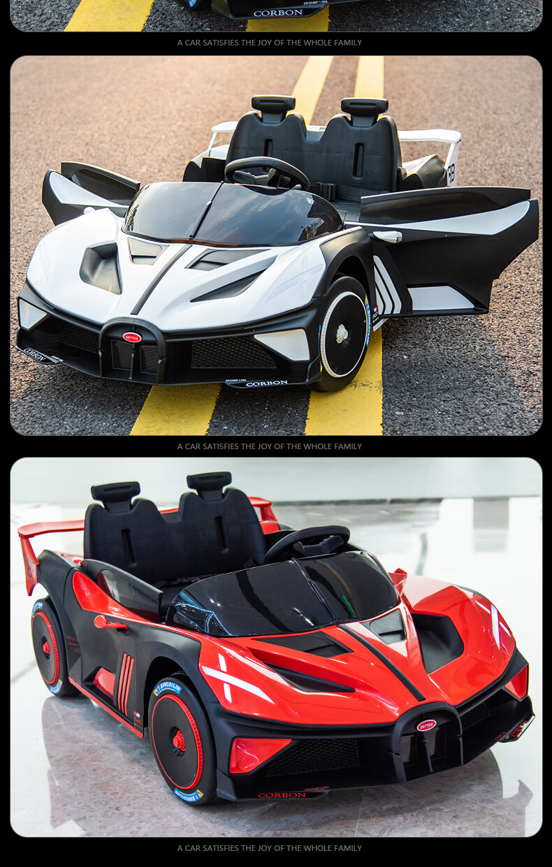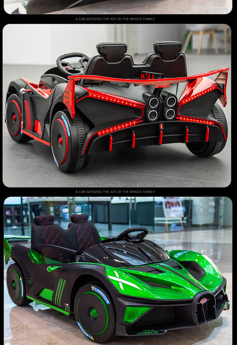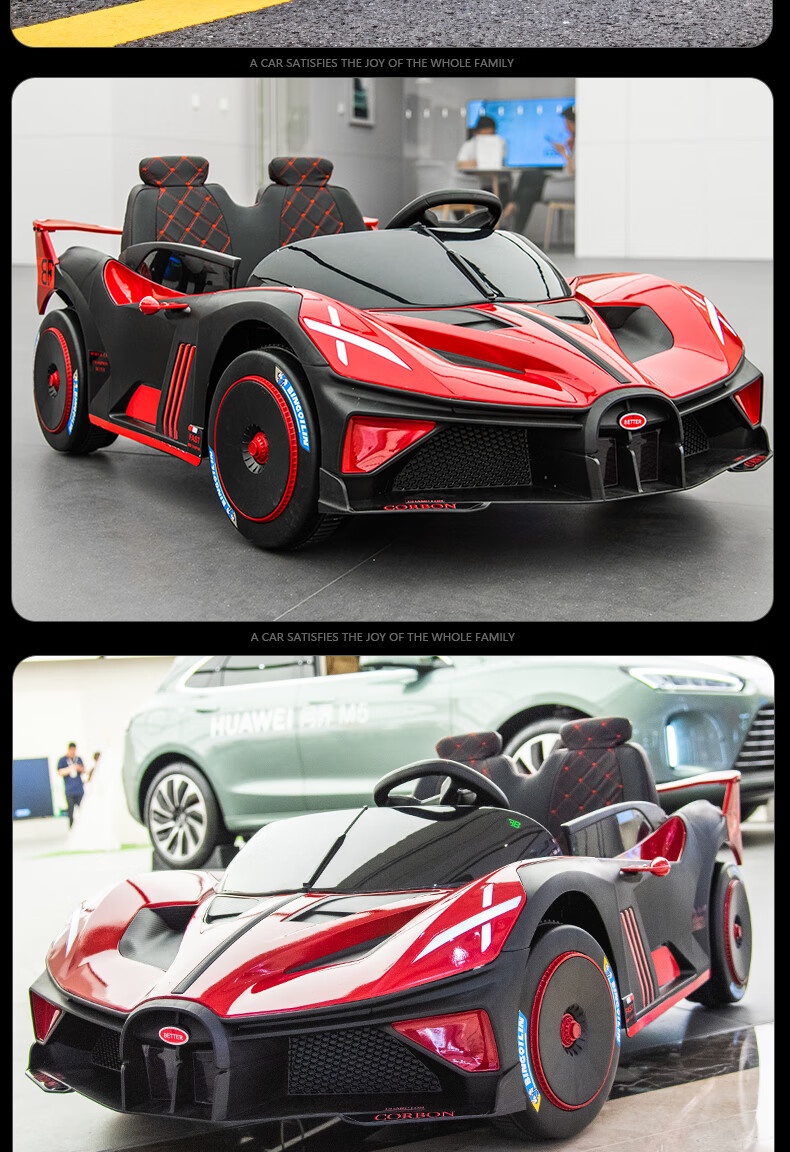 Bugatti children's electric car for boys and girls drift electric car can sit double four-wheel baby stroller remote control car red + four-wheel drive + hard seat + hard wheel + 12V7A battery