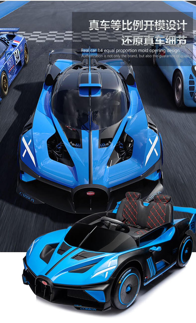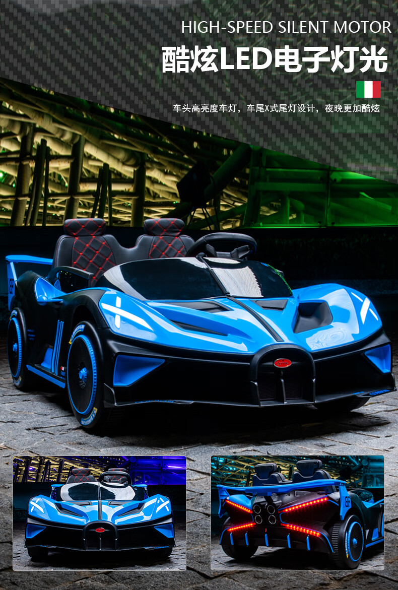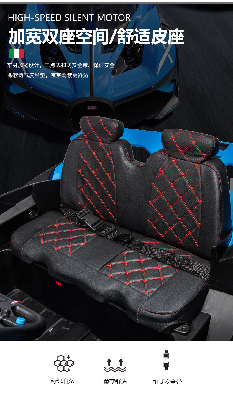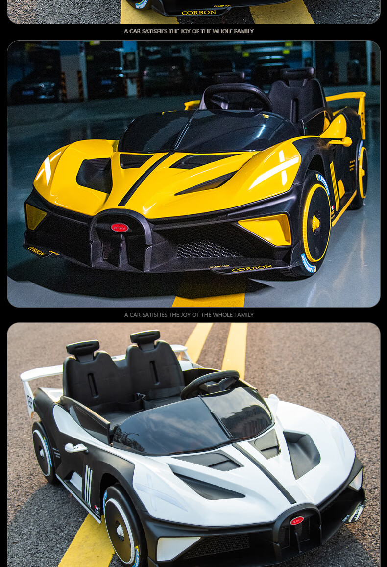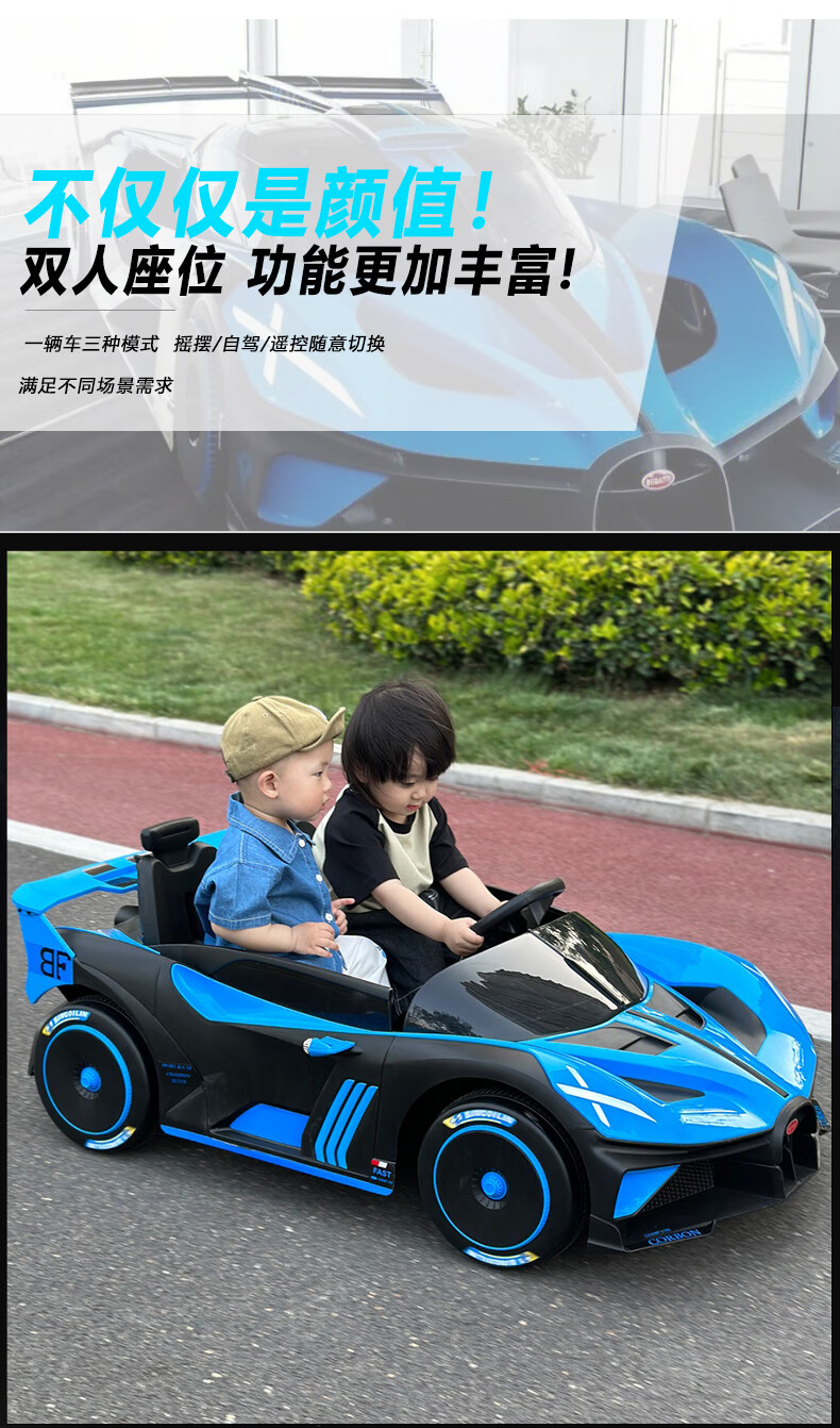 Bugatti children's electric car for boys and girls drift electric car can sit double four-wheel baby stroller remote control car red + four-wheel drive + hard seat + hard wheel + 12V7A battery